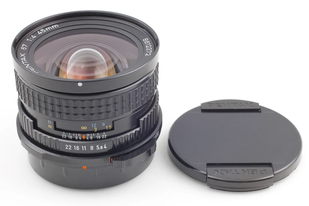 Exterior Material: Aluminum Country/Region of Manufacture: Japan Brand: PENTAX Compatible Brand: For Pentax Maximum Aperture: f/4 MPN: 8612372 Series: Pentax SMC Custom Bundle: Yes Focus Type: Manual Focal Length: 45mm Type: Wide Angle Compatible Lens Front: 82mm Mount: Pentax 67 Bundle Description: Front cap, Rear cap Model: SMC PENTAX 67 45mm f/4 Compatible Filter Size: 82mm