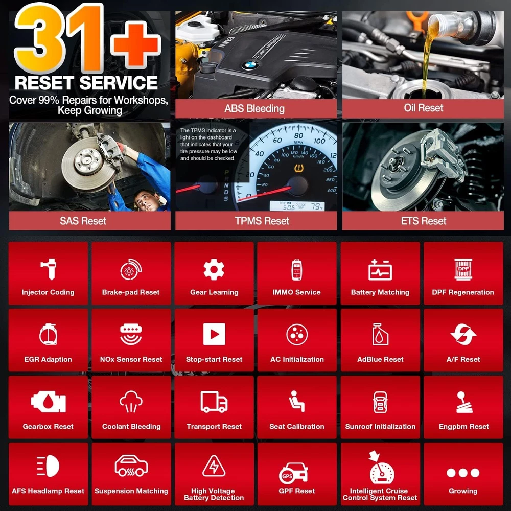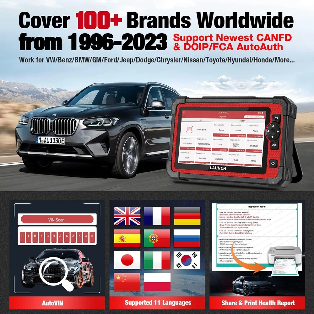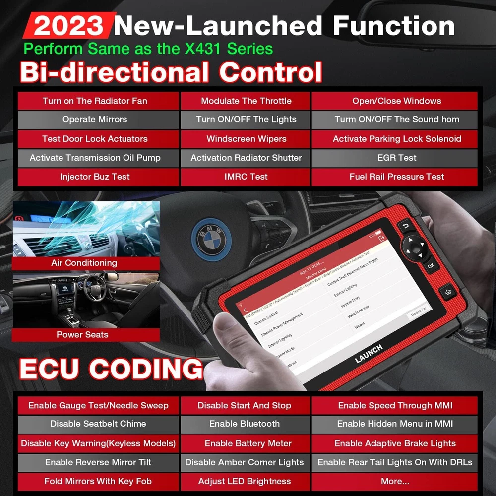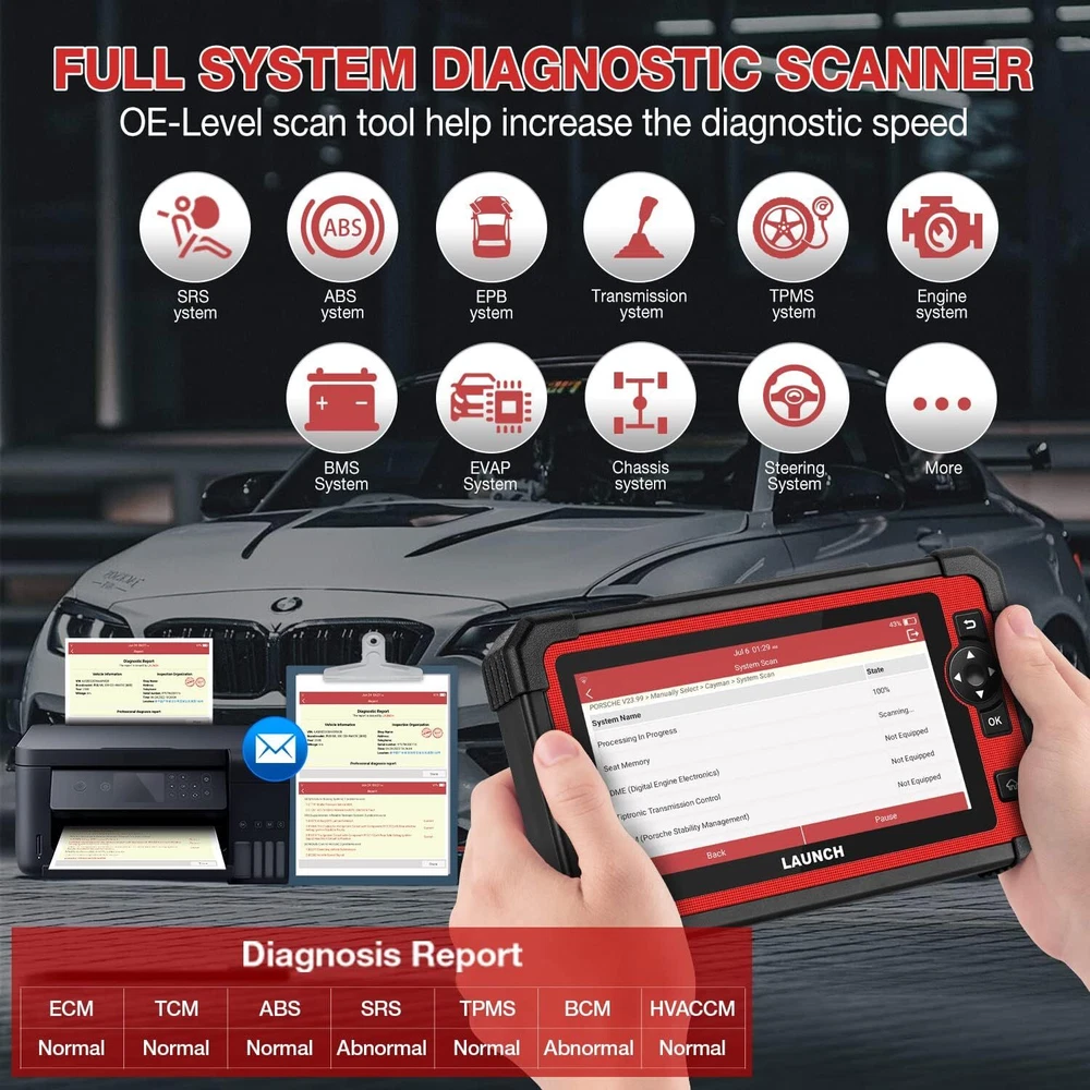 ✅ Note:Multiple package options,pls choose what you want! Package option 1: CRP919E(All System + 31 Reset) Package option 2: CRP909E(All System + 28 Reset) Package option 3: CRP129E PLUS(All System + 8 Reset) Package option 4: CRP123E PLUS(All System + 3 Reset) ALL IN ONE LAUNCH CRP919E BIDIRECTIONAL SCAN TOOL WITH ALL SYSTEM DIAGNOSTIC & 31+ RESETS LAUNCH SCANNER CRP919E, 2024 NEW RELEASED SCAN TOOL ABOUT LAUNCH: LAUNCH is the global market share of automotive diagnostic tools is the first!Focusing on automotive scanners for 26 years,it has more than 1000 international patents.Trustworthy! Have you ever been bothered by these problems: The device is always unable to scan the required system. The reset functions of your diagnostic scanners are not enough. Limited vehicle compatibility of your automotive scan tools cannot cover more business. The scanner with active control in the market is too expensive. Don’t feel sad! LAUNCH CRP919E OBD2 scanner can drive your trouble away! All in all, if you are considering to get an all-in-one diagnostic tool with limited budget, LAUNCH CRP919E is the FIRST and the BEST. This CRP919E OBD2 Scanner supports All systems Diagnoses, All OBD-II Functions,31+ Reset Functions, Bidirectional Control, CANFD&DOIP, FCA Autoaut h, Renault Security Gateway Function , ECU Coding, Key Programming, PMI Function(Programmable Module Installation),Camera Function,2 Years Update Included!!! Updated Hardware: Android 10.0 OS, 4-Core Processor, 3G/32G Memory(64GB Extended), 6100mAh Battery, 7” Touch Screen. CRP919E has better hardware configurations, wider vehicle coverage, and longer battery life than CRP909E. High lights: Auto Vin, One Click Update Online, Full Bidirectional Control/Active Test, New CANFD & DoIP Protocols, Newly Add PMI Function,Newly Add Camera Function,Covering 100+ Car Brands, Support 11 languages, 31+ Commonly-used Reset Functions, OE-level All System Diagnosis,Key Programming, 4 in 1 Live Data Graph, Record and Playback live data, 2-Year Software Upgrade Included,5 Years Support, 1996-2023 Wide Vehicle Coverage, Full 10 OBD Modes, Online Repair Database, Battery Voltage Monitor,Abundant Online Repair Database,Auto Auth for FCA SGW. CRP919E is a cost-worthy all in one diagnostic OBD2 scan tool. Good News!!!We changed from 1-year upgrade Period to 2-year upgrade in September 21st 2022 on CRP919E, which saving you almost 300 dollars, you can use the latest version and functions during these 2 years begin the time you registered. Even if expires after 2 year and you don't want to update any more, you can still use the last version before expiration all the time and most features that do not require to connect internet. Good News!!!We changed from 29 RESET FUNCTION to 31 RESET FUNCTION in September 21st 2022 on CRP919E, which meet your need in the most degree. And crp919e is 5 more rest function than crp909E. Good News!!!We provide OE-level ECU coding in September 21st 2022 on CRP919E,you can get it by upgrading software module in APK.It allows you to reset the adaptive data, match the replaced ECUs, unfold the hidden functions, etc. Good News!!!We provide Renault Security Gateway Function in April 2023 on CRP919E,which can cover more car models. Recently Released Software Update: PORCHE(V24.05)2022/9/28: New Functions: 1) For Cayenne-9YA (asof2018) added the low-temperature circuit bleeding and A/C compressor running-in functions for the thermal management system and the valve servo motor setting / checking and A/C compressor setting functions for the A/C system. 2) For Panamera (971), added the low-temperature circuit bleeding and A/C compressor running-in functions for the thermal management system and the valve servo motor setting / checking and A/C compressor setting functions for the A/C system.3) For Taycan added cooling circuit emptying and filling cooling circuit bleeding andA/C compressor running-in functions for the thermal management system and the valve servo motor setting/checking function for the A/C system. Recently Released Software Update: FIAT(V37.20)2022/9/29: New Functions: 1) Added Basic Functions for Models Giulia 2018-2021,Stelvio 2019-2021,500X 2016-2022,500BEV 2021,500E 2015 2) Added Actuation Test for Models Giulia 2018-2021,Stelvio 2019-2021,500X 2016-2022,500BEV2021,500E 2015 3) Added Special Functions for year 2021 500X models,including BCM_TPM program left front tire sensor ID,BCM_TPM program spare wheel tire sensor ID,FOBIK ID acquire 4)Added Special Functions for year 2021 Toro model,including AVS ignal Detection,Disable User Inputs,Reset Parameters to Default,EOL Audio Test. Recently Released Software Update: Maserati(V11.55)2022/9/28: New Functions: Added 2021 GHIBLI engine system special functions,ECM engine oil reset and engine oil level initialization. PROFESSIONAL ALL SYSTEM DIAGNOSTIC SCANNER-ONE IS ENOUGH LAUNCH SCANNER CRP919E SAME AS SNAP-ON SCANNERS , POWERFUL FULL SYSTEM SCAN TOOL WITH ECU CODING The LAUNCH CRP919E auto code reader is a cost-effective automotive scanner, that offers OE-level diagnoses on all available electronic systems, which can read/clear codes, data stream, read control module information for ECM, ABS, SRS, TCM, EPB, TPMS, SAS, A/C, BMS, ESP systems, etc. Supports OBD2 Full Functions: It supports OBD ll functions to help you turn off the annoying instrument fault indicator and also can read/clear codes, O2 sensor test, I/M readiness, On-board monitor test, read data stream, display freeze frame data, EVAP system test, retrieve vehicle information (VIN, calibration ID, calibration verification numbers) Supports Full System Diagnostics: Engines/Auto Transmission/Airbags/Immobilizer/Key Coding/ABS/Cruise Control/Instruments/Self Leveling Suspension systems Seats / Doors / Gateway / Steering Angle / Air Suspension / Body Systems / Electronic Power Steering & Motor Assisted / Power Steering / Tyre Pressure / Rain Sensors / 4WD System Stabilizer/Intelligent Parking Assist/Door Motors/Audio