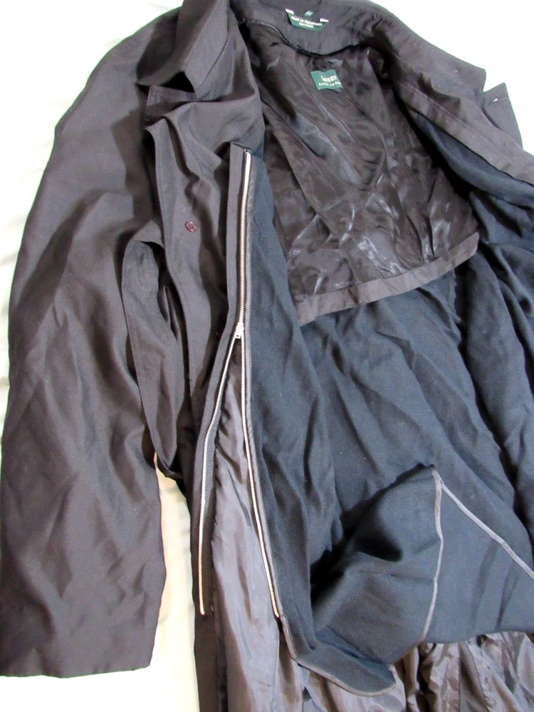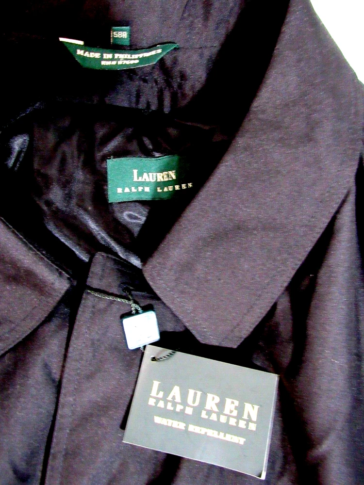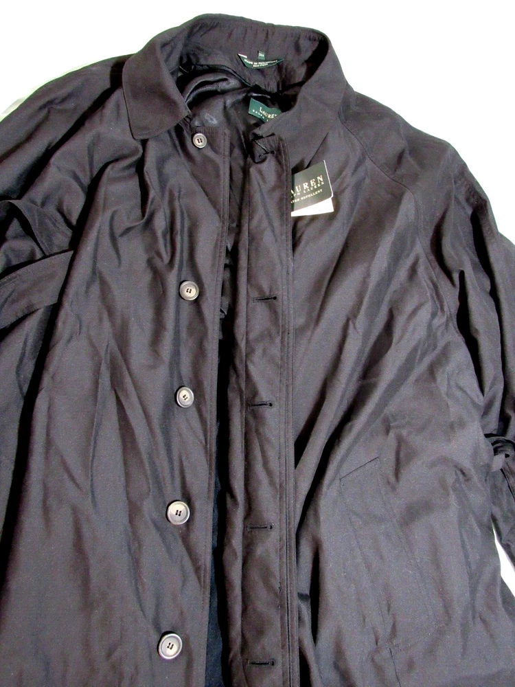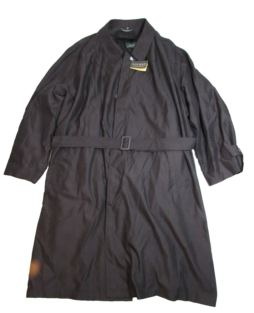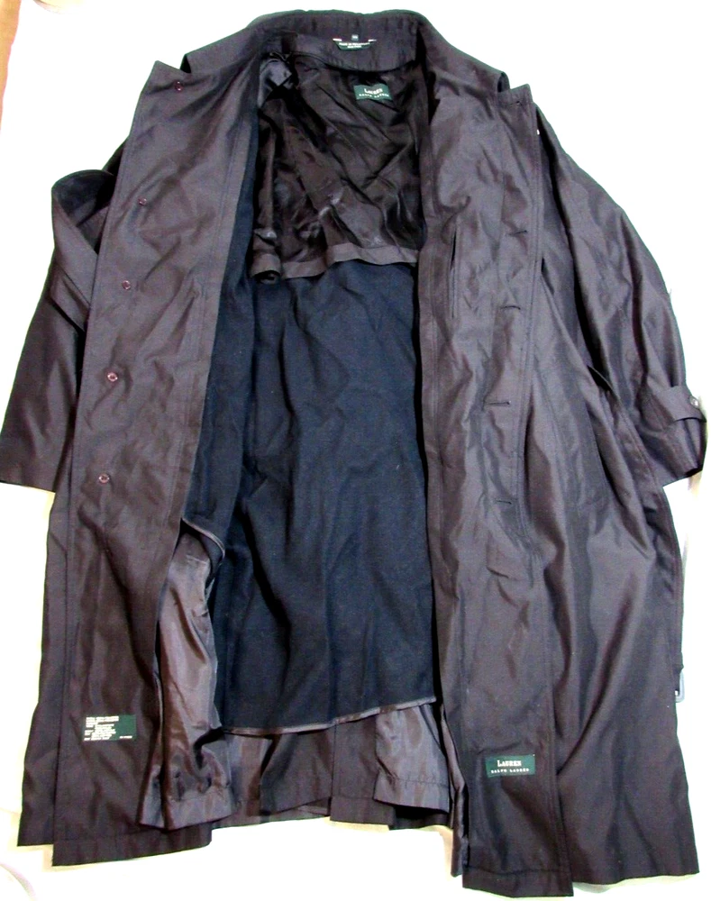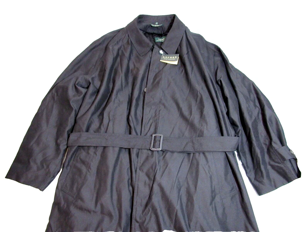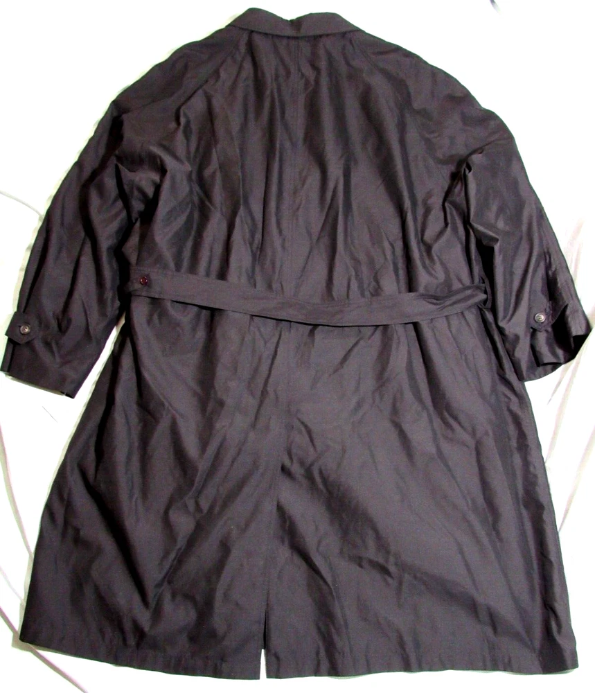 New With Tags Men's Rare Water Repellent Trench Coat Size 58R with Insulated Lining Zip-Out (Removable) & 47" Inch Length. Hidden Buttons. B127.