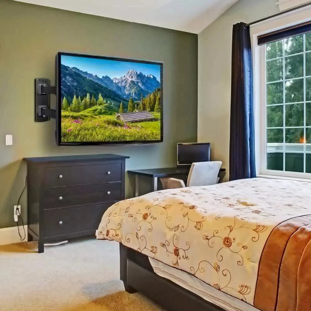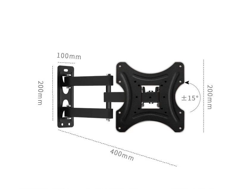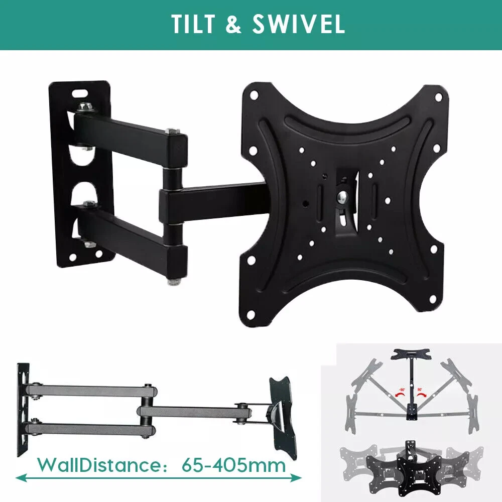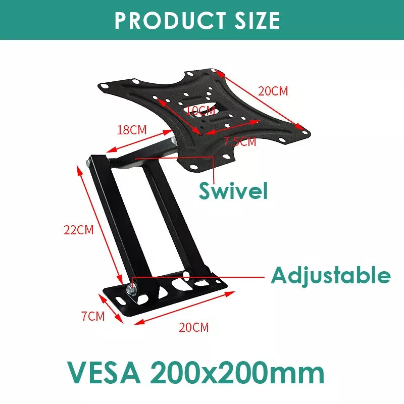 FITS MOST SCREEN SIZES 17" - 42" Screen size support used as a general guideline only. Actual fit is determined by the VESA measurements and weight capacity of this mount. VESA measurements are your mounting hole distance on the back of your TV Supports TVs up to 55lbs VESA mounting pattern max: 200 mm x 200 mm (7.8 x 7.8 inches max) TV tiles 20 degrees Swivels freely from side to side VESA mounting compliant Min/Max TV to wall distance: 2.2"/16.3 " Color: Black Single stud mountable. Cable Management