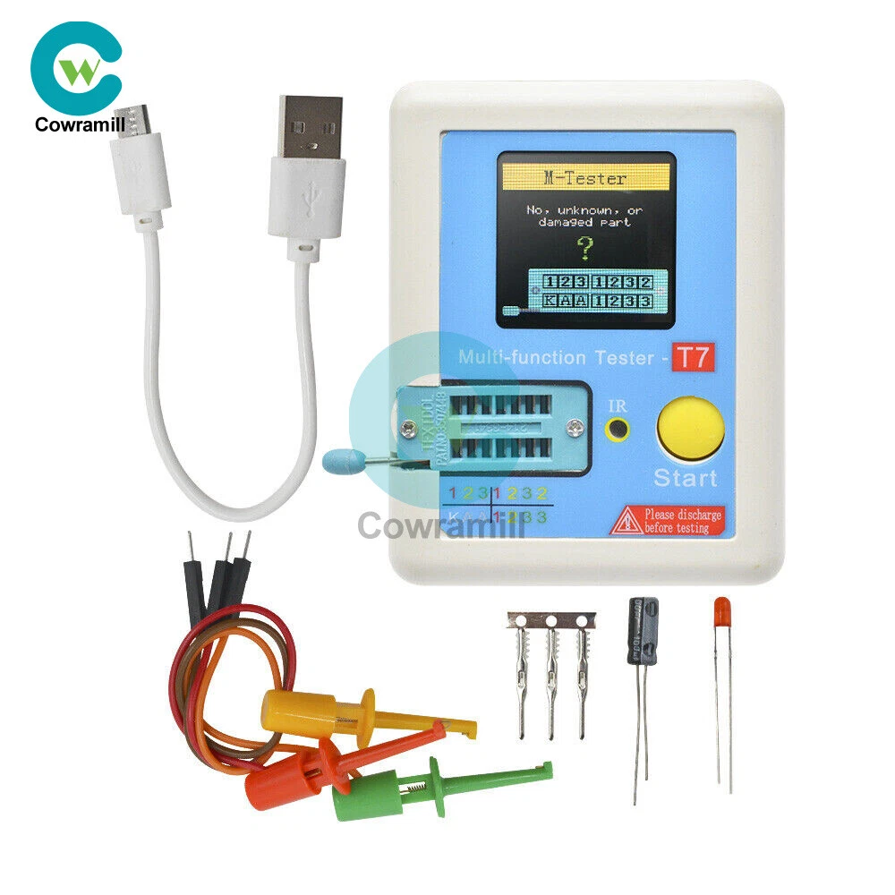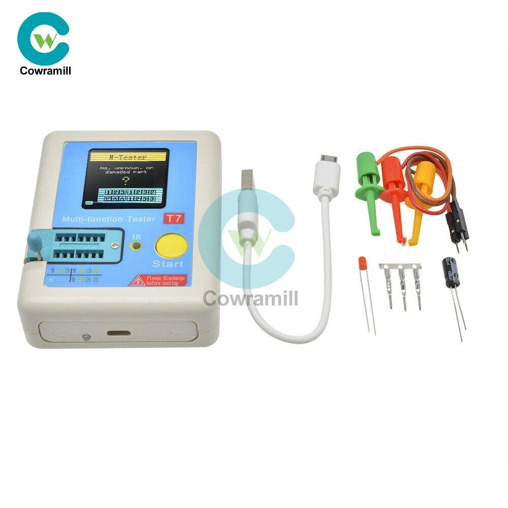 Visit store Items for sale About us Product Details Description: -160x128 TFT display -Multi function key -Transistor test area -Zener Diode test area -IR receiver window -Micro USB Charging Interface -Charge indicator LED -Chinese and English support Features: TFT graphic display Multifunction Tester. Transistor Tester - Automatic detection of zener diode 0.01-30V - Self test with automatic calibration IR decoder - Support Hitachi IR coding - IR waveform display - Infrared receiving instruction Other - Measure results using TFT graphic display (160x128) - a key operation - Automatic shut-off (Settable Timeout) -built-in High-capacity rechargeable Li-Ion battery - Detection of the voltage of the Li-ion-160x128 tft battery Warning: Built-in Li-ion Battery, it is strictly prohibited the tester immersed in water, or near a heat source! For your personal safety, please strictly comply with the use of Li-ion Battery specifications and precautions! Operating Instructions: 1.1 Key operational definitions Multi-function key has two actions: l Short press: Press the key and not less than 10 ms, release key within 1.5 seconds l Long press: Press the key more than 1.5 seconds 1.2 Power on In the power off state, short press the multifunction key, the tester is turned on and automatically measured. l Power on & measurement interface 1.3 Detect transistor In the power off state or the test is completed, put the test element into the transistor test area of test seat, and press the locking handle, short press the multifunction key, the tester automatically measure, graphical display of measurement results when testing is complete. Warning: Always be sure to DISCHARGE capacitors before connecting them to the tester! The tester may be damaged before you have switched it on! Warning: We do not recommend using the tester to measure the battery! The battery voltage must be less than 4.5V, otherwise the tester may be damaged! l Component placement Test seat are divided into transistors and zener diode test area, detailed in 1.1 Description. l No, unknown, or damaged part Package Included: 1PCS LCR-T7 TFT Transistor Tester Payment Method Shipping Policy Feedback Payment Method Payment must be received in 5 business days of auction closing. Please leave note for your special request (e.g. Colors or Size) when you pay the order. Any special request cannot be accepted after 24 hours of payment, because most of orders will be processed instantly and same day dispatched. Shipping Policy 1. We only ship to the confirmed address provided by eBay. please make sure your ebay address is 100% matches the address you would like us to ship to. If not, please let us know before we sent you the package, or we will not be responsible for any loss. hope you could understand. 2. Orders will be processed instantly and dispatched within 1-3 business days except hoilday, so we do NOT accept any email/message note after you place orders. 3. All package need to wait 30 days,Please take care it.Less than 30 days,we can't take a refund. Feedback We maintain high standards of excellence and strive for 100% customer satisfaction! Feedback is very important to us. We request that you keep in touch with us immediately BEFORE you give us neutral or negative feedback, so that we can satisfactorily address your concerns.