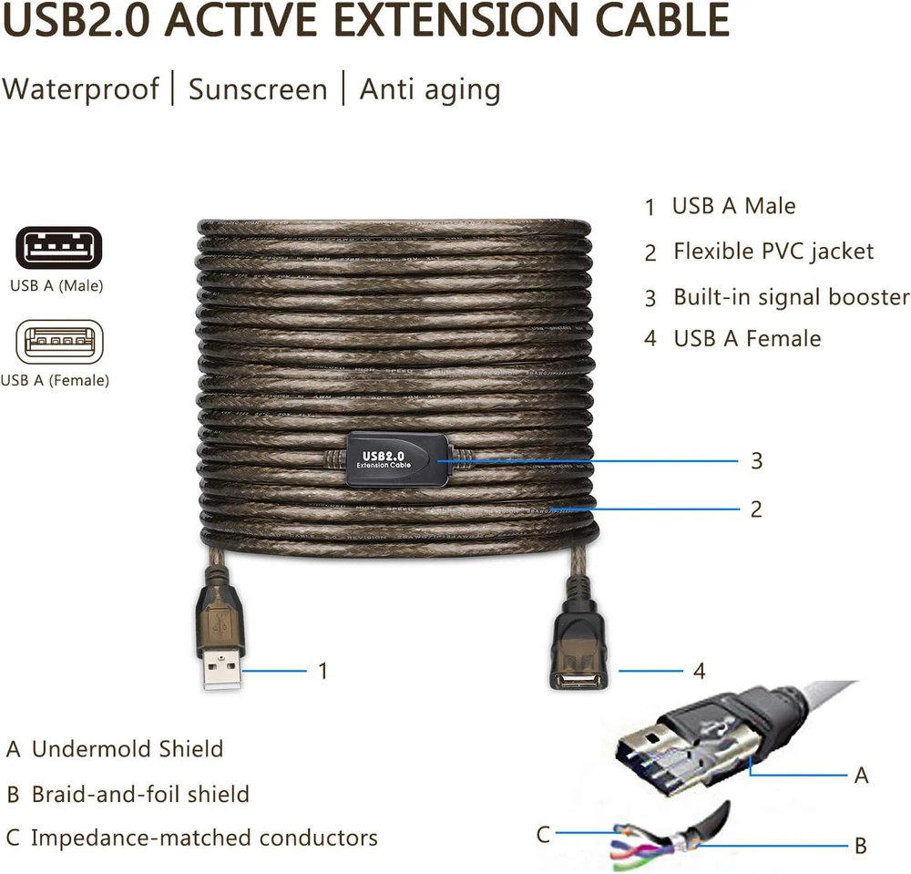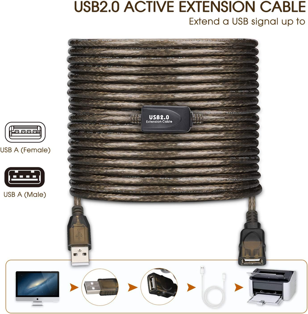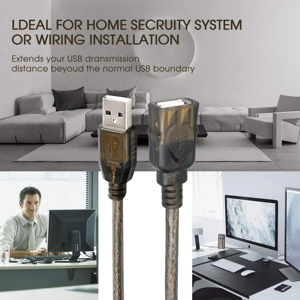 Store New Arrivals Add to Favorite View Feedback Contact LDKCOK USB 2.0 Type a Male to a Female Active Repeater Extension Cable 50Ft, High Speed 480 Mbps Description Item model number 8541678276 Number of Items 1 Unit Count 1 Count Special Feature Braided, High Speed, Data Transfer Brand LDKCOK Package Type FFP Number of Pins 4 Is Discontinued By Manufacturer No Package Dimensions 6.65 x 6.22 x 2.32 inches Manufacturer LDKCOK Indoor/Outdoor Usage Outdoor, Indoor Connector Type Usb Type a Male to Female Item Weight 1.01 pounds Connector Gender Male-to-Female Data Transfer Rate 0.48 Gigabits Per Second Color Transparent black Cable Type USB Compatible Devices Projector, Laptop, PC, Television, Printer Shape Round Frequency 4.8E+2 MHz Gauge 2824 Recommended Uses For Product USB device extension Size 50FT 【USB Active Extender】:LDKCOK USB 2.0 active extension cable offers an easy and inexpensive way to extends your USB connection to the computer, for use with wireless network adapter, 3G network adapter, Wifi receiver, printer, scanner, camera, USB display adapter, mouse, keyboard, USB flash drive and other USB computer peripherals. Important Note: This extension cable cannot be used for charging devices. 【Fast Data Transfer】: This USB repeater cable supports high speed USB 2.0 data transfer rate up to 480 Mbps. Built in FE1.1s low-power signal booster chipset, which assures peak performance with minimum loss of signal quality and not hot after long working hours. 【Super Performance】: Thick tin-plated 2824AWG copper core decreases the transfer impedance and ensures the stutter-free signal transfer. The triple-shielded (foil/braid/ground) provides the maximum resistance from EMI/RFI and superior signal quality. The four-core structure ensures the different signal won't interfere with each other. 【Compatible】:This cable does not have an adapter and can only be used in USB devices with low currents such as fax machines , printers , scanners , U disk , card reader ,mouse and keyboard ,touch screen,etc.The camera cannot be connected with this 60' or 100' non-led cable because the current is not enough.Can not use on DVR.The DVR can not recognize the chip of this cable. 【FLEXIBLE&DURABLE】: With metal wire braid inside, the cable is flexible and resistant to pull and drag. The gold-plated connectors can bear more than 10000 times plug. The ABS and PVC case is anti-abrasive. UNIVERSAL COMPATIBILITY: The USB active extender is broadly compatible with Windows, Mac, Linux, Chromebook, and USB 2.0 peripherals including hard drives, USB hubs, mice, keyboards, flash drives, printers, and more. Product Description Extend Original Printer Cable more stable and reliable than wireless connection Extend CCTV cameras using the LDKCOK USB Extension Cable No external power required; shares available USB power between cable and attached device In-built amplification chipset for boosting transmission speed Extend USB port for laptop or desktop No need to squeeze yourself to connect USB disk or other USB peripherals anymore. USB 2.0 Active Extension Cable Product specifications are (15FT 30FT 50FT 60FT 75FT 100FT 130FT) Plug and play without drive 5000+Bend Lifespan ABOUT US We offer the best prices around on high quality products. Our E-store includes media such as books, movies, music and games while offering electronics, toys, sporting apparel, clothing, tools, general home, garden items and more. SHIPPING We are always working hard to ensure your package arrives as soon as possible. Please understand that some factors like weather, high postal traffic, and the performance of shipping companies are outside of our control. We offer free shipping to the lower 48 states and ship within 2 business days of payment, usually sooner. We do not accept P.O. Boxes. Please provide a physical address. RETURNS We offer a 30-Day Return Policy on items which you are not completely satisfied with. You have the option for a full-refund or an exchange of the item. No returns are available on items shipped outside of the USA. PAYMENT We accept PayPal. CONTACT US This page content is yet to come Please ad us to your favorite seller and visit again later Thank You CUSTOMER SATISFACTION We try our very best to make sure every customer is completely satisfied. If there's a problem, message us! We're happy to help.