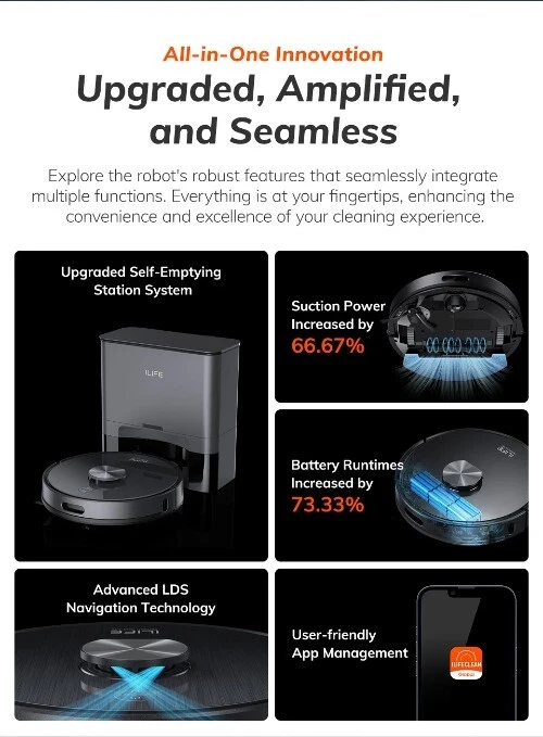 LDS Robot Vacuum Cleaner 5000Pa with Auto Empty Dock and Wet/Dry Dual Functionality