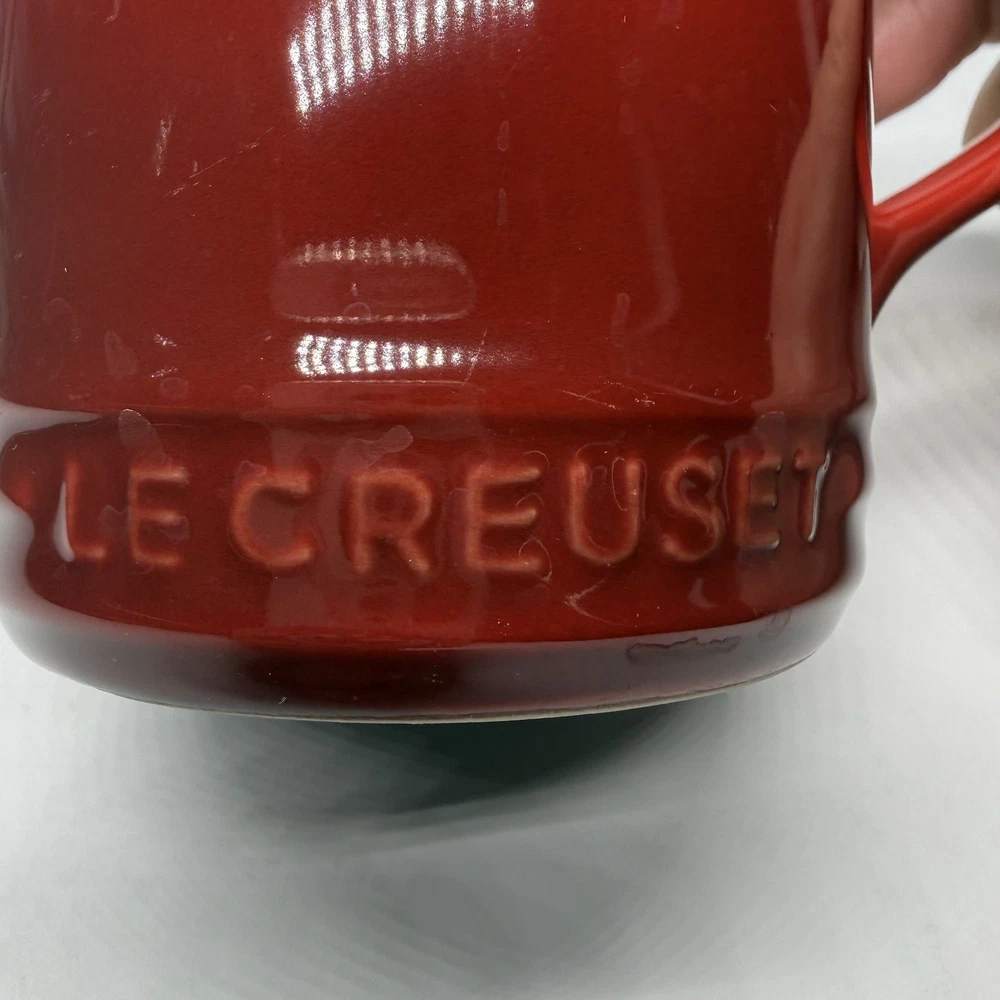 PLEASE NOTE SOME CLOUDINESS ON BOTTOM OF MUG (PHOTO #7) Piece has no chips, cracks, stains, or noticeable utensil marks Measures 4"x3.75"