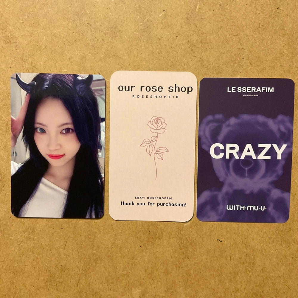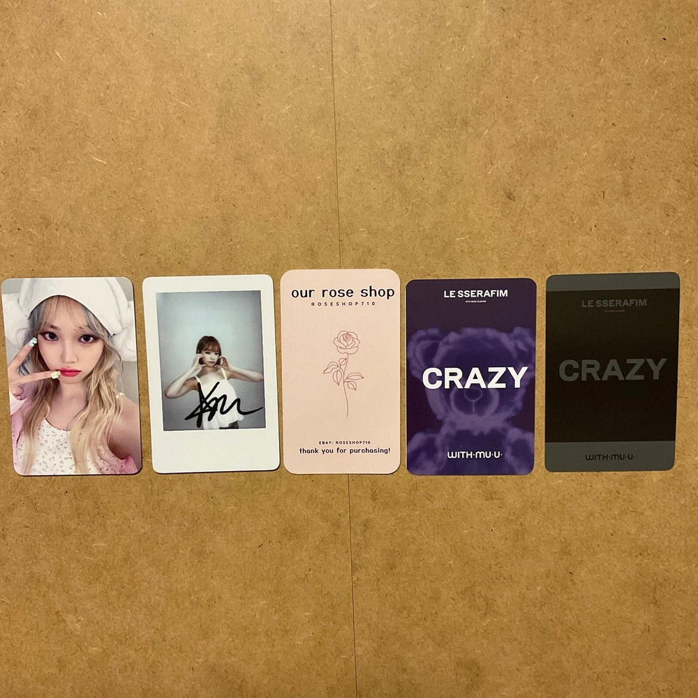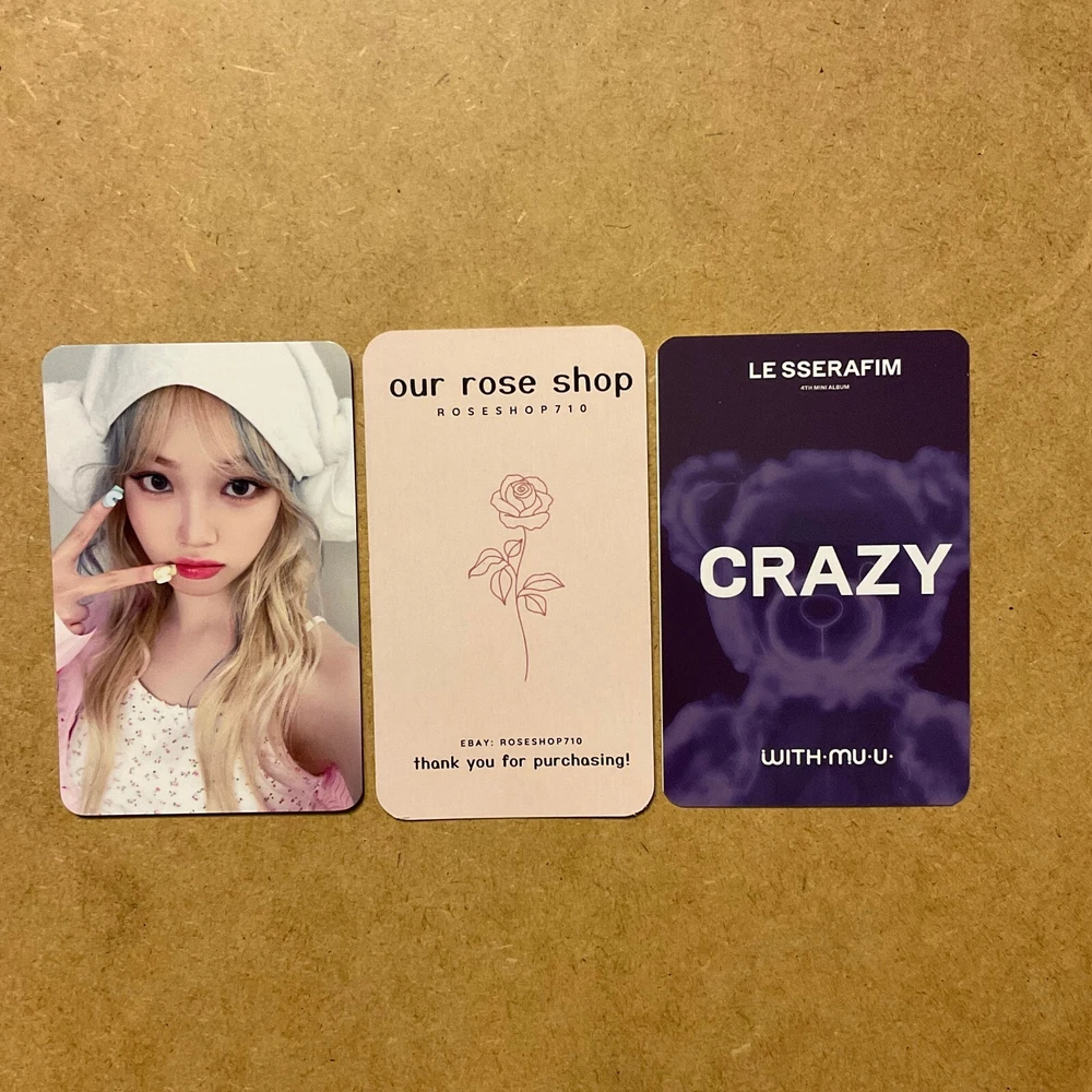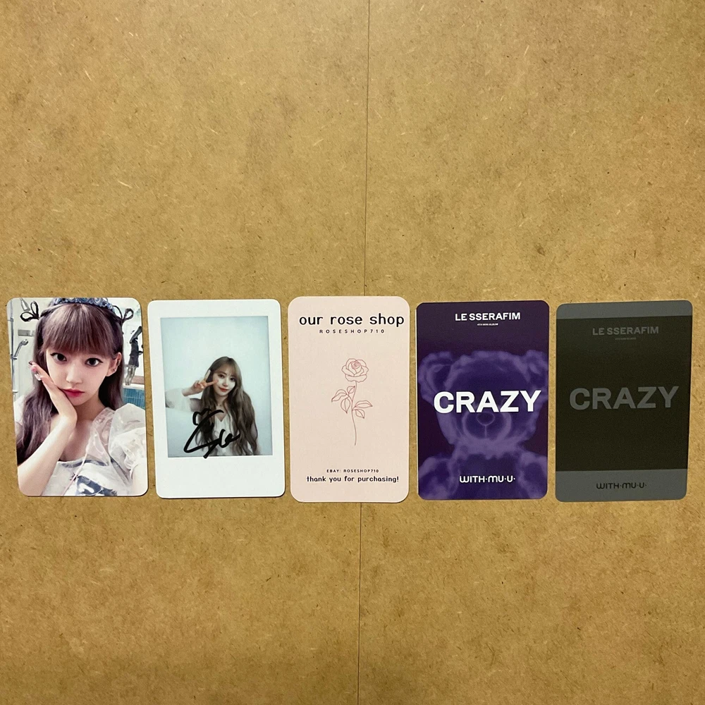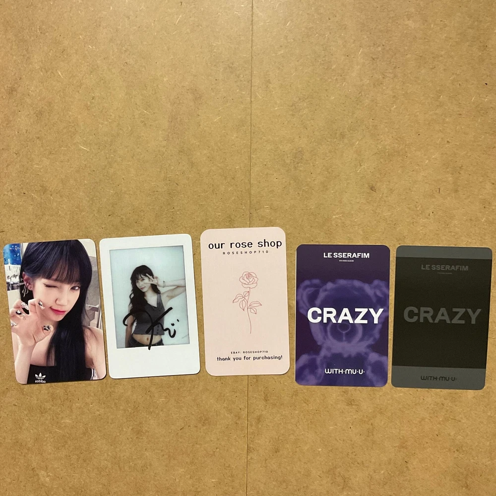 Please note ALL photocard (not polaroid) variations apart from Kazuha photocards have a white line on the back of the photocard, left side, of varying thicknesses (approx: <=2mm), most likely due to misprinting by Withmuu. Please check the default picture of card backs carefully before purchase. Please be aware that polaroids are not hand signed , these are lucky draw polaroids and signatures are printed . No restocks planned. All photocards are authentic, original goods. No returns on photocards. For US buyers : USPS tracked shipping from the US. If you add $70+ of photocards to your cart, you will automatically get free shipping. For international buyers : Please DM before purchase, we can check the shipping fees to ensure correct charge. We are not responsible for any possible customs fees incurred. Description Artist: LE SSERAFIM Type: Photocard (cardboard), Polaroid is of slightly thinner material. Will be shipped safely in a shipping shield or top-loader. Item condition: There is no noticeable damage , however there may be small scratches or other album damages. Fine scratches, damage, discoloration, slight warping, etc may be possible during packaging and delivery, this is not a reason for exchange. Shipping We will ship in 1-3 business days from receiving payment. Items are on hand and will ship from the USA. All orders will be sent with a tracking number.