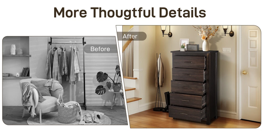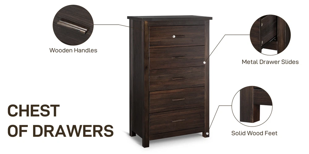 LEADZM 5 Drawer Wood Dresser for Bedroom, Farmhouse Tall Dresser
