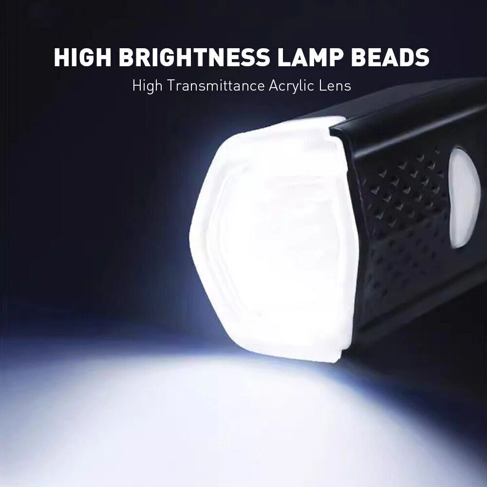 Specification: Brand:TT-ABC Type: Headlight + Tail light Set Light Color:Red Light +White Material:Plastic Color:as the picture Weatherproof Rate :IP65 Battery: Rechargeable battery Battery Voltage: 3.6V Battery Current: 0.3A Lighting Modes: Lighting Modes: High, Mid, Low, Flash, Max Running Time: 12 hrs Charging Time: 1 hrs  Feature: 1.USB Rechargeable: Built-in 800mAh rechargeable lithium battery 2.Unique shape, simple style, easy to install. 3.365 ° adjustable rotation 4.300 lumens super bright 5.Gear : full light, half light, blinking 6.Battery life : full light 2.5 hours, half light 4 hours, blinking 12 hours 7.Click Switch: Press to shift, High - Mid - Low - Flash - Off, Press 2 seconds to turn off, meet riding function requirements 8.Easy To Install: Setup is straight-forward, no tools needed, simply hand turn the hardware until it's tight and secure on your bike handlebar in a desired location. 9.You can use it in heavy rain or thick fog(Note: can't put it into water directly) Fitment: Universal all Bike/Bicycle /Mountain cycling/Mountain racing bike Package includes: 1 x USB Rechargeable Bike LED Headlight 1 x Rear Taillight 1x Bike Light Bracket 1 x USB Charging Cable Research show that almost 80 percent of cycling incident occur during the day. If you’re looking to reduce the chance of an accident, daytime running lights are the single most effective product to help increase your noticeability during the day. Get a fully 12 hours of runtime under warning mode and need charging in knowing there are red flash for when you reach low power mode. With compact and powerful design, this front and back light set are detectable from a greater distance than the other light, then creative more reaction time for drivers About us Payment Shipping Returns Contact us Feedback TT-ABC is a company specializing in the production and sales of automotive parts. We offer a variety of products, including headlight, high beam lights, low beam lights, fog lights, contour lights, turn signals, brake lights, reverse lights, and interior lighting. We have our own production factory and collaborate with hundreds of component factories, committed to providing customers with high-quality products, the most favorable prices, and a professional after-sales customer service team. Our goal is to meet the needs of our customers and provide them with an excellent shopping experience. 1.Please confirm if the address and postal code are correct before placing an order! Convenient and fast shipping. 2.We can accept payment method is PayPal, Google Pay, Visa, Master Card, Amex and Discover and other payment way. 1.Shipping from the US Stock by USPS,FedEx or UPS . 2.Within 1-3 business days after payment cleared. 3.Please offer us your telephone number and correct zip code,or your order will be delayed since the courier will need it for the delivery. 4.Delivery time depends on destination,usually arrive 1-6 days after delivery. There are some tips for you: 1. If There are any problems with the product, please contact with us before leaving neutral and negative reviews feedback ,give me a Chance to make it right 2. If you are in our exclusion countries. Please write to us for shipping .If When the goods arrive, please check them carefully 3. If you find that the goods have been damaged, please be sure to refuse to collect the goods and ask the courier to return the goods to us. If the goods are damaged, please do not collect. 4. If the item you have ordered is defective, contact us within the warranty period, we will replace the defective item for you with an item of equal functionality at first. 5. If buyer do not want neither replacement nor partial refund, but want returning,buyer should be responsible for all the returning ship charges. 6. To be eligible for a return, the item(s) must be in new, unused condition with all original tags and packaging intact. Please note that we cannot accept returns for items that have been used, damaged, or altered in any way. Our working hours are from 9:00am to 18:30 China time (Monday to Friday). Communication is the best way to solve problems. If you have any questions, please contact us or leave us a free message. We will reply immediately at our convenience. After-sale If it happens that the lights get moisture after you install them on your car, it would be normal for first time using. You just need to keep using for a period of days, the moisture will disappear. because there is inner air cycling in the lights as we design. As for headlights, you can also open the cover of low/high beam so that the moisture will out more quickly. If the moisture still exist, please feel free to send us message for help, we will try our best to help you. After you install, if you find that there have function does not work, please check if the harness is connected correctly, and exchange the left and right , If it still does not work, please rember take some photos or videos, please feel free to contact us. We will appreciate if you can takes some pictures or videos about your problem, and also send us the barcode of the products(every product we sell has a barcode on the backside of the light and outside of the package, it\\'s very important for us to find the problem) If you open a request or case optionaly before communication, it would be hard for us to serve you. Feedback Policy: At our store, we pride ourselves on providing an exceptional shopping experience for our customers. We offer high-quality products and outstanding customer service, and we\\'re committed to your satisfaction. We appreciate your business and value your feedback. We strive to ensure that every customer is completely satisfied with their purchase, and we hope that you will leave us a positive review to let others know about your experience. If for any reason you\\'re not satisfied with your purchase, please contact us before leaving feedback. We\\'ll work with you to resolve any issues and ensure that you\\'re 