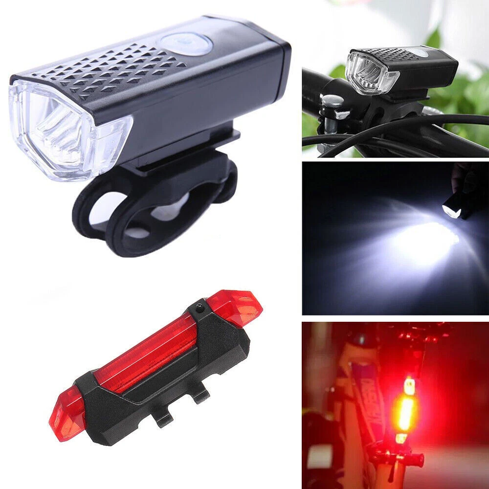 LED Bicycle Headlight Bike Front Rear Light Cycling Lamp Set USB Rechargeable