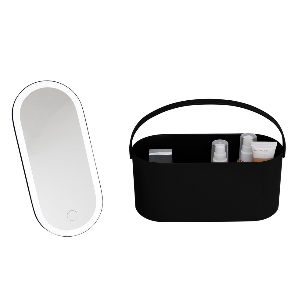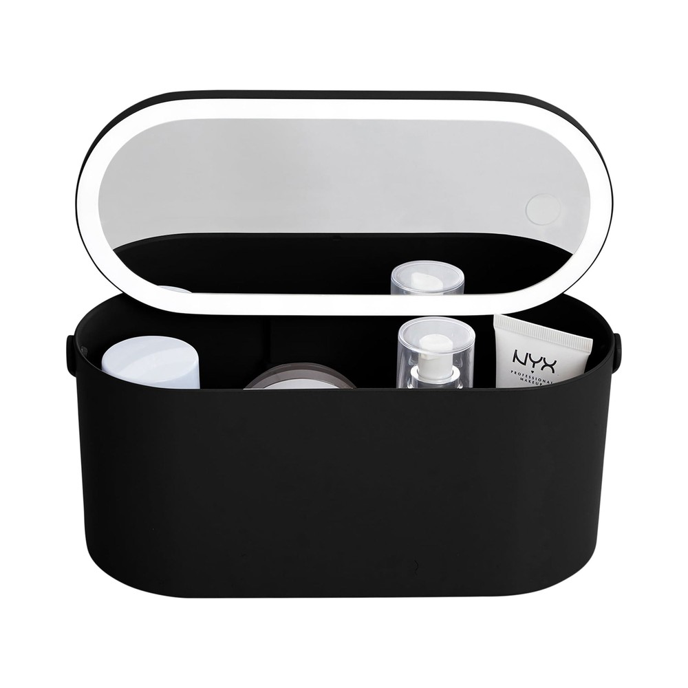 Beauty Storage Organizer with This LED can hold all of your beauty essentials and has a handle for portability. Get ready anywhere you need to. The clips onto the base so you can access your makeup and tools and use the LED at the same time. Great for LED r doubles as a lid for your makeup storage box carrying handle