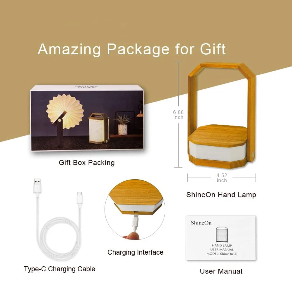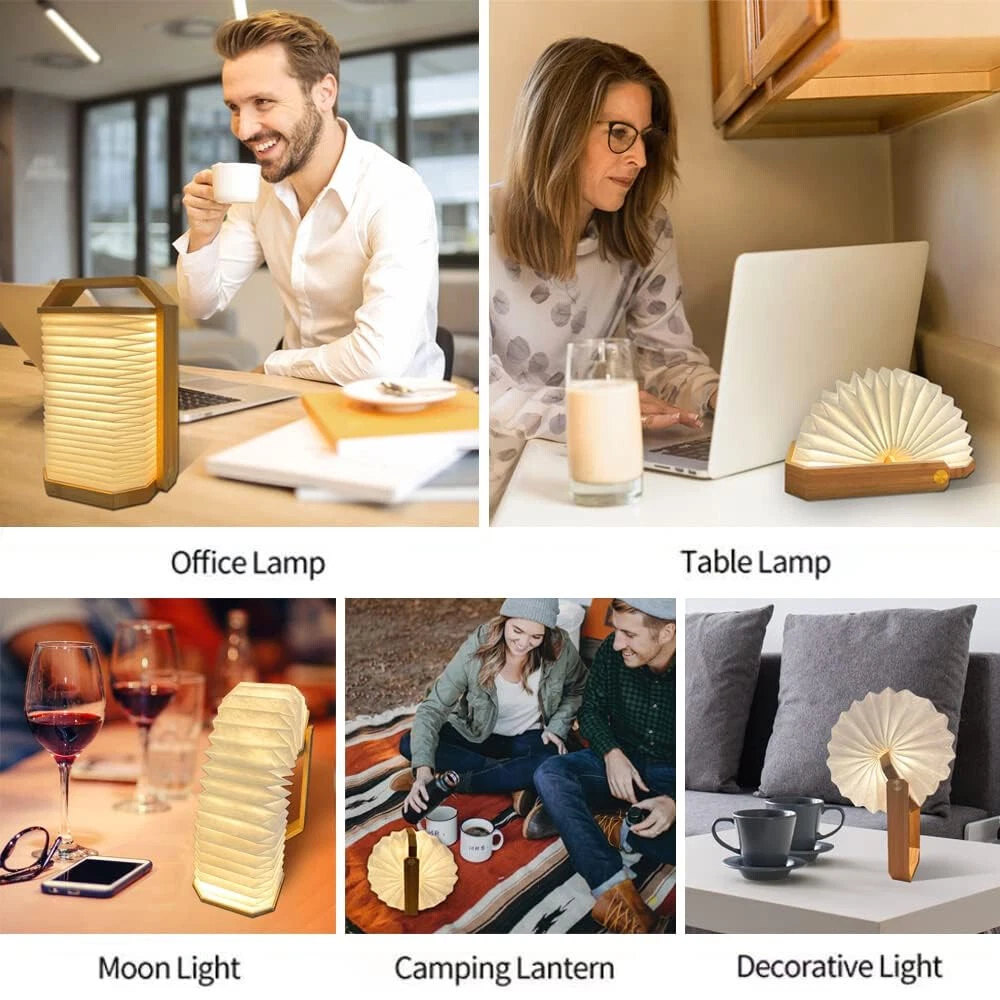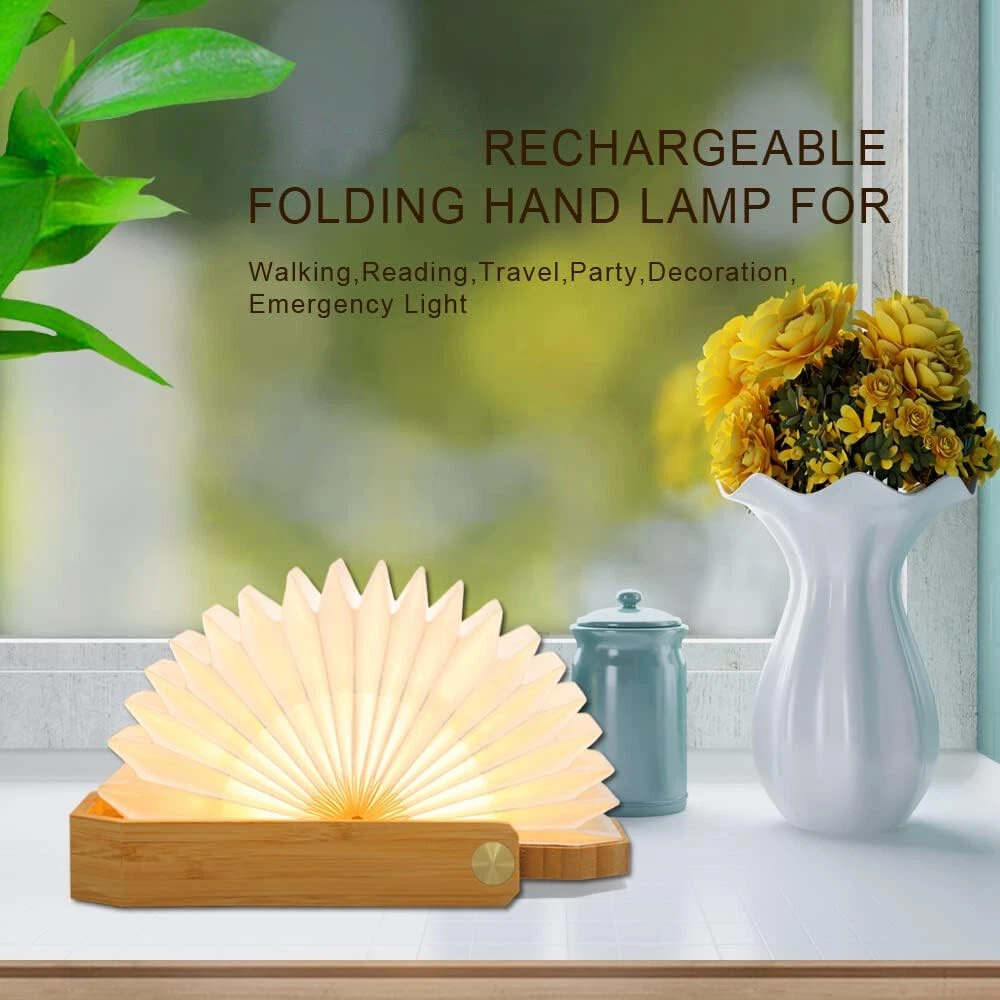 Product Description LED Book Lamp, Uoune Night Light Mood Lights USB Rechargeable Magnetic Design, Warm White Material Upgrade: Made of durable Dupont paper and maple wood. Folding book light is water/high-temperature resistance with good light transparency. So you don't worry it will destroy easily and won‘t hurt you when you touch the book LED upgrade: The wooden light adopts advanced flicker-free and anti-glare warm yellow LED can protect your sensitive eyes from tiredness, and create a relaxed atmosphere. The light turns on when you open it and turns off when closing the book Unique Design: Book shape desk lamp is designed with a handle. The light is capable of various transformations with the function of the handle. You can open it to 0-360 degrees as you want, also be a fidget toy to transform the shape of the lamp Safe Charging Design: Wooden book light powered by 1500mha battery, and adopt overcharge protection that allows 4-6h of continuous high glow. Allows light up when charge it by USB port Ideal gift: Suit for night lights, bedside lamps, small table lamps, decorative lamps, wall lamps, wall lights, pendant lights, etc. Order this unique and special gift to surprise your beloved Women, your wife, girlfriend or daughter. Specification: Name: B-book Shape Light Light Source Type: LED Material: Wood Battery: Build-in Lithium-ion battery Lumen: 500lm Battery Voltage: 3.7V/ 1200mAh Charging Time: 2H Working Time: 4-6H Charge Method: by 5V Type C Folding mood light with the magnet in the lid makes it hold in a different way. Hanging light is linked by a metal clasp to allow you to carry anywhere and hang it. Premium material makes you safe to use the light and never worry about any harm to your body or your pets. Thermal Insulation: People can touch directly the book-shaped lamp, safe for kids and pets. 95% Light Transmittance: With strong illumination, the light gets spread out to illuminate through the paper. Tear-Resistance: Made of Tyvek paper with high durability and strong water resistance, so the product is long-lasting. Compare with others, this book light is more practical, it can be a hanging light, paper lamp, instead of a table lamp. Made of premium white maple wooden, applied with lasing cutting to ensure that bending doesn't cause damage to the night lamp. Package: Perfect product packaging, so that your products safely delivered to your hands. Gift Ideas: It's a fantastic gift or present for family/ friends/classmates/coworker/colleague/yourself/Christmas/Birthday/Children's Day. Packing List: 1 x LED night light 1 x USB Cable 1 x Manual More About Us 1. Accept payment via PayPal only. Please list your special requests (color, size, etc.) in the PAYPAL notes section when you make payment. 2. Shipment according to your eBay address, so please make sure of your receiving address before purchasing. 3. If you have NOT recieved the items after the time as we have promised, please contact us before leaving any feedback or raise any dispute. 4. All returned items must be in the original packaging with tracking number, specific reason for the return, and your eBay ID. * ALL eBay Message will be reply within 24 hours in working days. Thank you! ^-^ More About Us 1. Accept payment via PayPal only. Please list your special requests (color, size, etc.) in the PAYPAL notes section when you make payment. 2. Shipment according to your eBay address, so please make sure of your receiving address before purchasing. 3. If you have NOT recieved the items after the time as we have promised, please contact us before leaving any feedback or raise any dispute. 4. All returned items must be in the original packaging with tracking number, specific reason for the return, and your eBay ID. * ALL eBay Message will be reply within 24 hours in working days. Thank you! ^-^ powered by