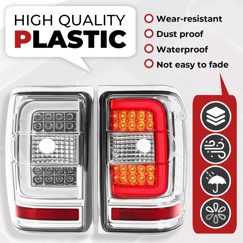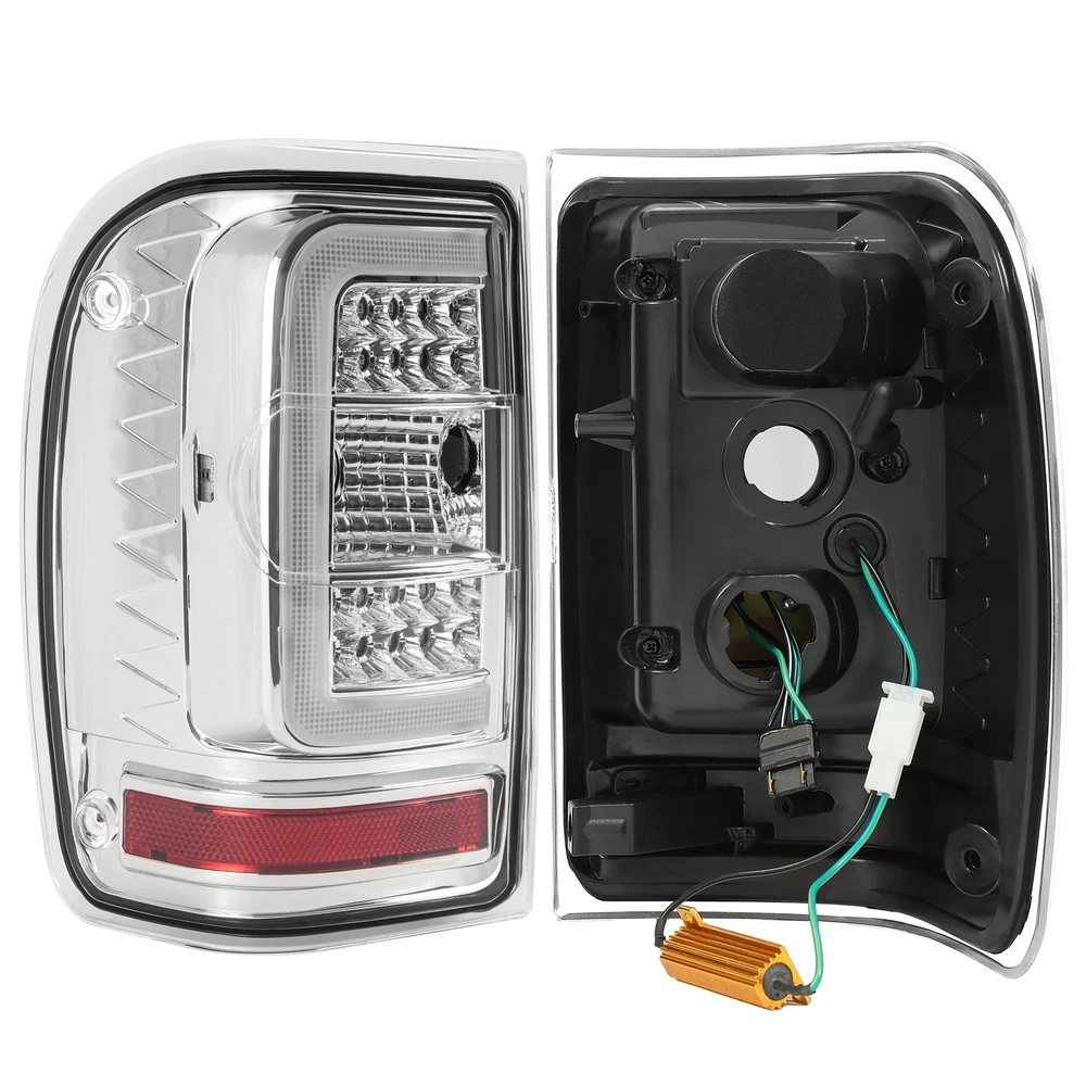 LED C Light Bar Tail Lights For Ford Ranger 2001-2011 Chrome Housing Clear Lens Specification Condition: 100% Brand New Color: Clear Lens+Chrome Housing Material: Plastic Light Source Type: LED Replaces Part Number: For FO2800156, FO2801156, 6L5Z13405AA, 6L5Z13404A, 1L5Z13405BA , 1L5Z13404BA Features This LED light is made of high-quality plastic and has built-in dual C-shaped 3D LED light tubes. Not only does it improve visibility in bad weather, it also enhances safety. New style LED lights make your car cooler. Excellent light quality: The light generated by LED is close to natural light, which can effectively reduce eye fatigue, and enhances the safety of night driving. High Quality Materials: Plastic Lens Provide Strong Impact Resistance & UV Radiation Protection Appearance Upgrade:Enhance Incredibly Vehicle Visibility And Style, Improve Brightness & Safety Fitment For Ford Ranger 2001- 2011 Dose Not Compatible On STX Models! Package Includes 1 X Pair Of Tail Lights (Driver & Passenger Side) Shipping All items will be shipped out in 1 business day, no expedited service available. We ship our items to USA only(Does NOT include Hawaii, Alaska or Puerto Rico, PO Boxes/APO's). Shipping Notes We use multiple warehouses and will select the nearest warehouse for delivery according to your order address and our inventory, Thank you for your cooperation. Contact us Any Questions, Just feel free to contact us on eBay. We will reply you in 24 hours. On Dec 22, 2024 at 21:05:40 PST, seller added the following information: On Dec 25, 2024 at 02:26:25 PST, seller added the following information: