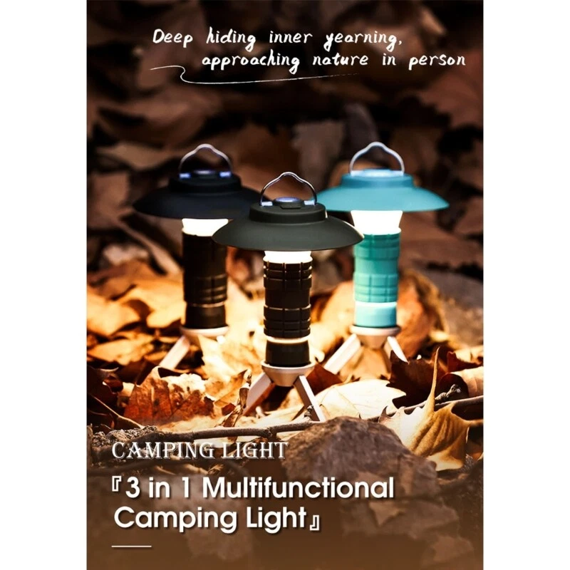 Features: Designed with waterproof materials, it can cope with the harsh natural environment such as wind, rain and humidity. Three light modes: flashlight highlight low light which can be used according to your needs. The power can be displayed. Type-c charging connector is fully-charged in 3 hours and compatible-with various charging devices. The tripod support frame can be adjusted to give you the most stable support; With hanging-ring, easy to carry/hangs; The bottom magnet adsorption can be adsorbed on metal materials. Easy to use. Removable the camping lamp can be disassembled into three parts for convenient storage and carrying. Suitable for most outdoor activities, such as backpacking, hiking, camping, fishing. Specifications: Material: ABS+PC+Silicone Color: Black/ Green/ Blue Size: Approx.10.3x4.2cm/4.05x1.65inch Package Includes: 1x Camping Light note: Please allow 1-2cm errors due to manual measurement, make sure that you do not mind before you order. Due to the difference between different monitors, the picture may not reflect the actual color of the item.