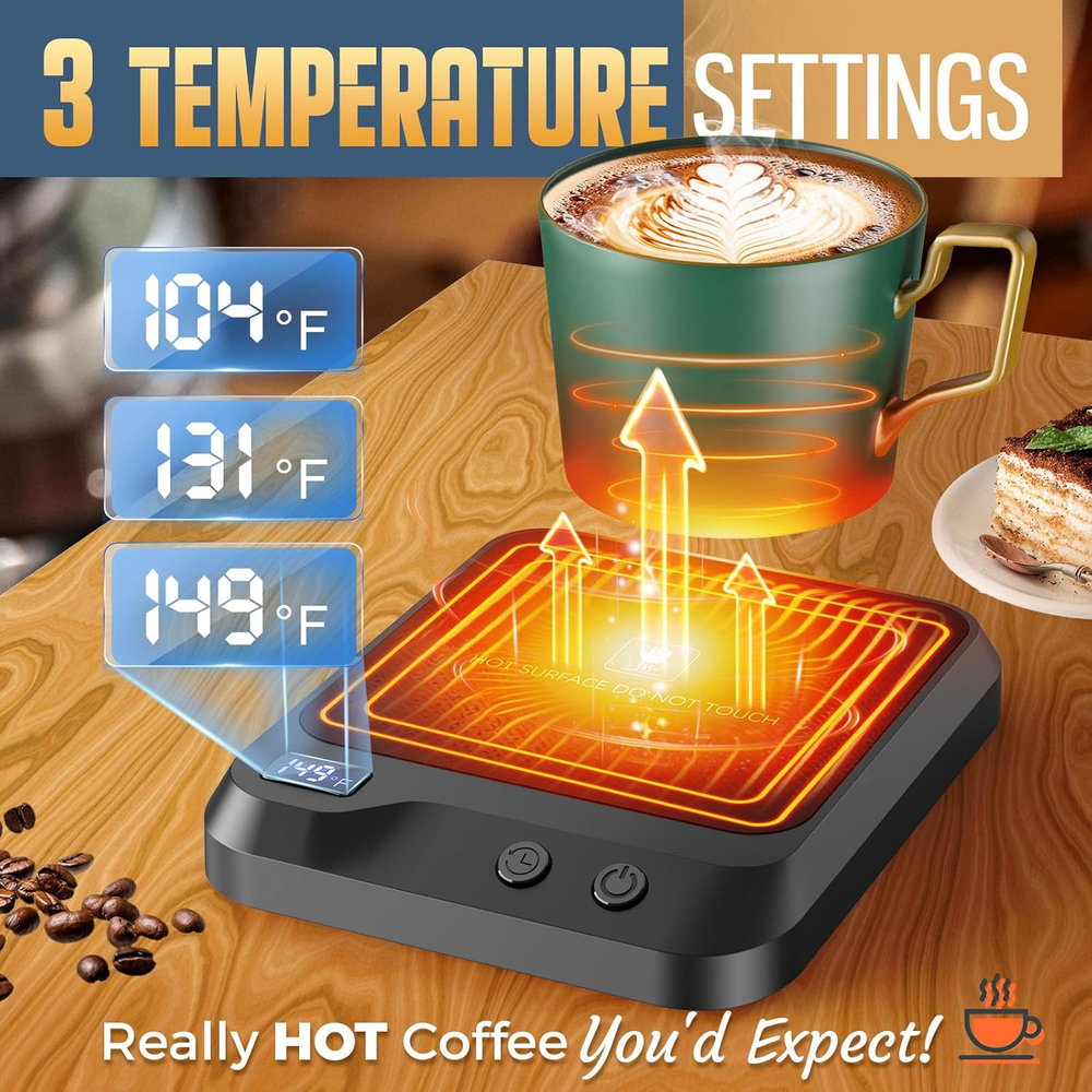 This coffee mug warmer is a game-changer for keeping drinks hot without reheating! The LED display is super clear, and the auto shut-off gives peace of mind. Love the three temperature settings—perfect for tea, coffee, or even melting candles. The timer is a great touch for busy mornings, and the sleek black design looks stylish on any desk. Definitely a must-have for anyone who hates cold drinks!