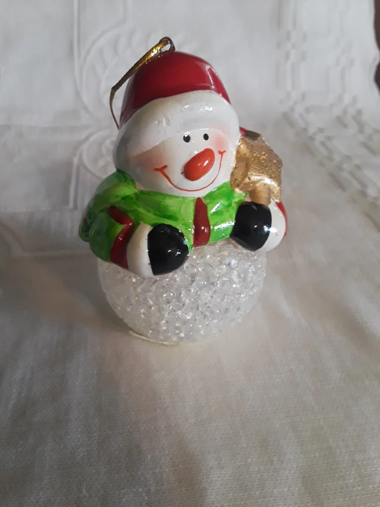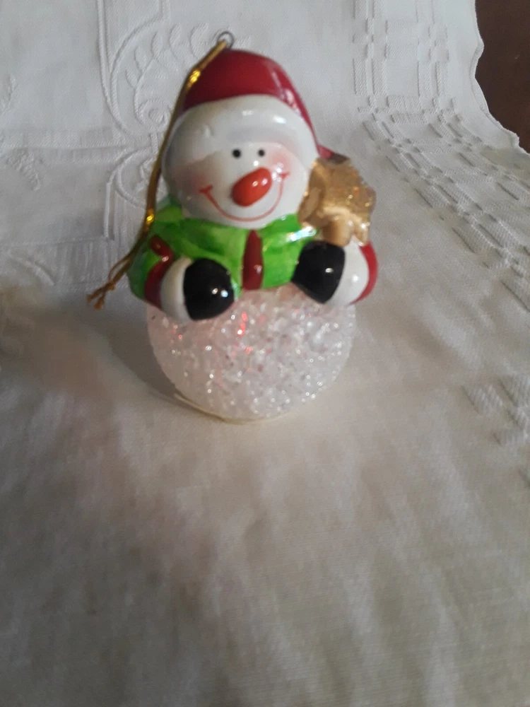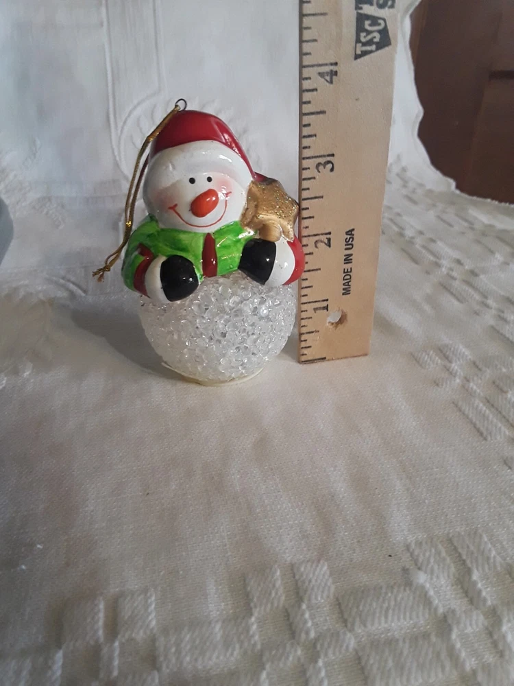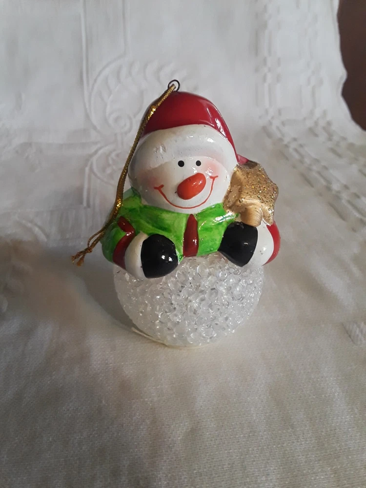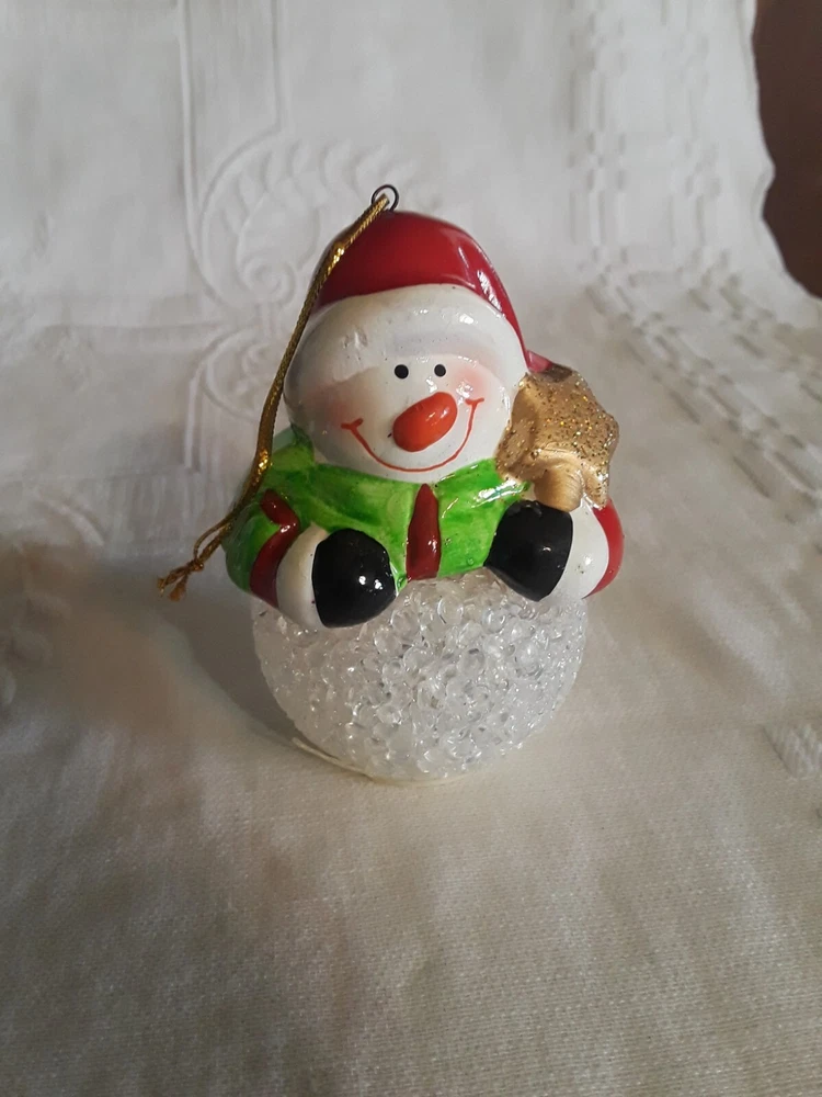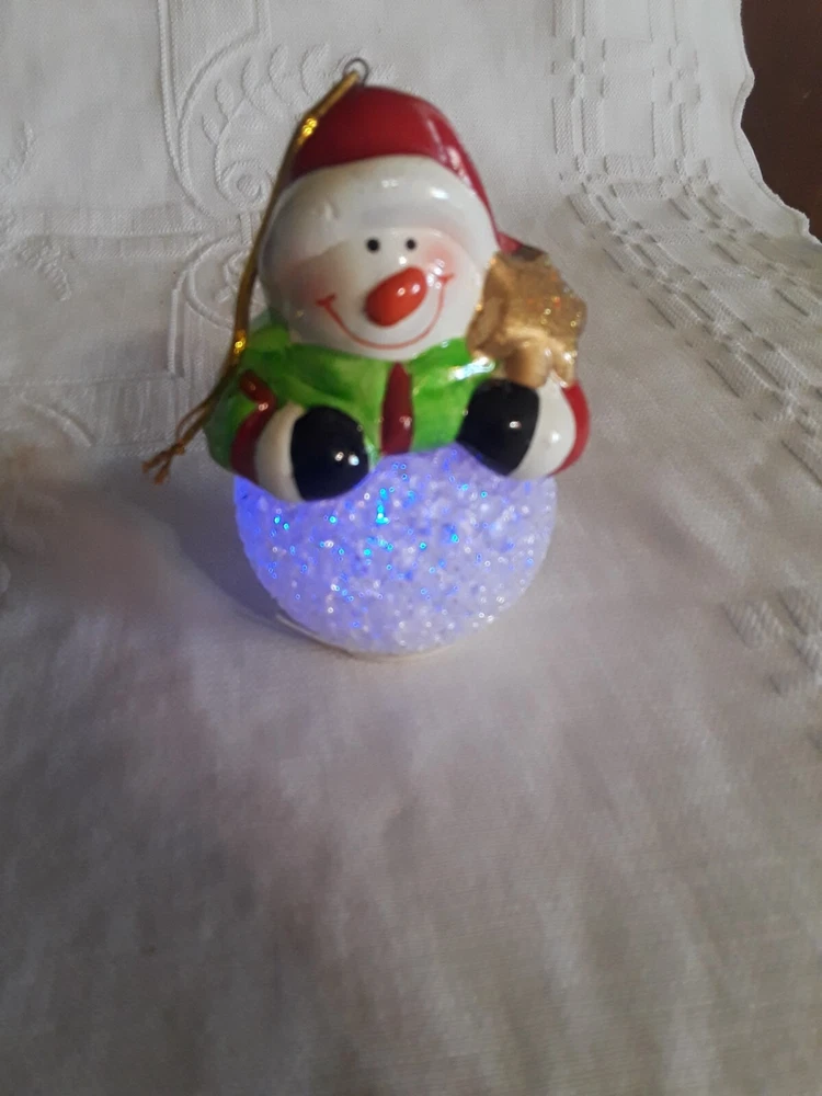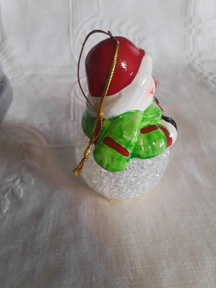 LED Color Changing Snowman Christmas Decor Battery Operated Ceramic/ Acrylic