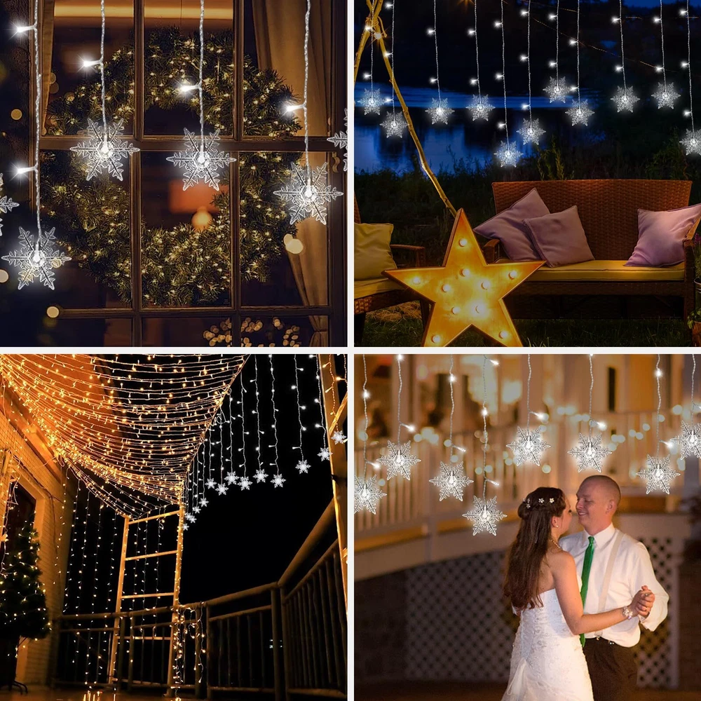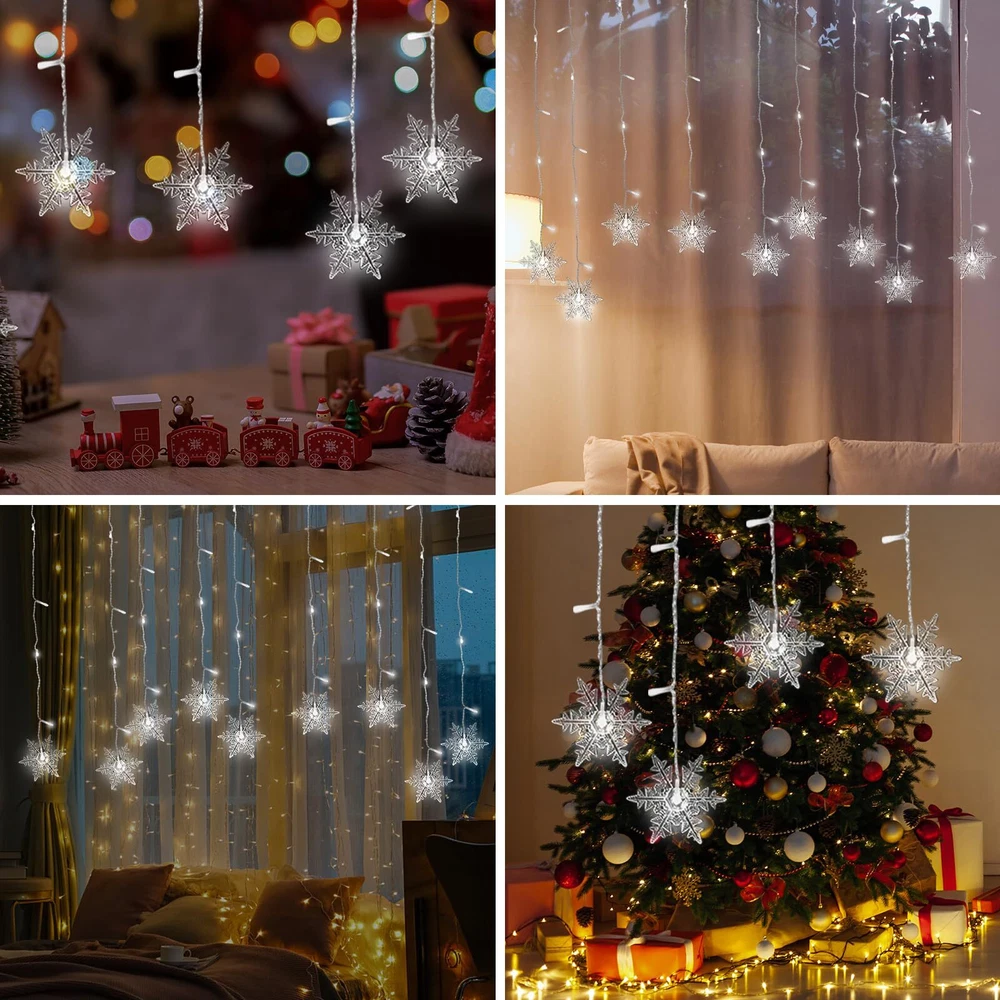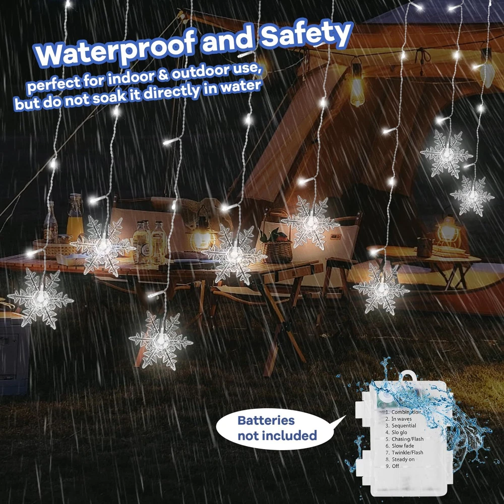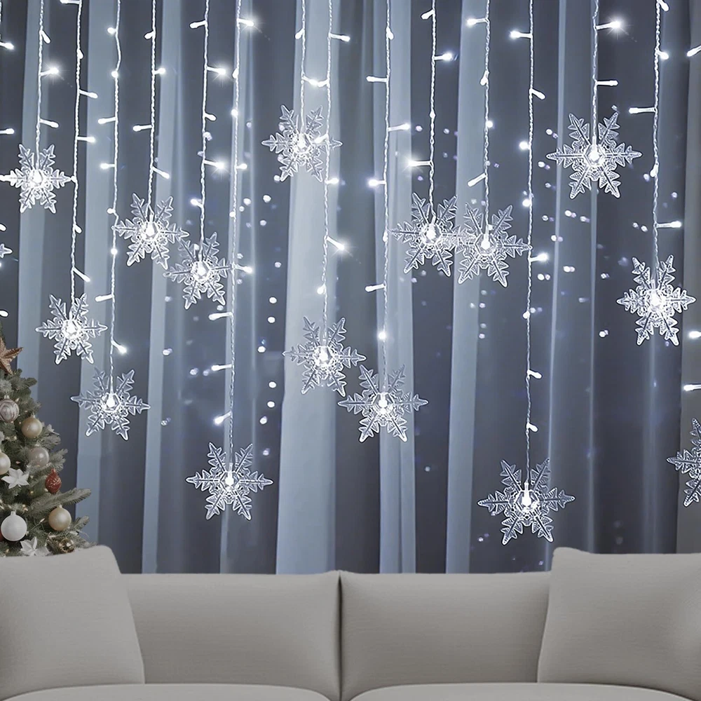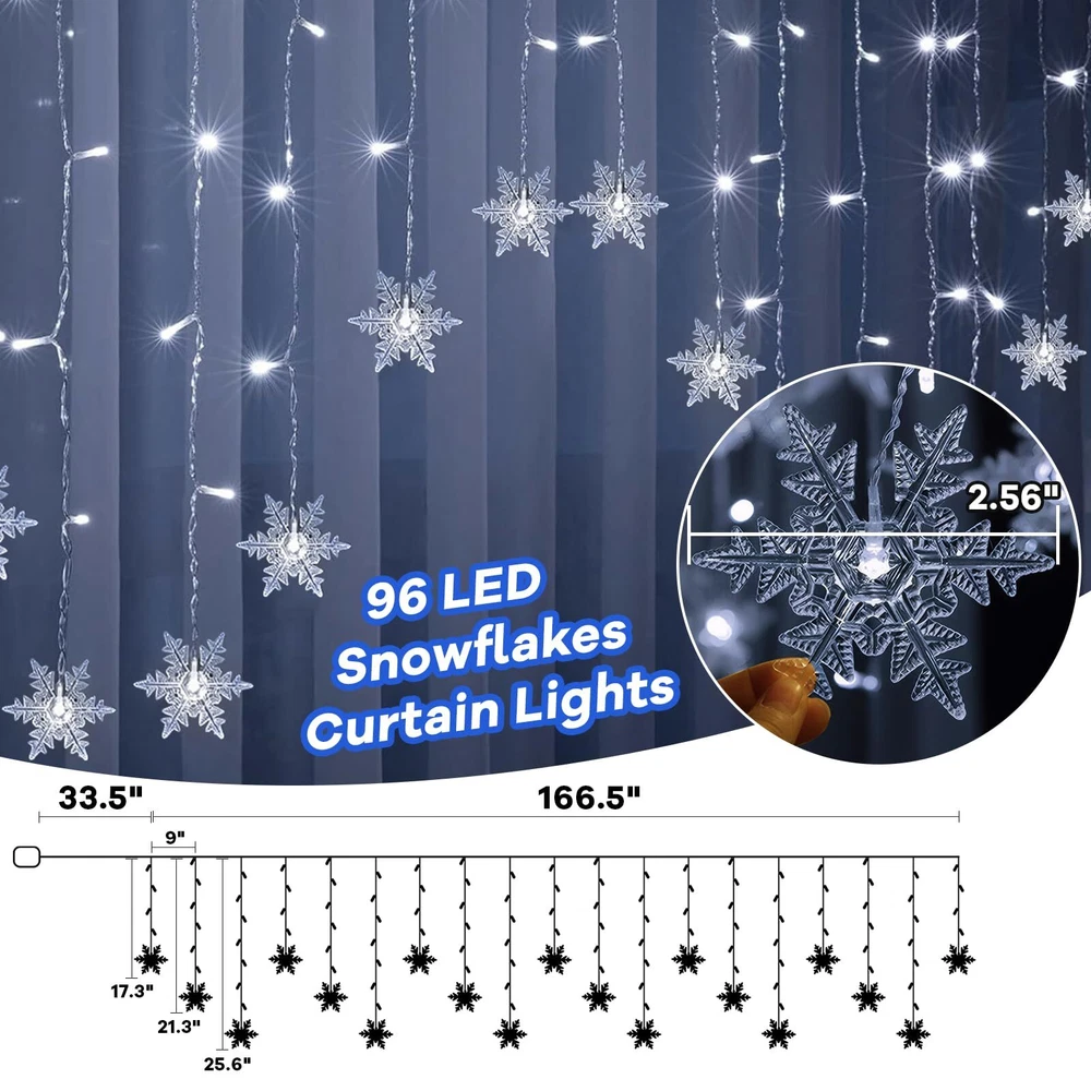 LED Curtain Lights,13ft/4M 96 LED Snowflake Curtain String Lights Decoration