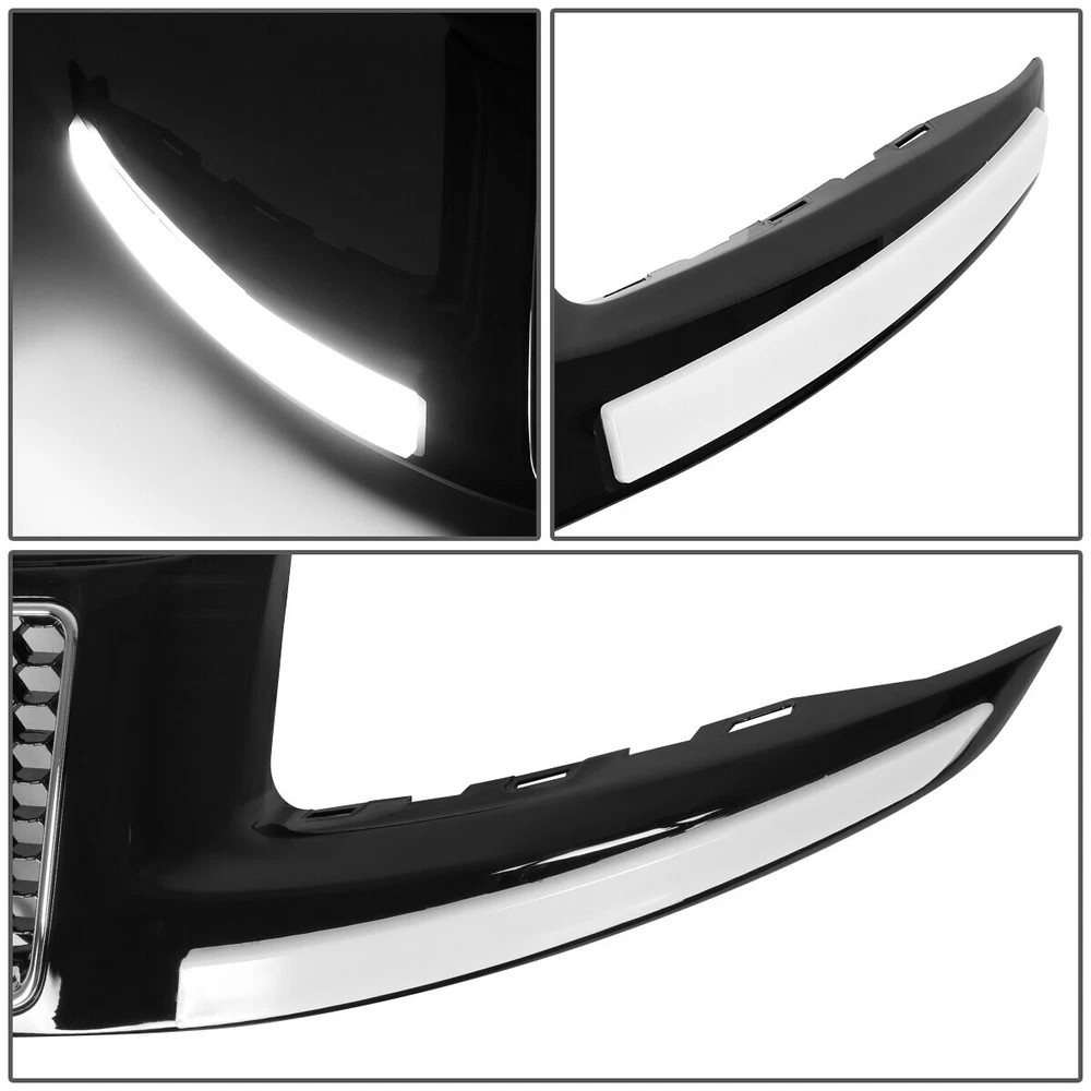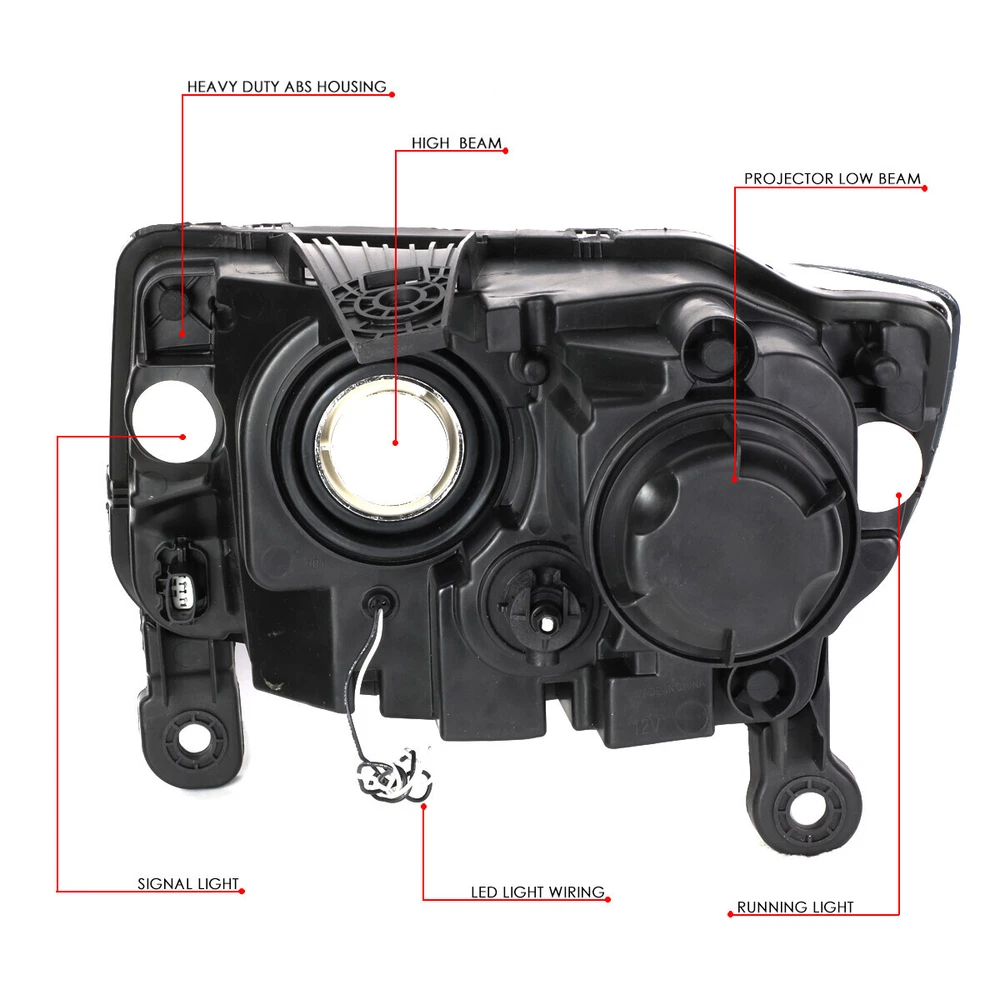Features: Projector Housing Material: ABS Plastic / Polycarbonate Lens UPC: Does not apply gtin13: Does not apply Lens Color: Clear Lens / Clear Reflector LED Energy: 12V Style: LED DRL / SRT Grille Bulbs Included: No Voltage: 12V Bulb Shape Code: H1 High / Low Beam Fitment Type: Direct Replacement OE/OEM Part Number: CH2502247 CH2503247 20952900 20953000 Interchange Part Number: 68110997AD Lighting Technology: Halogen Housing Color: Black Mounting Style: Screws Manufacturer Part Number: SDD-HLHPLJGC14BKCL1+GRFLBBK Light Color: White Type: Headlight Assembly Items Included: Driver & Passenger Side Headlights, Front Grille Brand: Speed Daddy Placement on Vehicle: Front