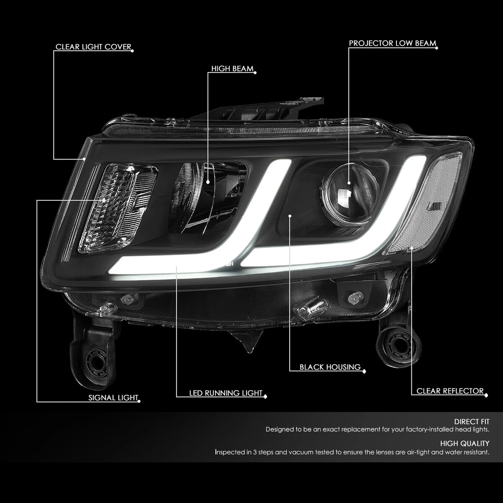 [LED DRL]FOR 14-16 JEEP GRAND CHEROKEE PROJECTOR HEADLIGHT LAMPS W/BUMPER GRILLE