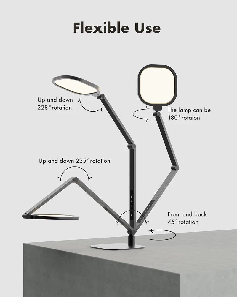 Store New Arrivals Add to Favorite View Feedback Contact LED Desk Lamp for Home Office, 15W Computer Zoom Lighting with Swing Arm, Memory & Timer Function, Dimmable Desktop Ring Light for Video Calls, Conference, Reading, Streaming, Podcasting Description Item model number F630 Wattage 15 watts Style Modern Power Source Corded Electric Pattern Solid Country of Origin China Warranty Description 5 Year Manufacturer Switch Style Touch Batteries Included? No Batteries Required? No Material Plastic, Metal Type of Bulb LED Installation Method Tabletop Included Components 1 * LED Full-Screen Light, 1 * Metal Base, 1 * AC Adapter Item Package Quantity 1 Water Resistance Level Not Water Resistant Item Weight 4 pounds Special Features Adjustable Color Temperature, Memory Function, Dimmable, Adjustable Arm, Timer Part Number 630 Mounting Type Desktop Color Black Luminous Flux 1200 Lumen Shape Square Product Dimensions 7"L x 7"W x 33"H More than a Desk Lamp: The Litones home office desk lamp doesn’t just illuminate your workspace, it’s designed to enhance your look, too. With an adjustable lamp head, it easily transforms from a tall desk lamp to a ring light. Blending style and functionality, this versatile lamp offers soft lighting for your office, remote work, studying, reading, gaming, vlogging, and more. Plus, it helps you look your best in video conferences, Zoom meetings, and video calls as a professional fill light. Brighten but Soft: The LitONES modern desk lamp delivers 1200 lumens, with 3 color temperatures (cool, nature, warm) and 10 brightness levels to perfectly suit your lighting preferences. The LitONES black task lamps use innovative CRI >95 (remarkably close to natural light) and advanced edge-lit LED technology, providing glare-free, soft, and even illumination that’s eye caring perfect for reading, drafting, or any work that demands precision and comfort, ensuring eye protection for long hours. Ultimate Flexibility: The Litones swing arm desktop light features 5 pivot joints and a max height of 33 inches, it effortlessly adjusts to match your workspace illumination needs. Its 7 inch full screen lamp head and pivots rotate between 180° and 360°, offering ideal flexibility for college dorm room, bedroom, living room and others. Built with durable, sturdy damping pivots designed to withstand up to 200,000 adjustments, this lamp is made for long-lasting, reliable performance. Stable Yet Versatile: This LED desk lamp features a solid metal base that keeps it steady, no matter how you angle it—no tipping, no worries. Unlike clamped lamps, there’s no need to consider desk thickness or wall placement. Set it up wherever you need perfect lighting: beside your bed or sofa for a cozy read, on your desk for focused tasks, next to your computer for clear video calls, or even by your table nail station, sewing, make up for detailed work. The choice is yours! Multi functions: This dimmable desktop computer light offers soft-touch controls, along with memory, dimming, and 1H/half timer functions to adapt seamlessly to tasks like drawing, writing, crafting, and coding. Whether you're solving puzzles, painting, or working on school arts and crafts, this versatile lamp fits right in. From your office to your bedroom, headboards, or workbench, its multi-angle adjustability offers the perfect light for every room and activity. Premium Quality and Durability: Made from aerospace-grade aluminum, this architect lamp is designed to go the distance with LED lights rated for 100,000 hours and a sturdy pivot built to handle over 200,000 adjustments. Its eye-friendly design ensures comfort during long hours of use, making it as practical as it is durable. Built to stand the test of time, it comes with a 5-year warranty and technical support. Product Description Litones Ultimate Desk & Video Lamp - from Productivity to Presence Versatile Lighting, Endless Comfort - Perfect for Work, Study, and Every Task LitONES Desk Lamp with Soft and Even Illumination, CRI >95 LitONES Desk lamp adopts innovative CRI >95 and advanced edge-lit technology, which makes the light glare-free, soft and even illumination, which won't be a burden to your eyes. Upgraded Edge-Lit Full-Screen Desk Light for Home Office LitONES Desk lamp not only brightens you up in video conferencing, zoom meetings, video calls, but also provides you with quality lighting in remote working, home office, study, podcasting, video recording, live streaming, YouTube, photoshoot, gaming,vlogging and other scenarios. ABOUT US We offer the best prices around on high quality products. Our E-store includes media such as books, movies, music and games while offering electronics, toys, sporting apparel, clothing, tools, general home, garden items and more. SHIPPING We are always working hard to ensure your package arrives as soon as possible. Please understand that some factors like weather, high postal traffic, and the performance of shipping companies are outside of our control. We offer free shipping to the lower 48 states and ship within 2 business days of payment, usually sooner. We do not accept P.O. Boxes. Please provide a physical address. For shipping outside of the continental USA, we only use eBay's Global Shipping Program.The item is shipped to KY and then sent to the rest of the world. International customers are responsible for all duties and taxes. Continue to check out in order to calculate costs for shipping the item to your country. Messages regarding eBay's Global Shipping Program MUST be directed at eBay EXCLUSIVELY. RETURNS We offer a 30-Day Return Policy on items which you are not completely satisfied with. You have the option for a full-refund or an exchange of the item. No returns are available on items shipped outside of the USA. PAYMENT We accept PayPal. CONTACT US This page content is yet to come Please ad us to your favorite seller and visit again later Thank You CUSTOMER SATISFACTION We try our very best to make sure every 