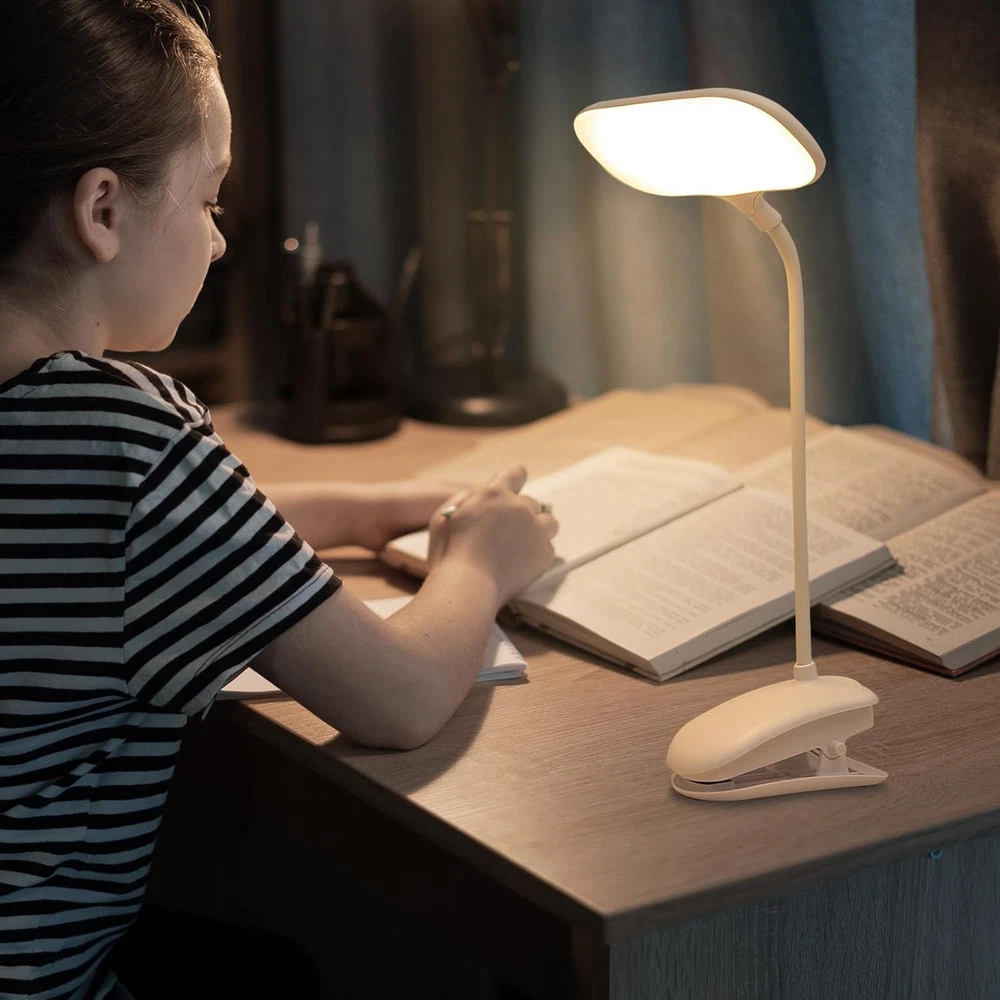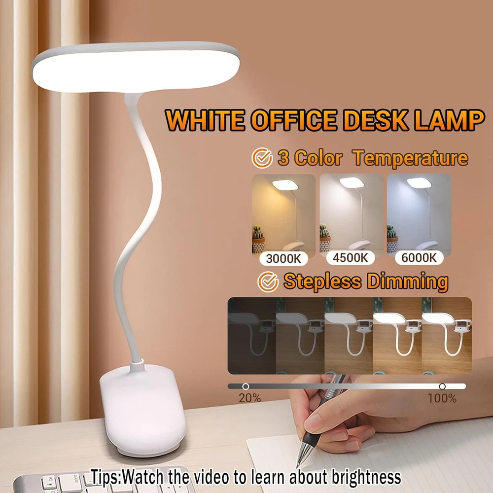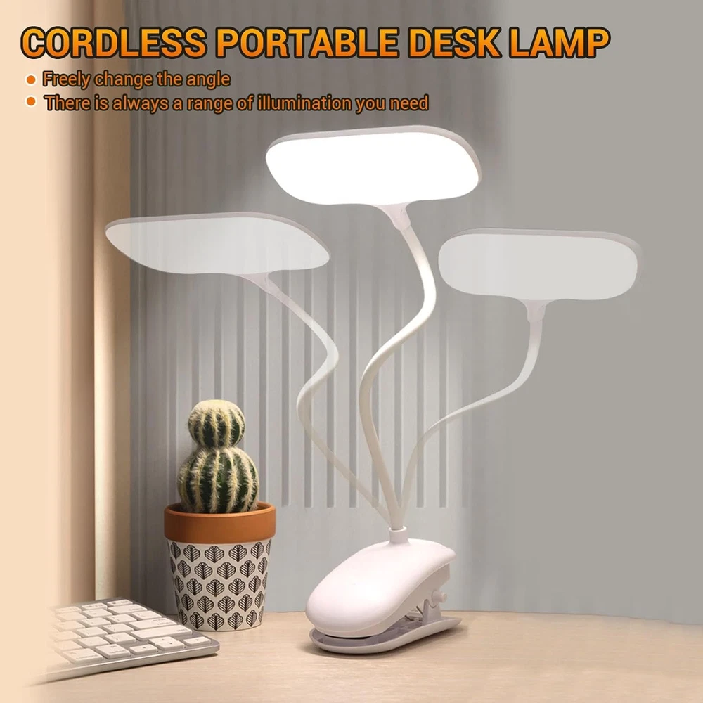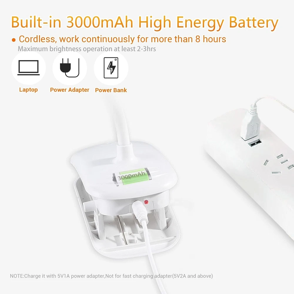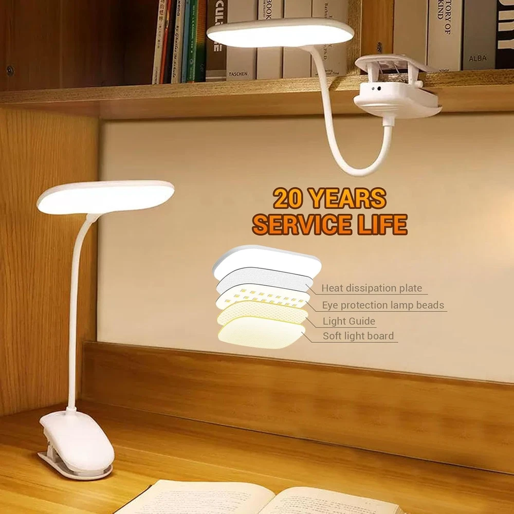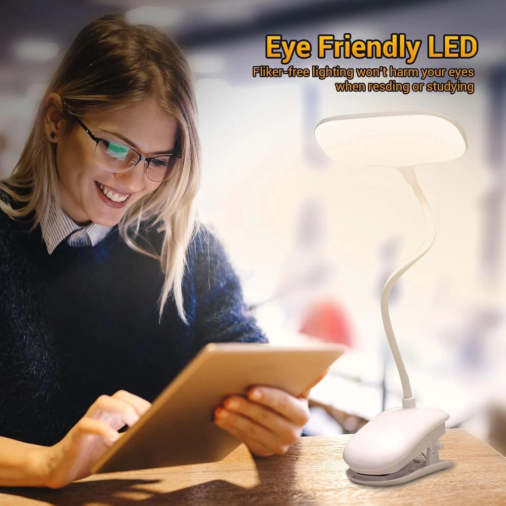 LED Desk Lamp with Clamp, Eye-Caring Clip on Lights for Home Office, 3000Mah Rec