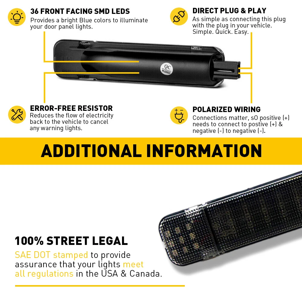 Fit for: Fit for Chevrolet & GMC For Chevrolet & GMC C/K 1500 | 2500 | 3500 Pickup 1997-2000 For Chevrolet & GMC C/K 1500 | 2500 Suburban 1996-2000 Fit for Chevrolet For Chevrolet Avalanche 1500 | 2500 2002-2006 For Chevrolet Silverado 1500 | 2500 HD | 3500 HD Pickup 1999-2006 For Chevrolet Silverado Classic 1500 | 2500 | 3500 2007 For Chevrolet Suburban 1500 | 2500 2000-2006 For Chevrolet Tahoe 1995-2006 Fit for GMC For GMC Sierra 1500 | 2500 | 3500 Pickup 1999-2006 For GMC Sierra Classic 1500 | 2500 | 3500 2007 For GMC Yukon 1995-2006 For GMC Yukon XL 1500 | 2500 2000-2006 Fit for Cadillac LED Door Courtesy Light Fit Chevy Silverado Suburban Tahoe GMC Sierra Yukon EOI Fit for: Fit for Chevrolet & GMC For Chevrolet & GMC C/K 1500 | 2500 | 3500 Pickup 1997-2000 For Chevrolet & GMC C/K 1500 | 2500 Suburban 1996-2000 Fit for Chevrolet For Chevrolet Avalanche 1500 | 2500 2002-2006 For Chevrolet Silverado 1500 | 2500 HD | 3500 HD Pickup 1999-2006 For Chevrolet Silverado Classic 1500 | 2500 | 3500 2007 For Chevrolet Suburban 1500 | 2500 2000-2006 For Chevrolet Tahoe 1995-2006 Fit for GMC For GMC Sierra 1500 | 2500 | 3500 Pickup 1999-2006 For GMC Sierra Classic 1500 | 2500 | 3500 2007 For GMC Yukon 1995-2006 For GMC Yukon XL 1500 | 2500 2000-2006 Fit for Cadillac For Cadillac Escalade 1999-2006 Fit for Hummer For Hummer H2 2003-2009 Specifications: OE: 15021517, 15021518, 923-103, 923-104 Lumen: white light 570LM Light color: white Color temperature:6000k LED quantity: 36LEDs Lamp shell color: clear Installation position: left and right door position Waterproof grade: IP67 Service life: 50000h+ Features: *Upgrading Upgrade the original halogen bulb to LED light with white color, giving a new and attractive appearance and playing a better warning role when opening the door. *Excellent quality Superior LED beads with long service life and effecient energy-saving. *Durable Equipped ABS plastic housing with sturdy PC lens for dustproof,shockproof,waterproof and longer lifespan. * Easy installation Plug and play without wiring or modification. Just remove the burnt out or old OEM lights and plug the new light. Packaging include: 2x Door Panel Courtesy LED Light (left+right) Item Specifics Brand AUXITO Manufacturer Warranty 2 Year Color Temperature 6000K Bulb Type LED Bulbs Included Yes Fitment Type Direct Replacement To Fit Door Courtesy Lights Placement on Vehicle Front Left Right Rear Type Door Courtesy Lights Interchange Part Number 15021517,15021518 Compatible/Replacement For Please Check Applications Listed Below Housing Color Chrome (Crystal) Light Color Cold White Notes Connect The Plugs From Our Light Into Your Wiring Socket Lighting Technology LED Bulb Fitment Code PLUG & PLAY Wattage High Power Voltage 12V-24V DC Bulb Size Plug & Play Bulb Color White Suitable For Door Panel Courtesy Light OE/OEM Part Number 15021517, 15021518, 923-103, 923-104 Manufacturer Part Number CH1995-B Payment Variety of payment methods are accepted, such as credit, debit, gift cards, Apply pay, Google Pay, Paypal and Paypal Credit. Shipping 1. All items will be shipped in 24 hours after receiving your payment . 2. We ship this item to US only via USPS first class mail. It usually takes 3-5 working days to deliver. Returns 1. We offer 60 days return policy. 2. Please contact us if you have any questions with the products . 3. Refund will be sent after we got your returned package. 4. All returned items should be in the original packaging with tracking number. Contact Us We work from Monday - Saturday 9:00AM - 6:00PM, but we will reply once we get your message. There will be delay on response if you send message or E-Mail on Sunday. DESCRIPTION PAYMENT SHIPPING RETURN POLICY CONTACT US Shop Category Store Home LED Headlight ◈ 9005 HB3 ◈ 9006 HB4 ◈ 9007 HB5 ◈ H7 LED Fog Light ◈ H8 H9 H11 LED Plate Light LED Reverse Light LED Brake Light Rear Bumper Light LED Tail Light Tail Light assemblies Car Parts & Accessories ◈ LED Third Brake Light ◈ Other Parts & Accessories Other New List Item Right Passenger Rear Bumper Reflector Light Red For 2012-17 F31 BMW F30 3-Series USD 19.09 Headlights Assembly For Nissan Altima 2010-2012 Headlamps Replacement Pair 2Pc USD 119.99 2Pc Windshield Washer Wiper Spray Nozzle For Durango Dodge 2004 - 2009 4805742AB USD 10.19 2x AUXITO Amber Yellow Color 9006 HB4 LED Fog DRL Running Light Bulbs 3000k USD 23.99 60" Truck Tailgate LED Light Bar Brake Flash Turn Signal Stop Tail Strip I USD 20.99 Hot Item Rubber Seal Trim Prevent Water Leakage Windshield Sunroof Roof Top Window 10FT USD 12.34 Rubber Seal Trim Prevent Water Leakage Windshield Sunroof Roof Top Window 10FT USD 10.99 Auxito 9005 + H11 Combo LED Headlight 120W 80000LM High/Low Beam 6500K Bulbs Kit USD 46.99 WHITE LED Side Door Light Lamp For Toyota Camry Prius Avalon 4Runner 6000K 12V USD 11.39 FOR 94-04 MUSTANG PASSENGER or DRIVER SIDE MASTER POWER WINDOW CONTROL SWITCH USD 9.99 Similar Item Excellent Delivery LED Door Courtesy Light Fit Chevy Silverado Suburban Tahoe GMC Sierra Yukon EOI Fit for: Fit for Chevrolet & GMC For Chevrolet & GMC C/K 1500 | 2500 | 3500 Pickup 1997-2000 For Chevrolet & GMC C/K 1500 | 2500 Suburban 1996-2000 Fit for Chevrolet For Chevrolet Avalanche 1500 | 2500 2002-2006 For Chevrolet Silverado 1500 | 2500 HD | 3500 HD Pickup 1999-2006 For Chevrolet Silverado Classic 1500 | 2500 | 3500 2007 For Chevrolet Suburban 1500 | 2500 2000-2006 For Chevrolet Tahoe 1995-2006 Fit for GMC For GMC Sierra 1500 | 2500 | 3500 Pickup 1999-2006 For GMC Sierra Classic 1500 | 2500 | 3500 2007 For GMC Yukon 1995-2006 For GMC Yukon XL 1500 | 2500 2000-2006 Fit for Cadillac For Cadillac Escalade 1999-2006 Fit for Hummer For Hummer H2 2003-2009 Specifications: OE: 15021517, 15021518, 923-103, 923-104 Lumen: white light 570LM Light color: white Color temperature:6000k LED quantity: 36LEDs Lamp shell color: clear Installation position: left and right door position Waterproof grade: IP67 Service life: 50000h+ Features