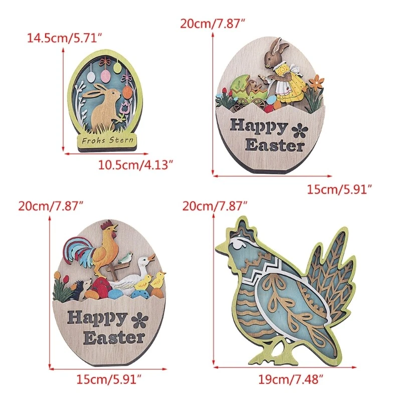 Features: Brand new and high quality Elevates your Easter decor with this beautiful wooden door ornament. Crafted with attention to detail, it showcases fine craftsmanship and a unique designs. Made from natural this Easter decoration is environmentally friendly, durable, and easy to clean. Choose from a variety of colors to suit your decor. Perfect for those who appreciate handmade this wooden ornament makes a thoughtful gift for anyone interested in Easter tradition. Create a festive atmospheres by placing this wooden ornament in your living room, bedroom, or even on your front porch. It adds a warm and welcoming touch to any space. Unleash your creativity with this wooden craft. Customize it with your styles through painting or embellishing. Specifications: Material: Wooden Size: approx.15x2x20cm/5.91x0.79x7.87in Color: As the pictures shown 4 Styles Optional: As choose. Power Supply: Button (included) Quantity: Pc Package Includes: 1Pc Easter Decoration note: Please allow 0-1cm error due to manual measurement. please make sure you do not mind before you bid. Due to difference between different monitors, the picture may not reflect the actual color of the item.