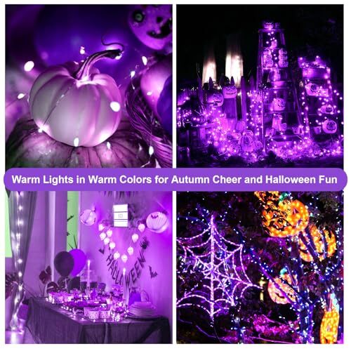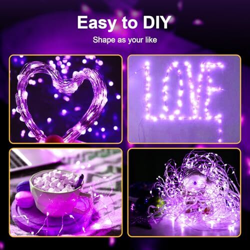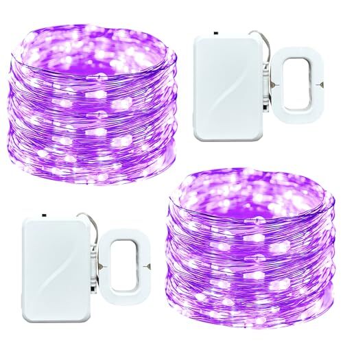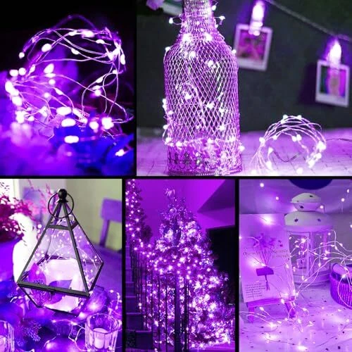 LED Fairy Lights Battery Operated 50 LED 16FT Copper 2 Pack Purple Lights