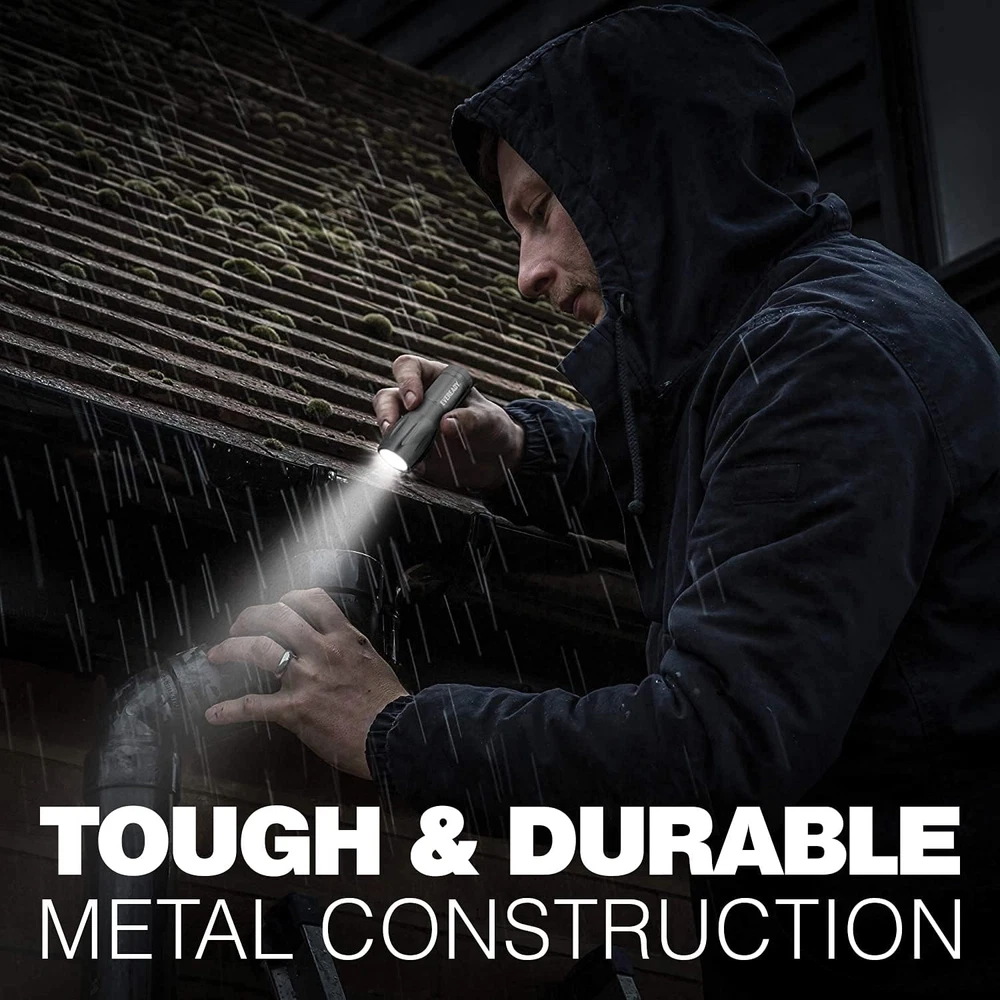 [RELIABLE EVEREADY POWER]: This Heavy Duty LED flashlight comes with 3 AAA Eveready batteries (Included) - so you have the power and light you need, right out of the box. [INCREDIBLY DURABLE]: Made with a heavy duty metal construction, this flash light is built to last, and to take a beating - great for indoor and outdoor activities or chores - handy to have around during power outages. [BRIGHT WHITE LED]: Built with LED technology that lasts 10x longer than old incandescent bulbs, this light provides a bright, white light that is useful in a variety of situations or emergencies. [STRONG BEAM DISTANCE]: With a beam distance up to 180 feet, this light provides great visibility - perfect little portable flashlight for camping, hunting, fishing, walking the dog, and much more. [COMPACT EVERYDAY CARRY]: Small enough to fit in a pocket or purse, this compact flashlight is perfect for an everyday carry - so you aren't caught i Eveready 3 LED metal light tray energizer holdings, is one of the world's largest manufacturers of primary batteries, portable flashlights and lanterns. energizer is a global leader in the dynamic business of providing power solutions with a full portfolio of products including energizer brand battery products such as energizer ecoadvanced energizer Max energizer ultimate lithium energizer recharge batteries and charging systems and portable flashlights and lanterns.