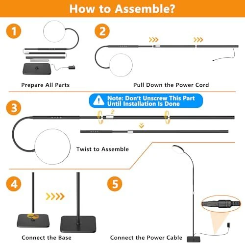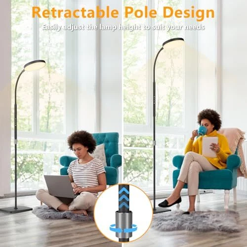 30 Days Return Policy Fast Delivery Trusted seller LED Floor Lamp, Height Adjustable Floor Lamps for Living Room, Super Bright Standing Lamp with Timer, Adjustable Colors & Brightness Floor lamp for Bedroom with Remote & Touch Control, Black Product Description 【Adjustable Height Design】Our standing lamp features an adjustable height, perfect for enhancing the reading experience in your living room or bedroom. Boasting 120 high-brightness LEDs, delivering up to 1600 lumens of soft, bright light. With a lifespan of up to 60,000 hours, no need to worry about bulb replacements. The sturdy metal base ensures stability on a variety of surfaces, and the high-quality lamp head is flicker-free and blue light-free to protect your and your family's eyes 【Stepless Dimming Mode】: Elevate your space with our reading light, featuring dimmable brightness (10%-100%) and adjustable color temperature (3000K-6500K). Customize the lighting of the bedroom floor lamp to your preference. Easily switch between cool whites, warm whites, and warm tones to create the perfect ambiance for your bedroom or any room in your home 【Remote Control & Touch Control】Illuminate your room with our lights for bedroom, featuring smart remote control (range 32.8/10m) and touch control. Easily manage your lights, pushing a button for the perfect brightness and color temperature for working, reading, relaxing, breastfeeding, or sleeping. Enjoy convenience at your fingertips without leaving the comfort of your space 【Timer Settings】Our LED floor lamp comes with 30-minute, 1-hour, and 2-hour timer functions, allowing you to customize the shut-off time as needed, all without having to leave the comfort and warmth of your bed or sofa 【Memory Function and Easy to Install】The memory function can remember the brightness and color used when power is cut off. The flexible gooseneck allows you to easily control the light to perfectly illuminate any item. The floor lamp for bedroom is easy to assemble, no additional tools or parts required! If you have any questions or suggestions about our floor lamps for living room, our customer service will assist you within 24 hours Shipping Returns Payment Shipping Shipping is FREE to all addresses other than APO/PO boxes in the lower 48 states. All our stock ships from US-based warehouses. Shipped via USPS or UPS (depending on location and package weight) Unless stated otherwise, all orders will ship within 24-72 hours of your payment being processed. Check our feedback to see the great reviews of FAST shipping we offer. Returns As our valued customer, we will do our best to make sure the product you receive arrives to you on time and as expected. If you are not satisfied with your purchase, please contact us within 30 days of receiving your order to process a return. Payment We currently accept payment via eBay managed payments only. Once payment is cleared, we will dispatch your shipment within 1-3 business days. Please refer to the "Shipping" tab for more information regarding shipping speed to your destination.