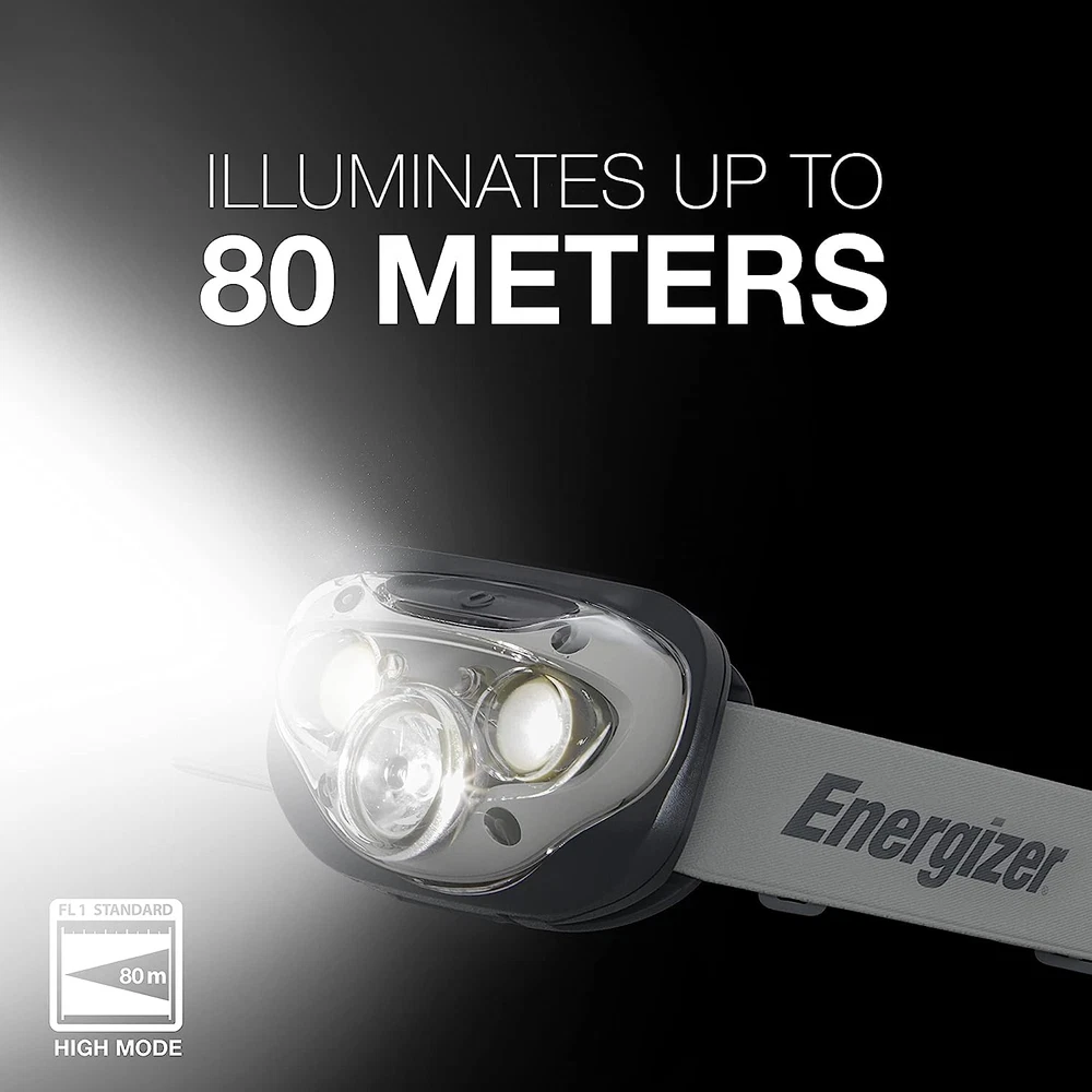 [Headlamp LED Light]: Two (2) Energizer Vision HD + LED Headlamp offers a hands-free, bright LED light with a long runtime for extended use [Indoor and Outdoor Light]: Use this LED light as an emergency light, outdoor light or as a work light for both indoor and outdoor activities [Bright LED Light]: 260 lumen headlamp LED light has up to an 80-meter beam distance and is 4x brighter than the standard LED technology [Dimming Controls]: Uses advanced dimming control technology to let you adjust the intensity of this Energizer headlamp from 10% to 100% [Three Modes]: Choose from three modes with this flashlight headlamp - high, spot and wide- to accommodate all your work and personal needs Energizer Vision HD + LED Headlamp offers a hands-free, bright LED light with a long runtime for extended use. This headlamp flashlight is ideal for indoor or outdoor activities that require two hands. With 26 lumens on high, this light is 4x brighter than the standard LED technology with a beam distance of up to 8 meters. Advanced dimming controls let you adjust the intensity of this headlamp LED light from 1% to 1%. Three modes - high, spot and wide - are available with a red LED for night vision. Next Push Off minimizes switch cycles. This light needs 6 AAA batteries (included) to use.