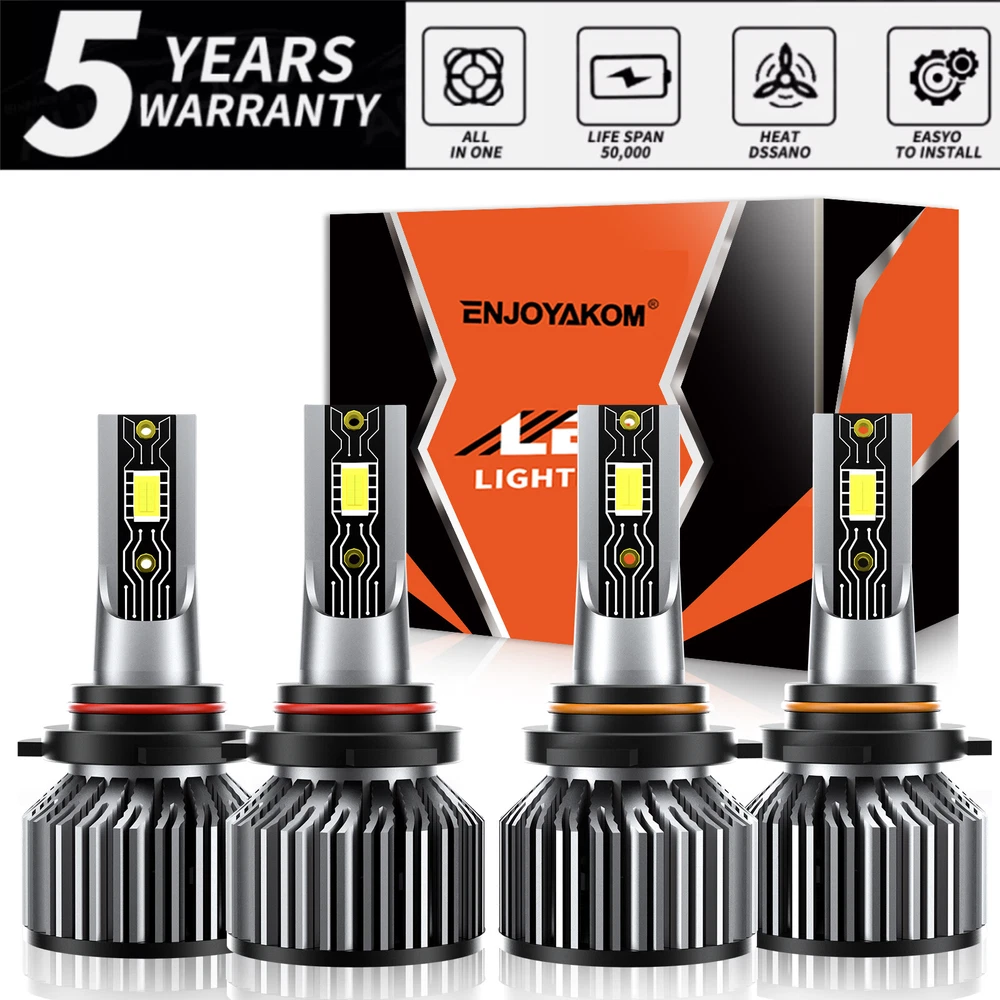 Superseded Part Number: Replacement Halogen Xenon Led Light Bulbs Country/Region of Manufacture: United States Fitment Type: Direct Replacement EAN: Does not apply Bulb Life Hours: Up to 50000 Hours More LED Kit We Have 1: 9005 9006 HB3 HB4 H11/H8/H9/H16 9012/HIR2 H1 H7 Bulb Fitment Code: 9005/HB3 + 9006/HB4 Model: LED Headlight Conversion Kit Manufacturer Warranty: 5 Year Lighting Technology: LED More LED Kit We Have 2: H4/9003/HB2 9004/HB1 9007/HB5 9008/H13 D1/D1S D2/D2S D3S D4S Size: the same as the car original light Brand: ENJOYAKOM Feature 2: light bulbs & leds/Light Bulbs Combo Kit Chips Type: CSP LED Chips, Super Bright Application 1: For Headlight High Low Beam/led bulbs car headlights Lighting Type: Specialty Head Light Bulb MPN: ENJOYAKOM-Headlamp Bulb Color Temperature: 6500K Vintage Part: Yes Voltage: 9V-36V Other Part Number: HB3 high beam + HB4 low beam Wattage: 150W Ballast Included: Yes Interchange Part Number: 9005 High beam + 9006 Low beam Sealed Housing: IP68, Shockproof, Dustproof & Waterproof Light Color: Cold White Manufacturer Part Number: 9005+9006 UPC: 275234628621 Type: Headlight Kit Universal Fitment: Yes Fit 2: Easy Installation, Heat Resistant, Higher brightness/Super Bright White To Fit: Headlight gtin13: Does not apply OE/OEM Part Number: 6500K LED Headlights Placement on Vehicle: Front, Left, Right Fit 1: Car, Motorcycle, Motorbike, van, truck, pickup, SUV, vehicles Material: Aviation 6063 aluminum profile More LED Kit We Have 3: 9005/9145/H10/9140 5202/2504 880/892/893/899 881/898/889/894 H3 Features: CAN bus Compatible, road Legal, Rust-Resistant Number of Bulbs: 4 Performance Part: Yes Lumens: 26000lm Application 2: led headlights for car &led bulb light bulbs Suitable For: High Beam, Headlight, Low Beam Other Available Type: Foglight Kit