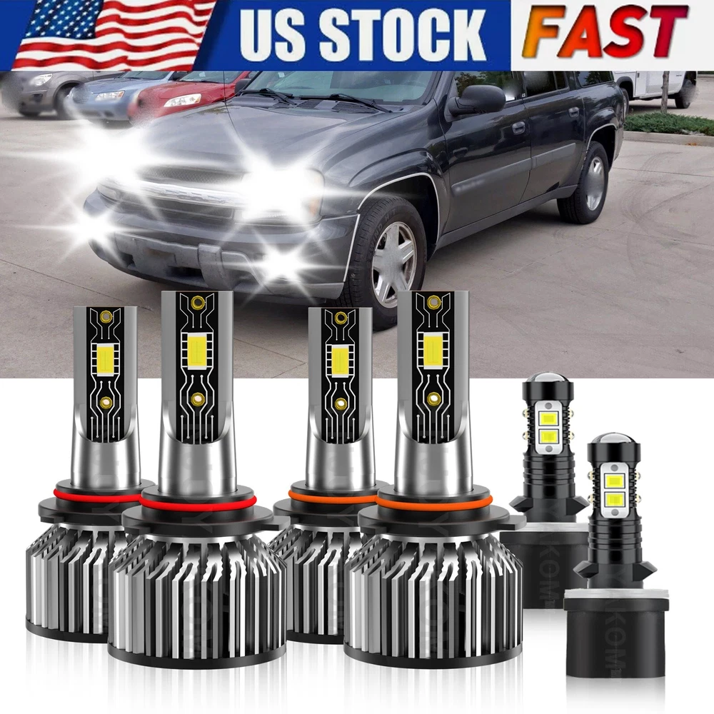 LED Headlight Hi Lo+Fog Light Bulb kit white For Chevy Trailblazer EXT 2002-2006