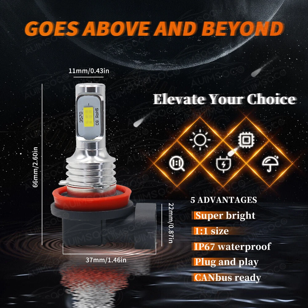 Home Payment Shipping About us Contact us Details This package includes 9005 High Beam Headlight + H11 Low Beam Headlight + H11 Fog Light Bulb. If you are unsure your bulb type, please do remember send message to tell us your car make, model, year and other information which is helpful to check bulb type. for example: 2004 Ford F-150, high/low beam 2015 RAM 1500 with projector-type, high beam Specification: 9005, H11 LED replacement bulbs are engineered for superior performance, exceptional looks, and increased safety. Especially designed for upgrading the Headlight bulb, Fog light, Daytime running light Bulb Size: 9005(HB3), H11(H8), H11(H8/H16JP) Use CSP Led technoloty, super bright lighting Application: Headlight + Fog Light Beam Type: High Beam / Low Beam / Fog Beam Color Temperature: 6000K White Lumens: 4000 Lumens Per Bulb Working Voltage: DC 12V to 24V 40W Per Bulb, Low Power Consumption IP67 rated water and dust seal Material: Aviation 6063 aluminum profile Lifespan: 50,000 working hours, stable quality, long service life Feature: (6pcs/set) 9005+H11+H11 Combo LED Headlight Fog Light Conversion Kit Ultra-small Ultra-light design, Almost 1:1 Bulb Size, just Plug and Play, suit for more cars. Super bright 3570 chip,360 degree clear beam no blind zone Engineering beam pattern design throw light on road evenly at appropriate angle without foggy light Xenon white light reflect road paint/signs better to show clearer road situation All-in-one aluminum profile as heat conduction system, 360 degree heat radiating, keep the light bulb in appropriate working temperature Built-in constant current CPU,instant full brightness without start-up relay No delay to light up, Faster on/off response time Lifespan: 50,000 working hours ,Adopt imported chips, stable quality, long service life Why Use LED Headlight Bulb? If you find this listing, you are must looking for brighter white headlight bulbs with an excellent beam pattern for upgrade. Congratulations, you find what you want now! LED headlight bulbs is a successful replacement for Halogen bulbs, it is brighter and more reliable, perfect for high-beam (and also low beam, fog, & driving lights) use. With it, you will get much better night driving, and also, much better seen during the day. Package Included: 2 x 9005 LED Headlight Bulb 2 x H11 LED Headlight Bulb 2 x H11 LED Fog Light Bulb New and old packaging will be shipped randomly!! Shipping Policy Payment Method Returns Policy Shipping Policy Payment Method Returns Policy Home Payment Shipping About us Contact us Store Categories Store Categories For Chevrolet For Ford For Toyota For GMC For Dodge For Ram For Mazda For Kia For Subaru For Nissan For Honda For Acura For Buick For Cadillac For Jeep For Mitsubishi For Volkswagen For Volvo For Lexus Other Details This package includes 9005 High Beam Headlight + H11 Low Beam Headlight + H11 Fog Light Bulb. If you are unsure your bulb type, please do remember send message to tell us your car make, model, year and other information which is helpful to check bulb type. for example: 2004 Ford F-150, high/low beam 2015 RAM 1500 with projector-type, high beam Specification: 9005, H11 LED replacement bulbs are engineered for superior performance, exceptional looks, and increased safety. Especially designed for upgrading the Headlight bulb, Fog light, Daytime running light Bulb Size: 9005(HB3), H11(H8), H11(H8/H16JP) Use CSP Led technoloty, super bright lighting Application: Headlight + Fog Light Beam Type: High Beam / Low Beam / Fog Beam Color Temperature: 6000K White Lumens: 4000 Lumens Per Bulb Working Voltage: DC 12V to 24V 40W Per Bulb, Low Power Consumption IP67 rated water and dust seal Material: Aviation 6063 aluminum profile Lifespan: 50,000 working hours, stable quality, long service life Feature: (6pcs/set) 9005+H11+H11 Combo LED Headlight Fog Light Conversion Kit Ultra-small Ultra-light design, Almost 1:1 Bulb Size, just Plug and Play, suit for more cars. Super bright 3570 chip,360 degree clear beam no blind zone Engineering beam pattern design throw light on road evenly at appropriate angle without foggy light Xenon white light reflect road paint/signs better to show clearer road situation All-in-one aluminum profile as heat conduction system, 360 degree heat radiating, keep the light bulb in appropriate working temperature Built-in constant current CPU,instant full brightness without start-up relay No delay to light up, Faster on/off response time Lifespan: 50,000 working hours ,Adopt imported chips, stable quality, long service life Why Use LED Headlight Bulb? If you find this listing, you are must looking for brighter white headlight bulbs with an excellent beam pattern for upgrade. Congratulations, you find what you want now! LED headlight bulbs is a successful replacement for Halogen bulbs, it is brighter and more reliable, perfect for high-beam (and also low beam, fog, & driving lights) use. With it, you will get much better night driving, and also, much better seen during the day. Package Included: 2 x 9005 LED Headlight Bulb 2 x H11 LED Headlight Bulb 2 x H11 LED Fog Light Bulb New and old packaging will be shipped randomly!! Shipping Policy Payment Method Returns Policy Customer service Shipping Policy NOTE: We will ship item locally for US buyers. Usually for US buyers it will take about 5-7 business days to reach. If you don't get it, please contact us firstly, we'll try our best to support you. For US customers, all items will be shipped out within 1-2 business day with cleared payment. Please included your phone number to the payment note for prompt and secure shipment. Tracking numbers for all orders are added to eBay once they have been dispatched; please login to eBay to find the tracking information for your order. Payment Method 1. You can use a variety of payment methods such as credit, debit, and gift cards, Apple Pay, Google Pay, PayPal, and PayPal Credit. 2. Items will be shipped to your eBay address. Please make sure it