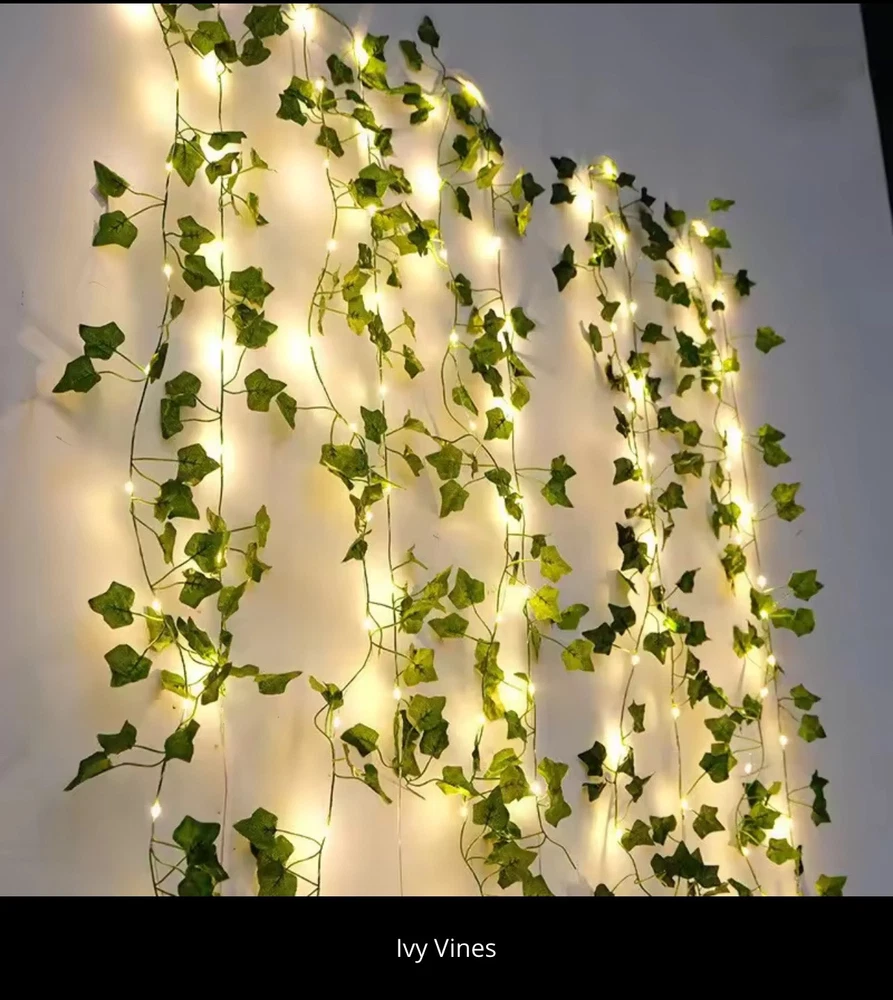 The Fake Green Leaf Ivy Vine with LED Lights is a decorative piece suitable for indoor use in various rooms such as the bedroom, living room, and kitchen. The vine features yellow and green LED lights that emit a soft and flexible glow, making it perfect for occasions like Christmas, birthdays, weddings, and other special events. Powered by batteries, this artificial vine adds a touch of nature-inspired ambiance to your space, creating a warm and inviting atmosphere. Ideal for adding a whimsical touch to your home decor or special celebrations.