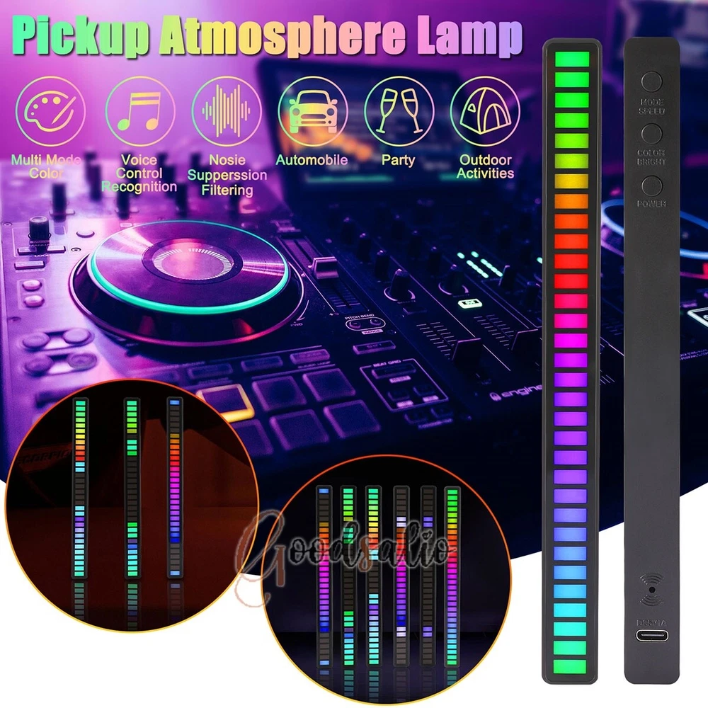 LED Light Bar Sound Control Ambient RGB Rechargeable 32Bit Multi-Color Light LOT ★SPECIAL TIPS: √ Ship within 24 hours Via USPS from NJ ,USA √ 100% New & Excellent Quality √ Professional Customer Service √ Strictly QC, Each set was fully tested before shipping √ Offer delivery with Tracking Number If not 100% satisfied with our products, no-questions asked, we offer 30-day free return & money back. Product Feature * Bulit-in 180mAh rechargeable battery * Design: The RGB voice-activated pickup light is small and charming. * Technology: It automatically senses the external sound through the built-in microphone and lights up the dynamic spectrum of the synchronized rhythm. * Intelligent: Soft light design, bright colors, and built-in AGC automatic gain algorithm. * Color Mode Switching: Minimalist design, multi-function with several buttons, 18 colors, 8 dynamic modes, 5 speeds, and 4 levels of brightness. * 32-bit ARM Processor: this voice-activated light has 32 built-in dazzling lamp beads, with a dedicated MIC for music and a 32-bit ARM processor with a main frequency of 72M, which realizes the dynamics of music and sound field. * Material: RGB pickup light is made of ABS, acrylic, and PVC electronic component material, durable and strong. * Breathing Mode: The brightness of the light will have a breathing fade effect according to the sound frequency. * Streamer Mode: From left to right, the phantom color flow spectrum effect moves according to the melody. * Diffusion Mode: Flow spectrum from middle to sides (or sides to the middle) according to the rhythm. * Mode of Use: With a dual-purpose base, it supports two modes, horizontal and vertical, to enhance the fun of use. * Instructions: long press power to turn on the light, short press mode speed to switch the lighting mode, short press color bright to switch colors; long press power to turn off; in any dynamic mode, tap near the microphone hole or play music, the rhythm of the lights flashing It will change with the rhythm of music and percussion. Note * This model does not have an APP function (without Bluetooth). * This product does not include a built-in battery, please use the USB cable when using. Product Specification Type: 32LED RGB Voice-Activated Ambient Sound Pickup Light Material: PVC+Acrylic+ABS Color: Black Light Color: RGB Lamp Beads: 32LED Light Type: LED Power Supply: Type-C Lamp Shape: Spiral Wattage: 5W Voltage: DC 5V/1A Battery capacity: 180mAh Frequency Response: 100-16KHZ Special Feature: Color Change, Sound Control Dimensions: 181x18x16mm/7.13x0.71x0.63in Package Included 1/2/4 x Pickup Light 1/2/4 x Bracket 1/2/4 x USB Cable 1 x Manual(Universal, Without App Function)