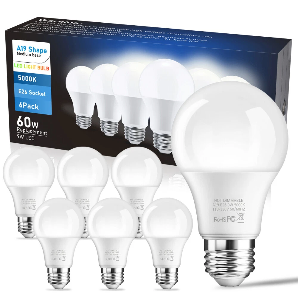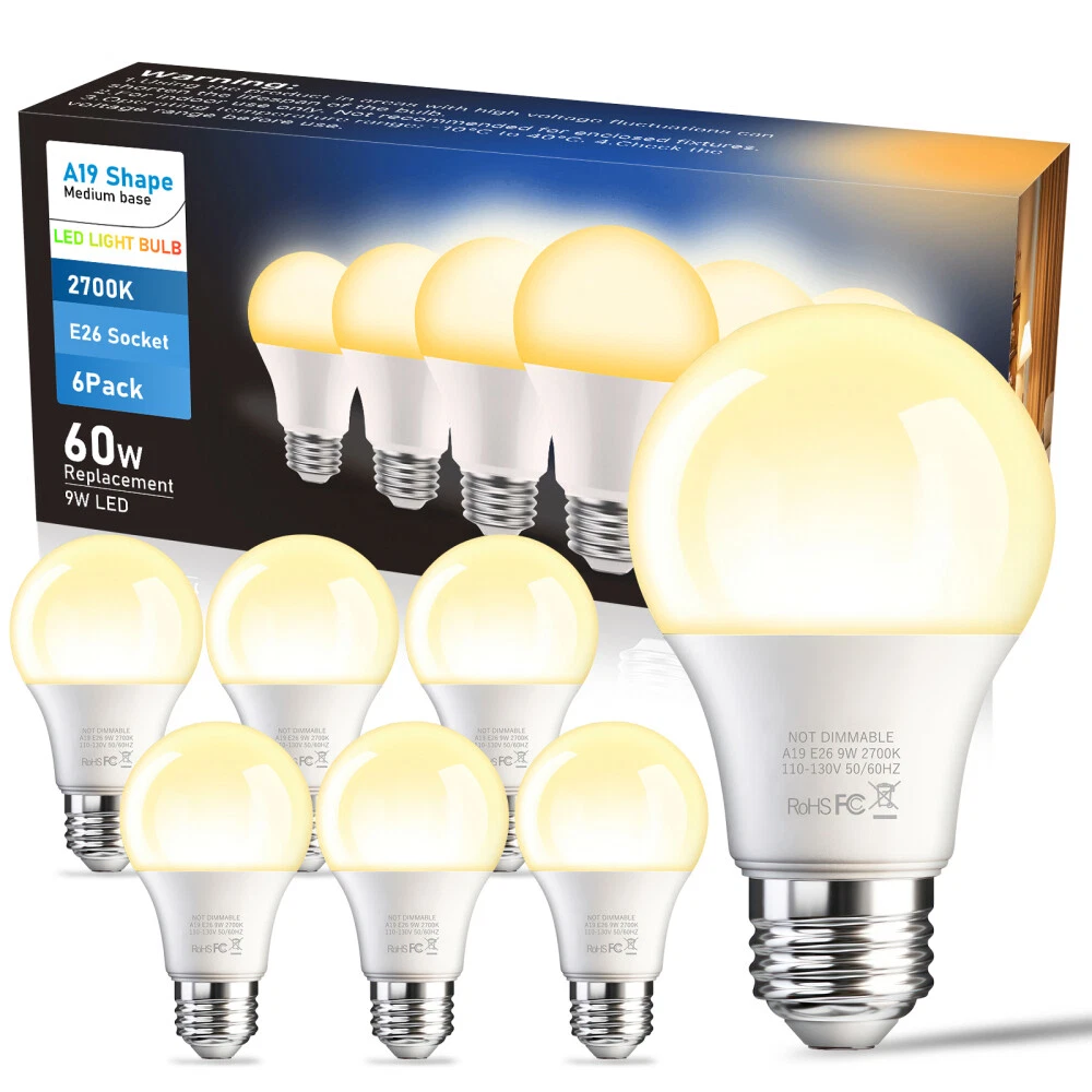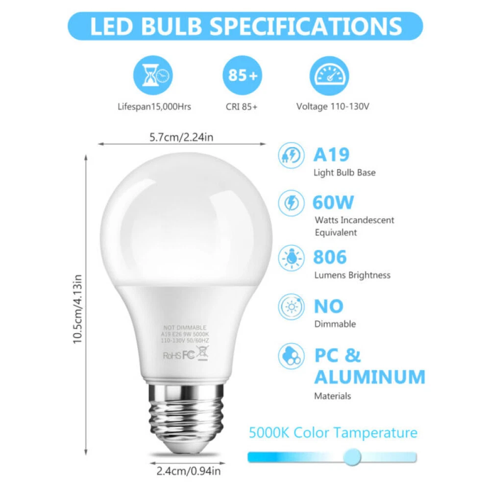 Bulb Shape Code: A19 Lighting Technology: LED Indoor/Outdoor: Indoor & Outdoor Material: Plastic Bulb Shape: Globe MPN: Does Not Apply Voltage: 120 V Brand: Unbranded Type: Lamp Bulb Bulb Wattage: 9 W,13 W Bulb Life Hours: 15,000-19,999 hrs Color Temperature: 2500 - 3000 K Warm,Daylight (5000K - 6500K) Light Color: Does not apply Beam Angle: 180° or More
