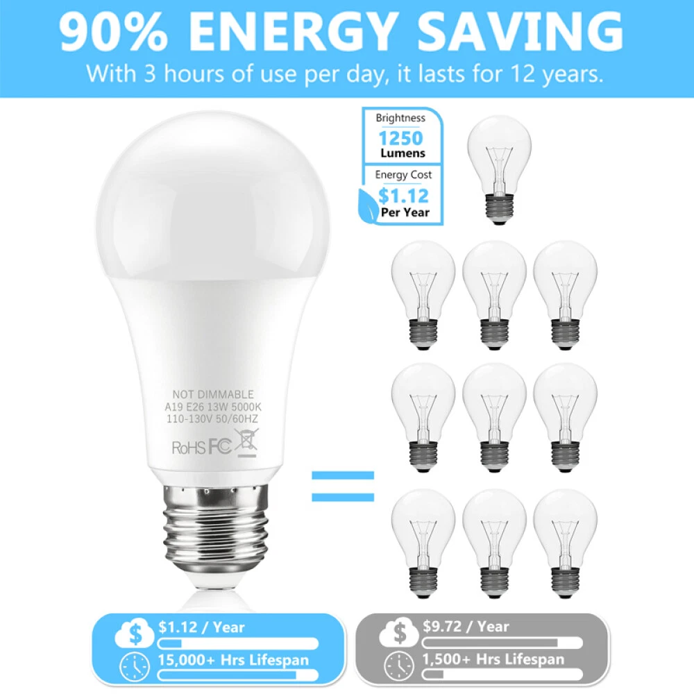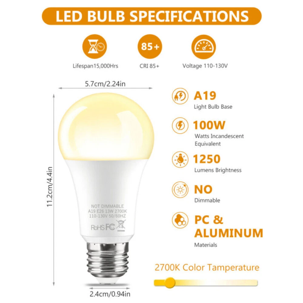 LED Light Bulbs, 100 Watt Equivalent, A19 9/13W Lightbulbs, Warm/ Daylight White