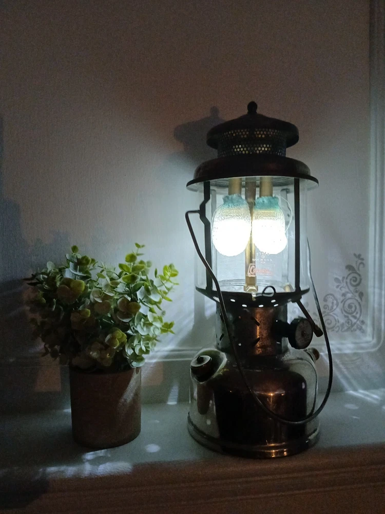Fits Coleman 220 228 Lanterns, and AGM 2572. 4 tubes and 2 remotes. No Electrical Cords or Wires. Gold Plastc. Grandpas Old Lantern LED Burner Tube Inserts is Made For Coleman 220 228 Lanterns. Remove Original Tubes and Insert LED Tubes Quickly Without Damaging Lantern. Made to Display Your Collection Indoors, Shows, or Rare Unfired Lanterns. Lights. Switch Back to Original anytime. Lights are not made to replace the Same Light Output As Original Fuel. But Makes A Nice Light. 3 Modes of Glow, Including Slow Flicker, fast flicker, or steady. Requires 1 AAA battery per tube. LED inserts are made to display non- working lanterns, unfired rare lanterns, and indoor displays for a comforting light and show. I am always on the lookout to find a brighter light. As soon as one is developed that can run on the size of battery used, I'm all in. No one would love that more than me. LIGHTS FOR 200As ARE FOR SALE AS WELL. KEYWORDS: GRANDPAS OLD LANTERN 200A