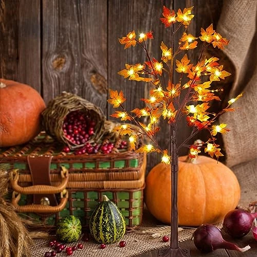 $ 28.082 Pack 20 Inch Prelit Fall Maple Tree with Timer for Thanksgiving Decor
