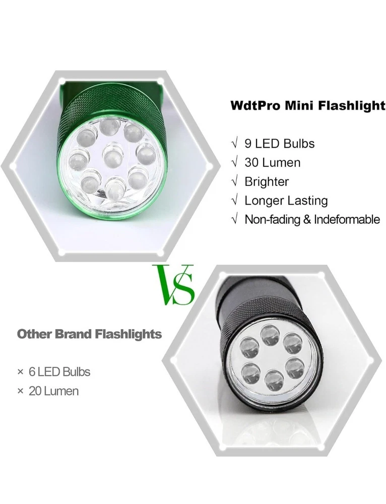 LED Mini Flashlights, Super Bright Flashlight with Lanyard, Assorted Colors – Best Tac Torch Light for Kids, Night Reading, Power Outages, Camping(6 Pack) Mini Led flashlight: These small flashlights with 9 led bulbs, super bright to meet your daily use Assorted Colors : Skid-proof grip with a lanyard for secure hold. Reliable aluminium body. 6 assorted colors led flashlight: blue, red, silver, black, gray, green Portable and Convenient : These mini flashlights must be a good companion for camping or other indoor or outdoor activities because it is lightweight Easy to Use : One on/off button operation and powered by 3*AAA batteries(Included) Satisfaction 100% Guaranteed: Keep one in your car, one in your home, or gift one to a friend or family member. Payment ●Payment must be received within 3 business days of auction closing. ●Please Note: Import duties, taxes and chargers are not included in the item price or shipping charges. These charges are the buyer's responsibility. Shipping ●Items will be shipped within 3 days after the cleared payment. All items will be checked carefully and packages in good condition. ●We will ship to ebay's address only. Please make ¬sure your address on ebay is the same with your shipping address before you pay. ●Shipping and Handling will be determined based upon the ship to address ●If you didn't receive your package, this time schedule, please do not hesitate to contact us. Within 24 hours we will try to update you with the latest tracking details of the shipment. Return and Feedback ●We sincerely hope that you can leave us a positive feedback. If, for any reason you are not satisfied with your purchase, please contact us through "Ask Seller Questions" before leaving neutral or negative feedback ●If you are not satisfied about your received item, please return it within 30 days for a refund. ●We will accept any return and give a full refund (without shipping cost) on any item. The item must be returned to us in original condition and the buyer need to pay return shipping cost