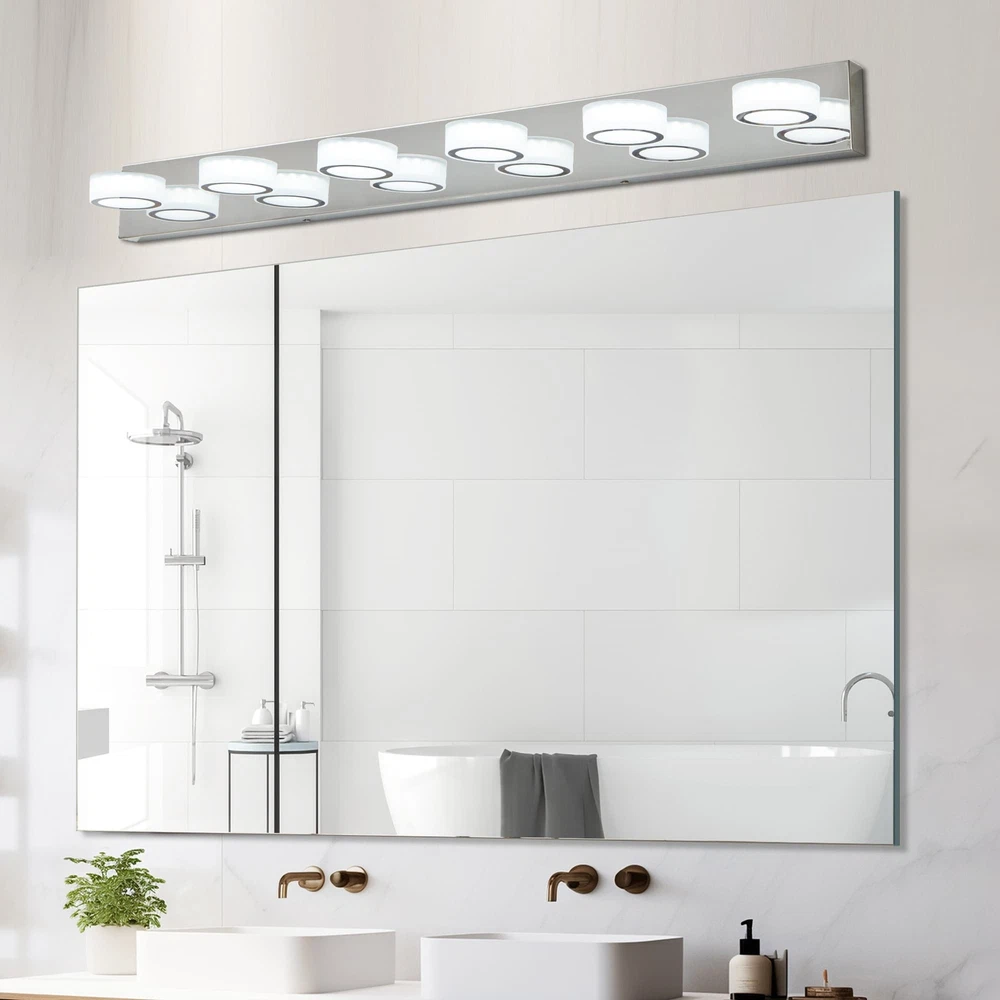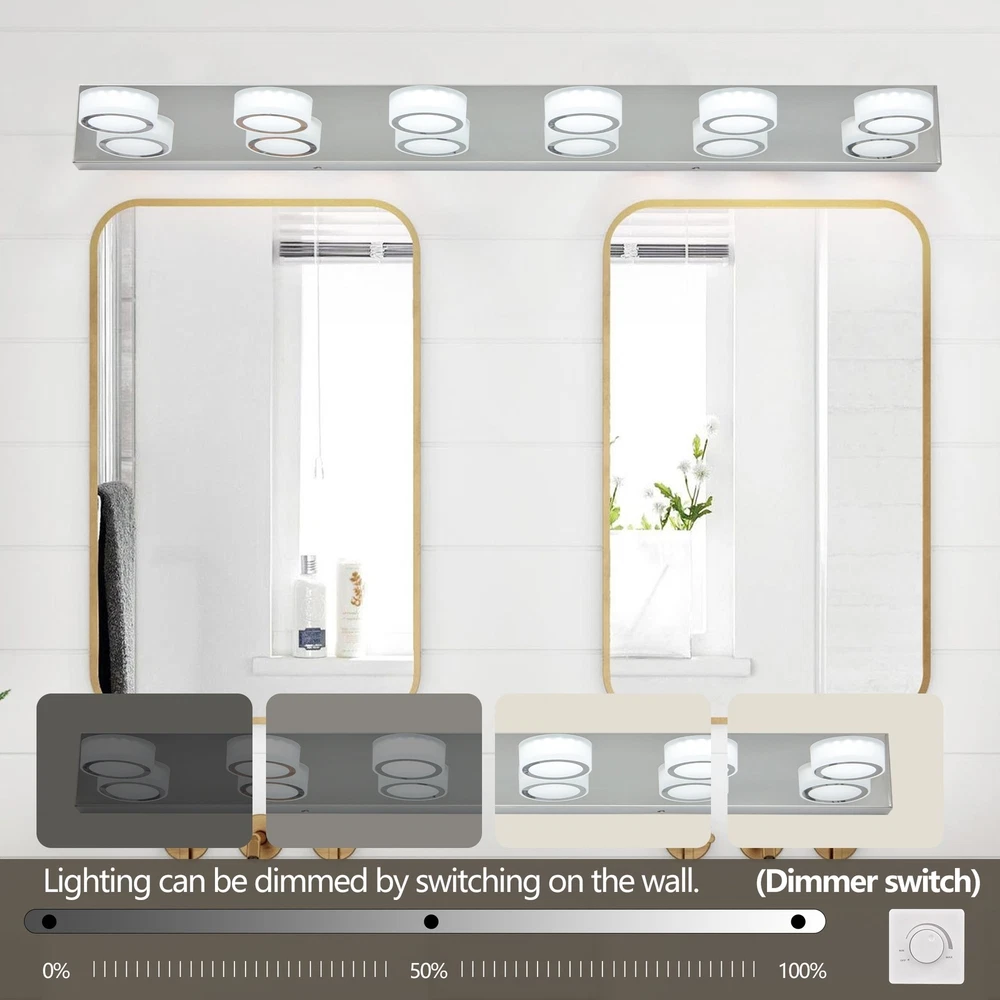 LED Modern Chrome 6-Light Vanity Lights Fixtures - Elevate your bathroom's ambiance with these stunning vanity lights! Designed to perfection, these lights not only illuminate your space but also add a touch of elegance to your home decor. Perfect for over the mirror, these wall-mounted lights create a warm and inviting glow, making your bathroom feel like a luxurious spa.Specifications Light Source: LED Wattage: 36W Color Temperature: White Light Design: Modern & Minimalist Material: Chrome with Frosted Acrylic Rotation: 360° Rotatable Joint Installation: Hardwired (No Switch or Plug on Fixture) Dimmable: Yes (via Wall Switch) Durability: Dustproof, Fog-Proof, Corrosion-Resistant, Moisture-ProofFeatures Dimmable & Comfortable: Adjust the lighting to your preferred brightness Free Shipping Over $49.99* Details LED Modern Chrome 6-Light Vanity Lights Fixtures Over Mirror Bath Wall Lighting Product Description: LED Modern Chrome 6-Light Vanity Lights Fixtures - Elevate your bathroom's ambiance with these stunning vanity lights! Designed to perfection, these lights not only illuminate your space but also add a touch of elegance to your home decor. Perfect for over the mirror, these wall-mounted lights create a warm and inviting glow, making your bathroom feel like a luxurious spa. Specifications Light Source LED Wattage 36W Color Temperature White Light Design Modern & Minimalist Material Chrome with Frosted Acrylic Rotation 360° Rotatable Joint Installation Hardwired (No Switch or Plug on Fixture) Dimmable Yes (via Wall Switch) Durability Dustproof, Fog-Proof, Corrosion-Resistant, Moisture-Proof Features Dimmable & Comfortable Adjust the lighting to your preferred brightness with ease, creating a cozy and relaxing atmosphere. The high color rendering index ensures a true, natural, and non-glare light source, perfect for daily routines. Rotatable Original Design Acrylic adds a brilliant shine to your bathroom. With the 360° rotatable joint, you can direct the light exactly where you need it. The simple yet luxurious design complements any modern interior and highlights your refined taste. Energy-Efficient Save on electricity bills with the energy-efficient 36W LED lights, providing bright white light without consuming too much power. Easy to Install Hardwired installation means no extra switches or plugs to worry about. Simply mount it on the wall and enjoy your new lighting fixture. Notes Designed for Multiple Spaces These vanity lights are not just for bathrooms! They're also perfect for mirror cabinets, living rooms, dressing rooms, and more. Advanced Technology With advanced plating and sealing technology, these lights are built to last, resistant to dust, fog, corrosion, and moisture, making them ideal for bathroom use. Product Use Feedback & After-Sales Guide If you encounter any issues with your product, please do not hesitate to reach out to us! Simply send a photo and a description of the problem to our customer service email, and we'll respond promptly to assist you. Your satisfaction is our top priority, and we're committed to providing the best after-sales support possible.