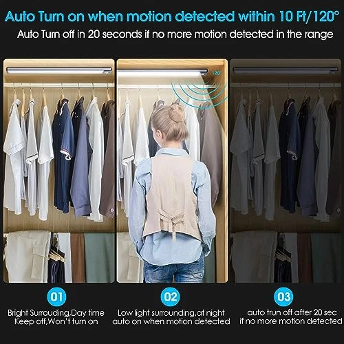 LED Motion Sensor Closet Light, Under Cabinet Lighting Wireless, USB 54LED