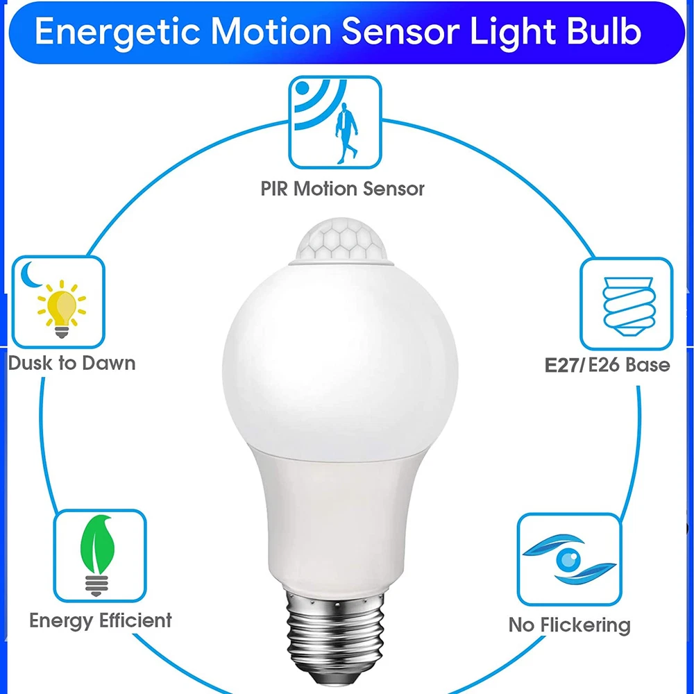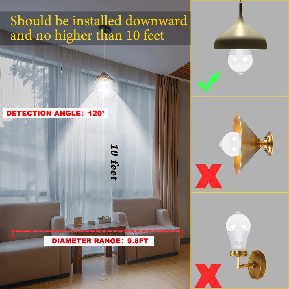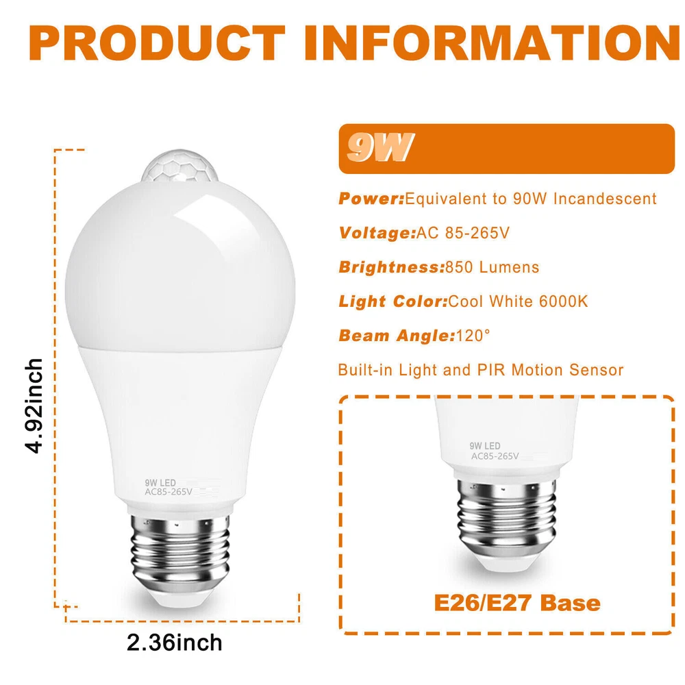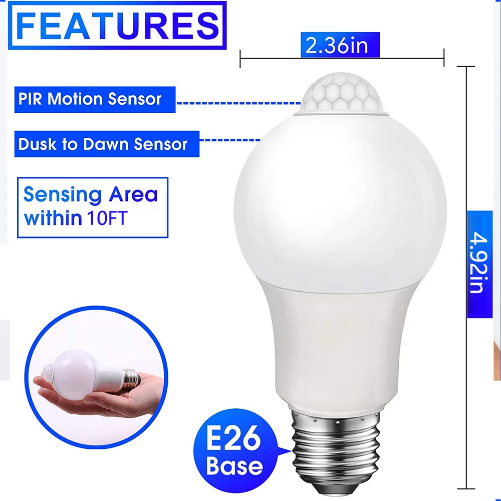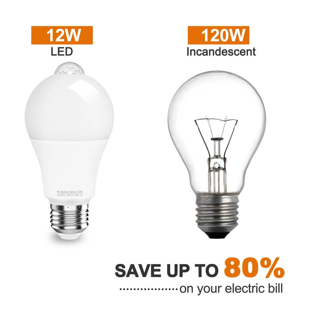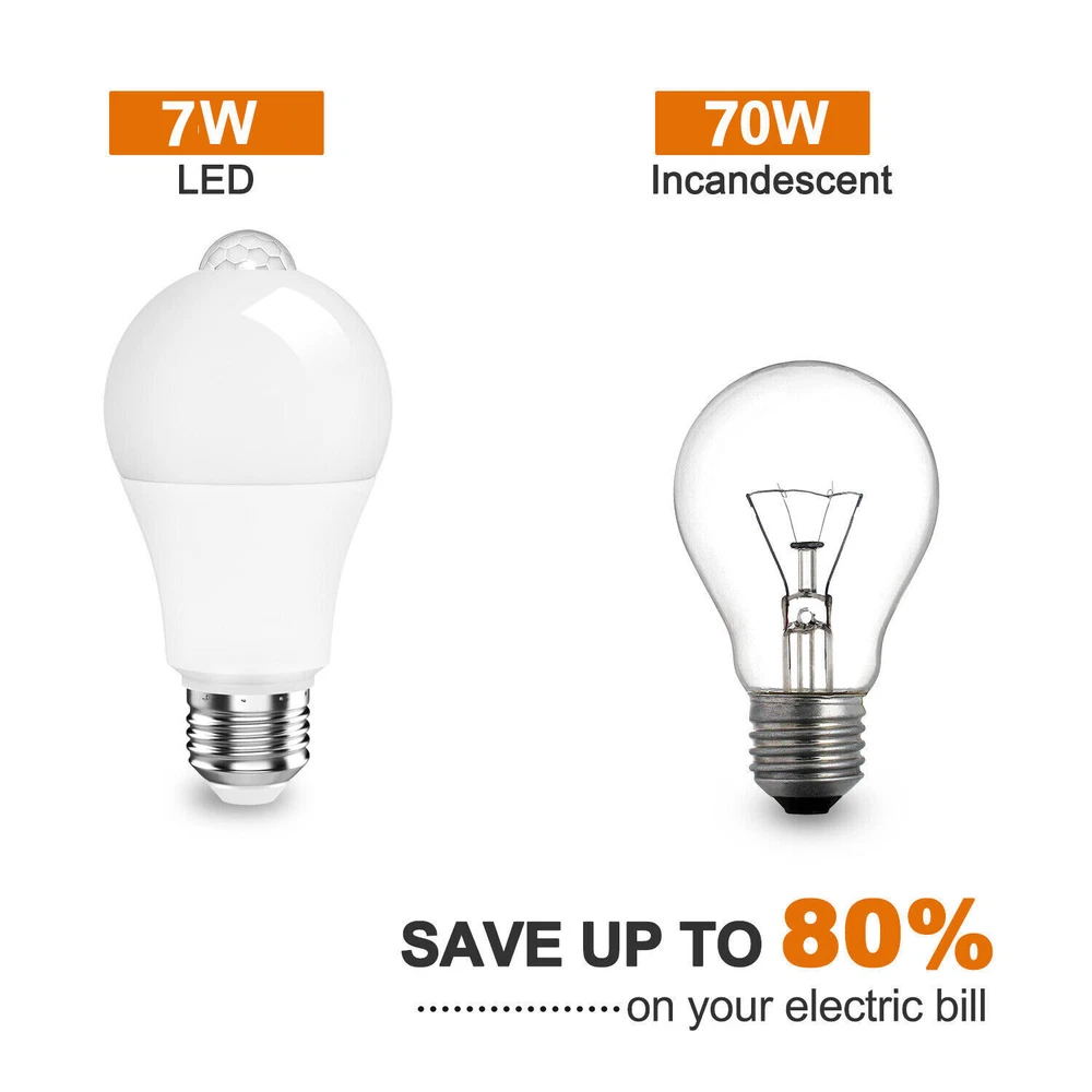 LED Motion Sensor Light Bulb 50/70/90/120/150W Equivalent Energy Saving Lamp US