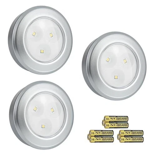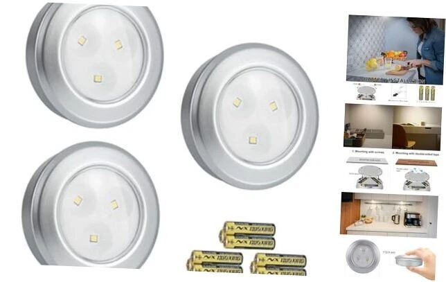 Menu 1. We require immediate payment. 2. We currently accept payment via eBay managed payments only. 3. Once payment is cleared, we will dispatch your shipment within 1-3 business days. Please refer to the "Shipping" tab for more information regarding shipping speed to your destination. LED Puck Lights, Battery Operated, Tap Light, Stick on Lights, Under Cabinet Lighting, Closets, Shelf Lights,Garage and More,3-Pack, Silver (9 AAA Batteries are Included) Product description 【Simple operation】 : Just touch the center lens to turn on and off the hockey lights without the need for a search button. 【Energy Saving and Environmental protection】 : Offering 60 lumens of ultra-bright, 3000K soft luminous led, Puck lights provide a stylish and modern lighting solution for a variety of indoor and outdoor applications while consuming minimal energy 【Easy to install】: You can quickly install the undercabinet light using tape or screws (including tape and screws). Easily install counter lights on any smooth surface such as kitchen cabinets, bookcases, closets, hallways, under tables, display cases, bookshelves, closets, pantries, etc. 【 Battery powered 】 : Each tap lamp is powered by 3 AAA batteries (including), and no plug or wire is required. Suitable for small areas w wiring is not easy to install. 3 LED Puck book light ( 9 AAA Battery included) ,3 Double-sided tapes, 6 Mounting screws, 1 Instruction Manual PLEASE MESSAGE US IF YOU HAVE ANY OTHER QUESTIONS, AND MANY THANKS FOR READING ALL OF THIS. Copyright ©#. All Rights Reserved.