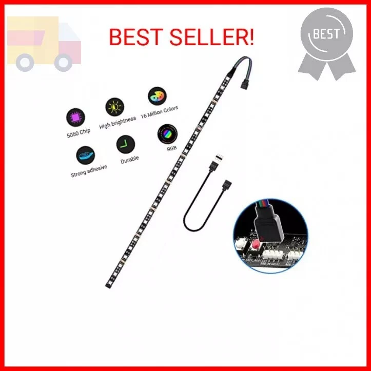 LED RGB PC Light Strip 1PCs 19.7in RGB LED Strip for 12V 4-Pin RGB LED headers for ASUS Aura Sync, Gigabyte RGB Fusion, MSI Mystic Light, ASRock RGB - RGB SYNC CONTROL - RGB LED strip lights for pc cases are designed for Motherboard with 12V 4-pin RGB led strip header (+12V, G, R, B), compatible with Asus Aura, Asrock RGB Led, Gigabyte RGB Fusion, MSI Mystic Light, etc. - GREAT EFFECTS - RGB strip pc has 3 aura led strip to modify your PC case, creating amazing RGB sync effects and brighter. - EASY INSTALLATION - come with double-sided adhesive, make it easy to stick on any clean surface. type parallel to connection, 1 extension cord for one of the computer led strip lights. - PACKAGE CONTENTS - 1 * led strip lights , 1 * 12V 50cm cable to connect a 4-pin RGB header on M / B. - these gaming pc case lights are perfect for DIY gamers to create any color or animation you
