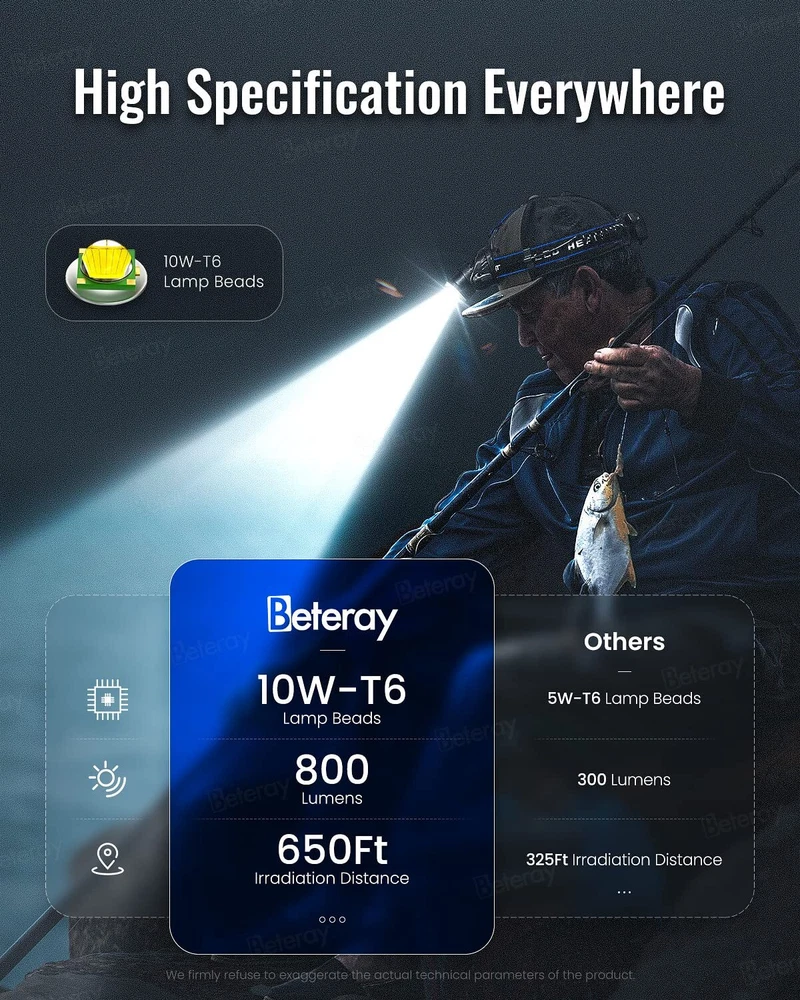 headlamp Powerful T6 LED Bulbs - This headlamp features 10W high-power T6 LED bulbs that provide a stunning 800 lumens of brightness. That's more than 300 lumens brighter than regular T6 bulbs! The rotating zoom function allows you to switch between flood and spotlight modes, with an impressive irradiation distance of up to 300-500 meters. So, whether you're camping, hiking, or exploring caves, this headlamp will illuminate your path and keep you safe. Long-Lasting Rechargeable Battery - The headlamp comes with high-capacity 1200mAh batteries that offer up to 4 hours of continuous use on high brightness mode and 8 hours on medium brightness mode. The batteries are rechargeable and recyclable, so you can avoid the environmental pollution caused by disposable batteries. Plus, the headlamp features a traditional USB interface for enhanced compatibility with different devices. 3 Lighting Modes & Light Sync - To meet your various needs, we've designed this headlamp with three modes: high brightness (800 lumens), medium brightness (500 lumens), and burst flash mode. The lamp in the rear battery compartment is synchronized with the main lamp mode and emits a red light for warning others or calling for help in case of an . This light sync design is a great feature for outdoor enthusiasts and adventurers. Excellent Heat Dissipation Design - With high-power T6 LED bulbs, this headlamp requires efficient heat dissipation, which is why we've chosen aluminum alloy for the lamp cap to assist with heat dissipation and reduce the overall weight of the headlamp. Additionally, we've sealed the key parts to make the headlamp waterproof to the IPX45 standard. The headband features an adjustable design to fit different head sizes, and the lamp cap can be adjusted up to 90 degrees for optimal illumination. Versatile Use - This headlamp is perfect for a variety of outdoor activities such as camping, fishing, hiking, hunting, cycling, and cave exploration. It's also great for indoor activities like reading and car repair. Customer satisfaction is our top priority, and we're here to help with any questions you may have before or after purchase. us through for a full response. Perfect Gift for Any Occasion - Whether it's Father's Day, Valentine's Day, Easter, Halloween, Thanksgiving, Christmas, or any special occasion, our headlamp is the perfect gift for anyone who loves outdoor activities. Give the gift of adventure to your father, mother, husband, son, or boyfriend with our powerful and reliable headlamp.