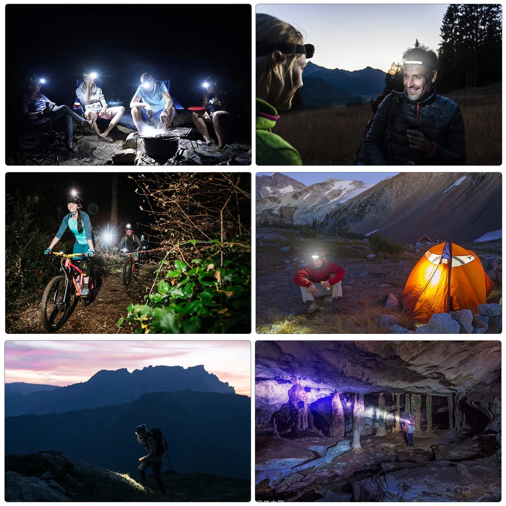 [5 Light Modes+Induction Mode] The hand sensor headlamp Strip Lamp has 5 lighting modes: COB High Mode, COB Low Mode, LED High Mode, LED Low Mode and Strobe Mode. In any other mode, long press the On/Off Button to transform the strobe mode, then the LED and COB light will flash at the same time.After the sensor mode is turned on, which is very convenient! [Super Bright & Wide Beam 230°] This wide beam headlamp offers a 230°wide-angle illumination and 350Lumens output, You can get a wide range of lighting coverage without moving your head,The super bright LED XPE light on the side can provide a lighting distance of about 150 feet.for maximum brightness. [USB Rechargeable Battery] headlamp equipped with upgraded Type-C input port, has a built-in 1200mAh battery suitable for multiple charging methods, fast charging, it can work for 2.5-8 hours in different light modes.Charging function not only saves the cost of replacing batteries but can be recycled. [Lightweight & Adjustable Headband] Our head lights led features with an adjustable, stretchable and elastic headband to fit for your head size.The led Strip Lamp is made of ABS and silicone, and the shell is firm and reliable. weighs only 3.35oz comfortable to wear. [Best Gift & Applicable Scenes] Rechargeable Headlamp can disperse the darkness and illuminate the surroundings. Suitable for outdoor night running, cycling, camping and fishing.It's possible to fold but not affect the use, IPX4 waterproof is suitable for outdoor use, a high-quality gift for adventurers!Note: Please charge it before use.