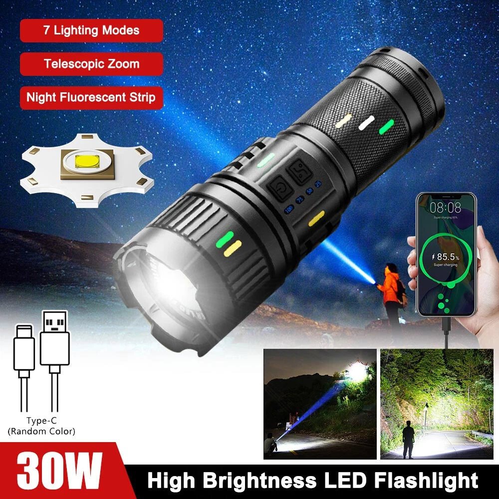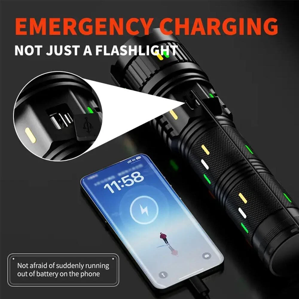 LED Rechargeable White Laser Flashlight Tactical Torch LED Camping Hiking USB