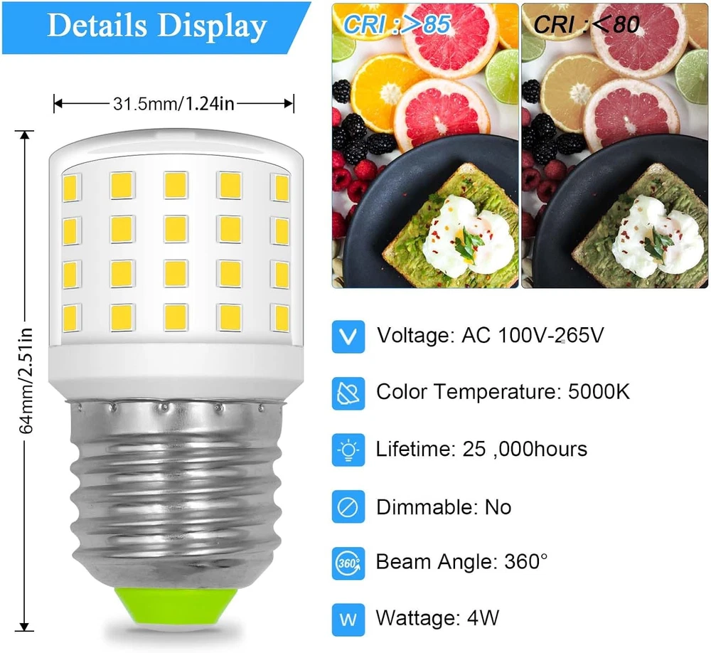 LED Refrigerator Light Bulb 4W AC100-265V 3.5W Refrigerator Bulb, E26 Medium Bas