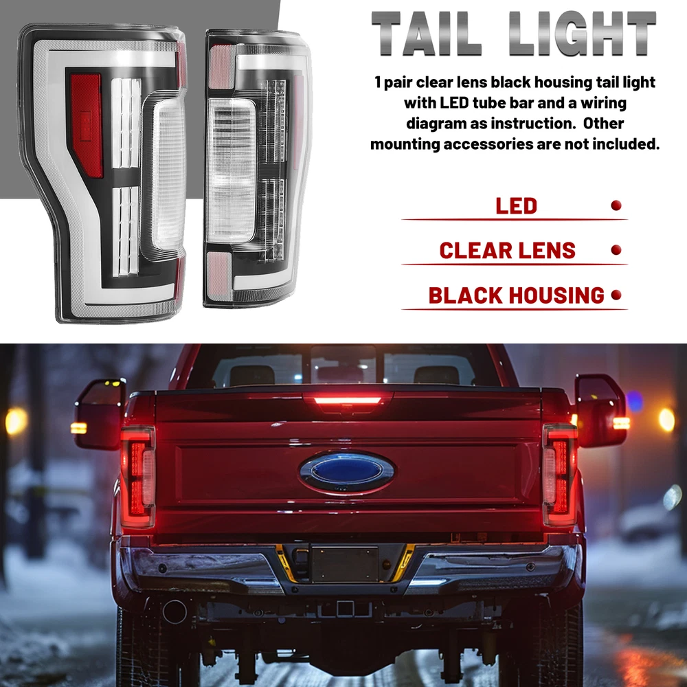 Store Categories Store Categories For Ford For Chevrolet For Dodge For Toyota For Honda Other Details LED Sequential Tail Lights For Ford F-250 F350 F450 Super Duty 2017 2018 2019 FIT FOR: For Ford F-250 Super Duty 2017-2019 For Ford F-350 Super Duty 2017-2019 For Ford F-450 Super Duty 2017-2019 NOT Compatible with Factory LED & Blind Spot Information System (BLIS) Tail Light Models PRODUCT SPECIFICS: Type: Tail Light Lighting Technology:LED Lens Color:Clear Housing Color:Black Light Color:Red Placement on Vehicle:Rear, Left, Right Installation Method:Screw-On Driving Light Wattage: 5W Turn Signal Light Wattage: 22W Brake Light Wattage: 22W Voltage: 12V Replace Part Number: Left Side: Replace For FO2800262, HC3Z13405C Right Side: Replace For FO2801262, HC3Z13404B Features: 1.Improved Visibility: Delivers bright, clear light for enhanced safety when driving at night or in poor weather conditions. 2.Sleek Appearance: Features a contemporary, stylish design to elevate your vehicle's look. 3.Long-lasting Durability: Constructed from premium materials that resist wear, fading, and environmental damage. 4.Simple Installation: Designed for easy plug-and-play setup or direct replacement with minimal effort. 5.Energy-Saving: Utilizes LED technology, offering reduced power use and an extended lifespan. Package Includes : 2 X Tail Lights With Structural and Functional Guidelines & Installation Instruction Shipping: All items will be shipped out in 1 business day, no expedited service available. We ship our items to USA only(Does NOT include Hawaii, Alaska or Puerto Rico, PO Boxes/APO's). Shipping Notes: We use multiple warehouses and will select the nearest warehouse for delivery according to your order address and our inventory, Thank you for your cooperation. Contact us: Any Questions, Just feel free to contact us on eBay. We will reply you in 24 hours. Store Categories Store Categories For Ford For Chevrolet For Dodge For Toyota For Honda Other Details LED Sequential Tail Lights For Ford F-250 F350 F450 Super Duty 2017 2018 2019 FIT FOR: For Ford F-250 Super Duty 2017-2019 For Ford F-350 Super Duty 2017-2019 For Ford F-450 Super Duty 2017-2019 NOT Compatible with Factory LED & Blind Spot Information System (BLIS) Tail Light Models PRODUCT SPECIFICS: Type: Tail Light Lighting Technology:LED Lens Color:Clear Housing Color:Black Light Color:Red Placement on Vehicle:Rear, Left, Right Installation Method:Screw-On Features:DOT Driving Light Wattage: 5W Turn Signal Light Wattage: 22W Brake Light Wattage: 22W Voltage: 12V Replace Part Number: Left Side: Replace For FO2800262, HC3Z13405C Right Side: Replace For FO2801262, HC3Z13404B Features: 1.Improved Visibility: Delivers bright, clear light for enhanced safety when driving at night or in poor weather conditions. 2.Sleek Appearance: Features a contemporary, stylish design to elevate your vehicle's look. 3.Long-lasting Durability: Constructed from premium materials that resist wear, fading, and environmental damage. 4.Simple Installation: Designed for easy plug-and-play setup or direct replacement with minimal effort. 5.Energy-Saving: Utilizes LED technology, offering reduced power use and an extended lifespan. Package Includes : 2 X Tail Lights With Structural and Functional Guidelines & Installation Instruction Shipping: All items will be shipped out in 1 business day, no expedited service available. We ship our items to USA only(Does NOT include Hawaii, Alaska or Puerto Rico, PO Boxes/APO's). Shipping Notes: We use multiple warehouses and will select the nearest warehouse for delivery according to your order address and our inventory, Thank you for your cooperation. Contact us: Any Questions, Just feel free to contact us on eBay. We will reply you in 24 hours. On Dec 29, 2024 at 17:00:54 PST, seller added the following information: On Dec 31, 2024 at 01:14:08 PST, seller added the following information: On Mar 10, 2025 at 23:12:16 PDT, seller added the following information: