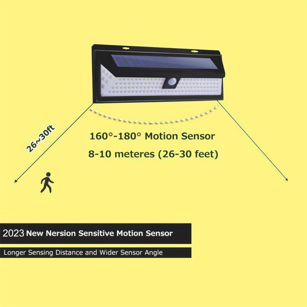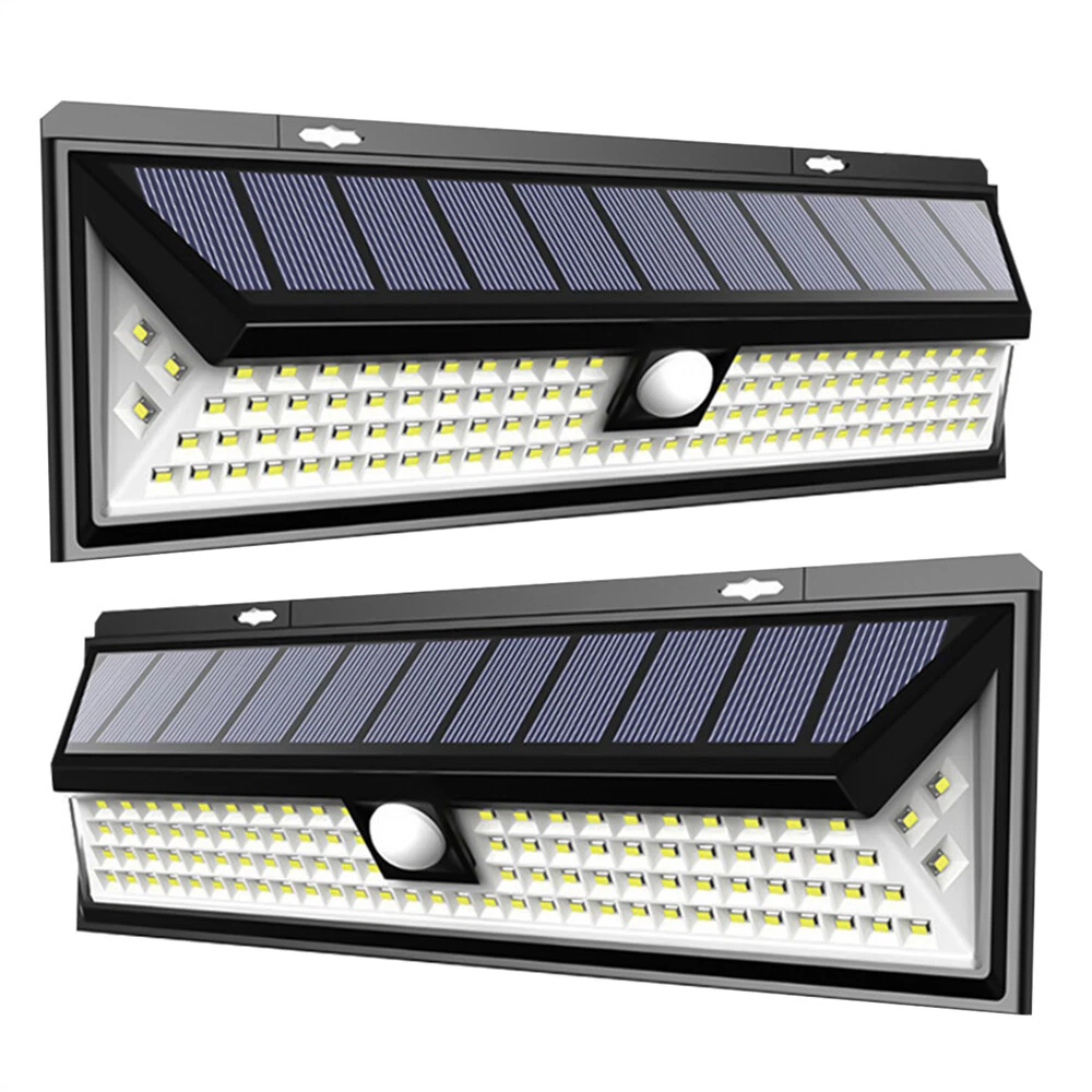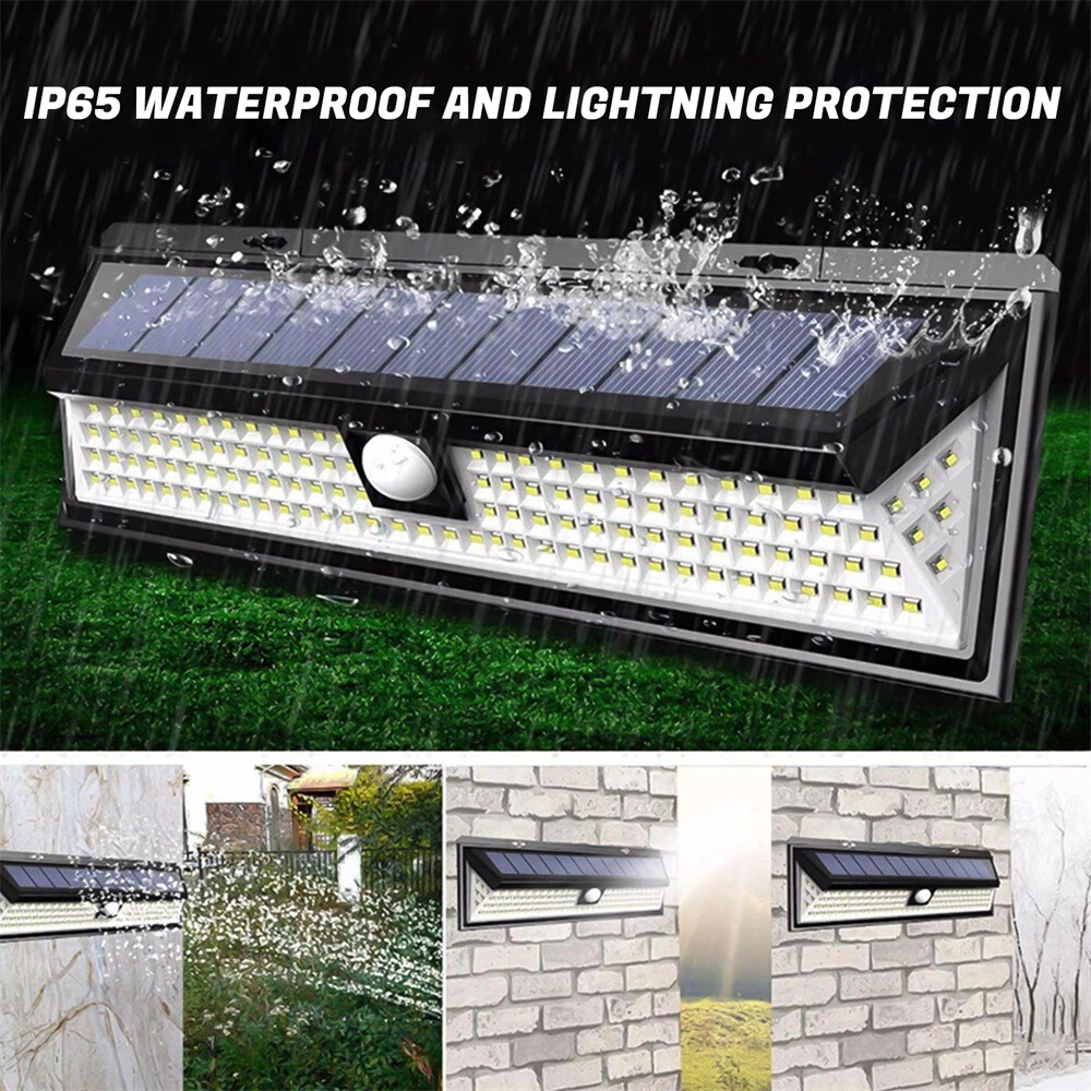 Feature: 1.Automatic Sensor: The motion sensor can detect up to 120 degree, anyone in this range will trigger the motion sensor and the light will automatically turn on and brings you enough light. 2.Waterproof and moisture-proof: With a robust ABS shell and IP65 waterproofing level, the solar lights can withstand heat, rain and extreme weather conditions. 3.Working time: Full of electricity, according to the number of inductions per night 50 times, can work for 3 to 4 days. Updated Solar Panel. With updated solar panel, the conversion rate of solar energy into electric energy is up to 17%, which greatly shorten the charging time. 4.Super Bright LED Lights: 1000 Lumen 118 Powerful LED solar light including 6 LED on each side provide excellent 270 angle night illumination. 5.3 Lighting modes: There are three modes for your selection: medium light mode, dem light sensor mode and sensor mode; adjustable for your need. Specification: Solar Panel: Polysilicon 5.5V 0.55W Lighting Angle: 270 ° Induction Angle: 120 ° Induction Distance: 8-10m Battery: 18650 4400mAh Charging Time: More Than 8 hours Waterproofing Level: IP65 Size: As the picture shows Package List: 1/2 x Solar Wall Light 1/2 x Remote Control 1/2 x User Manual